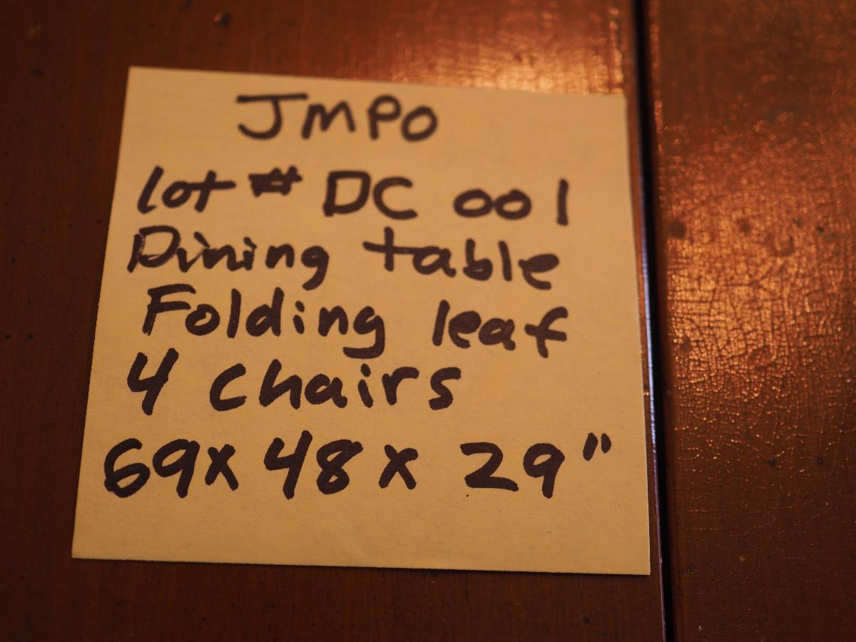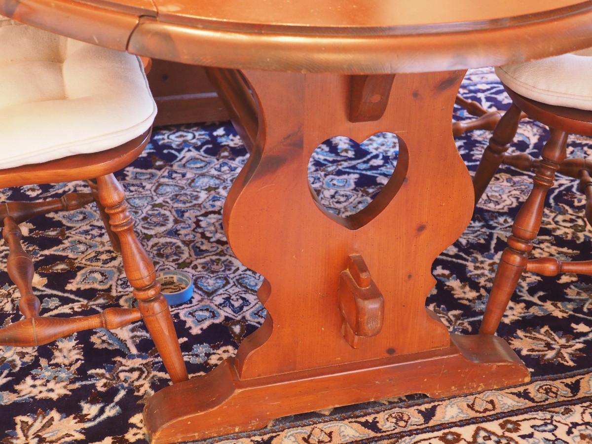 Lot 001 Character wood Drop Leaf table with 4 vintage wooden spoke back chairs