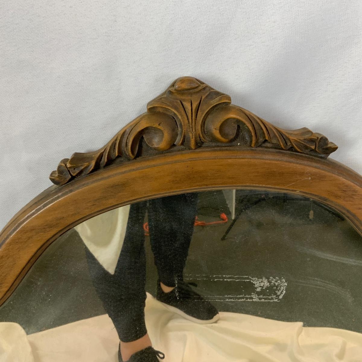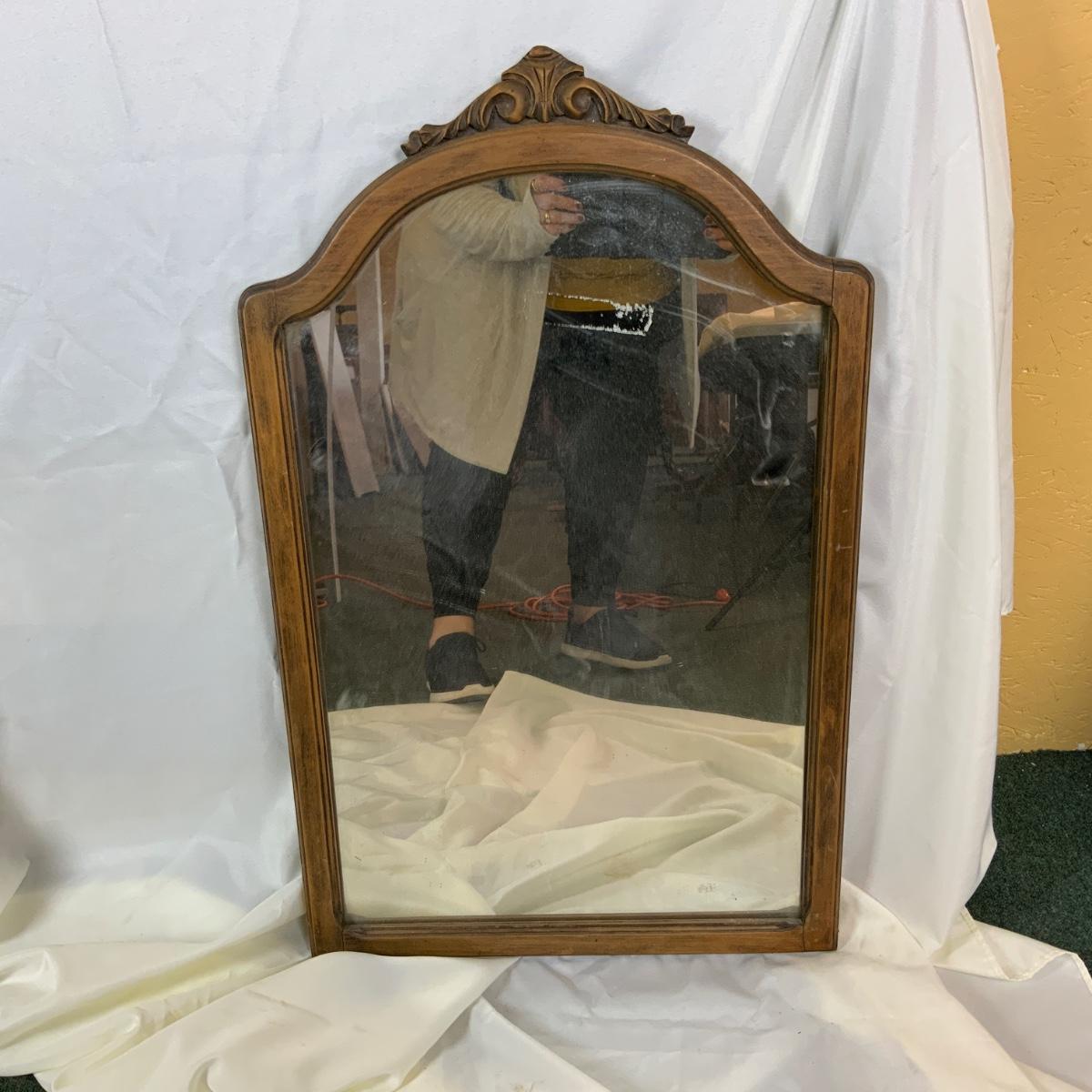 Nice Wood Mirror with carved details. Currently has a small wire on the beach to hang with. The auctioneer recommends that you install a more sturdy hanging fixture before use on a wall. //::\\ Please see photos for details and condition. No attempt has been made to hide any imperfections. All items listed in this auction are warehouse items, and need to be cleaned. A majority of the items need restoration as well. All items are sold AS IS and WITHOUT GUARANTEE. If you are uncertain about an item, DO NOT BID. Due to the nature of this online auction in-person inspection is HIGHLY recommended. All Sales are FINAL. Pick Up Times are FIRM. Please confirm with your own schedule that you can pick up in the scheduled times listed in the Terms and Conditions. Any questions please message the auctioneer. DO NOT Contact The Harp Gallery.