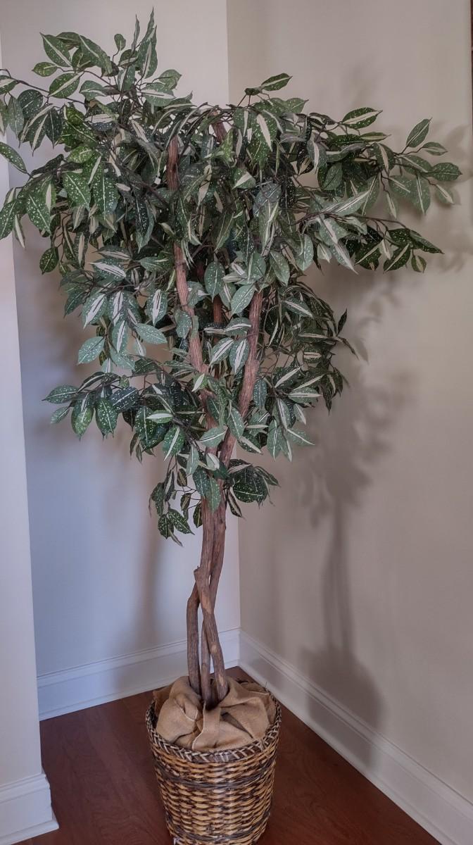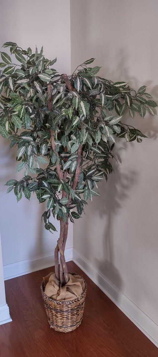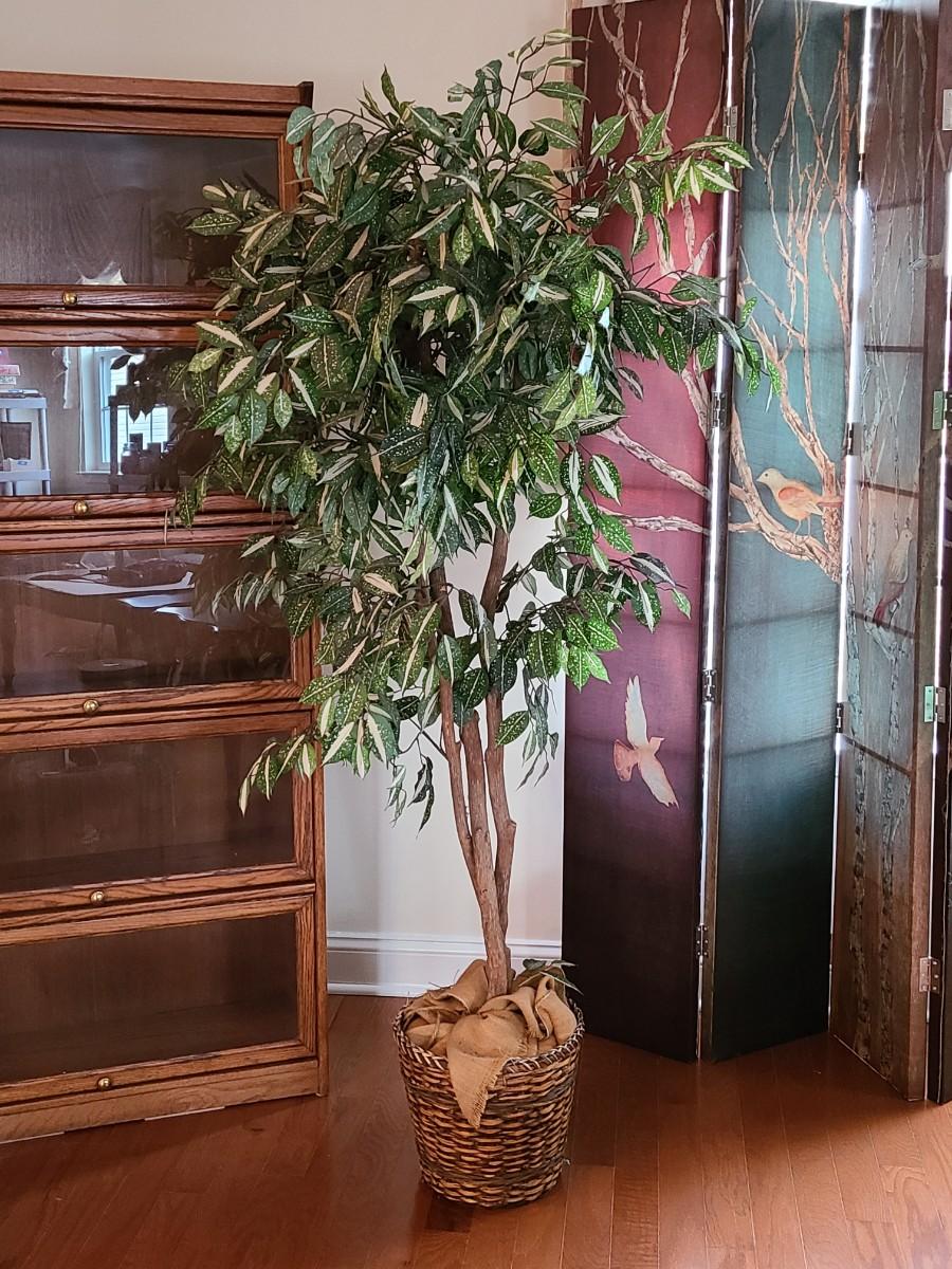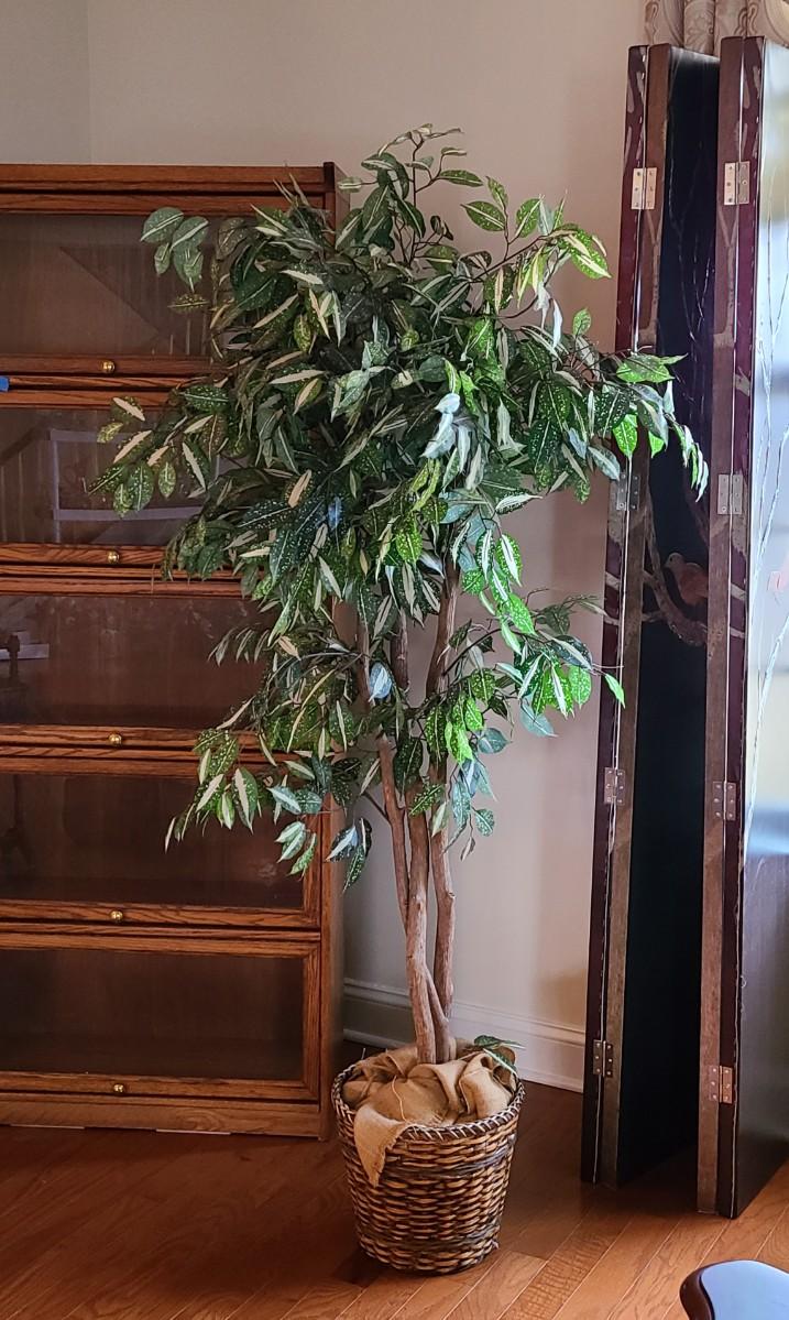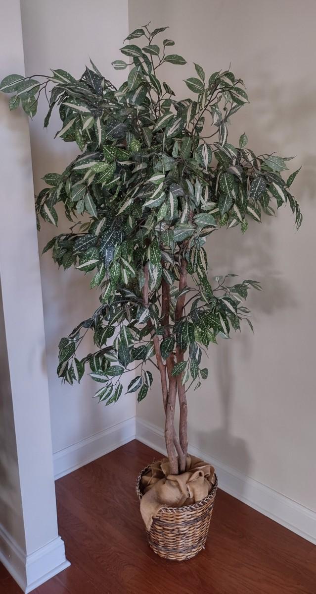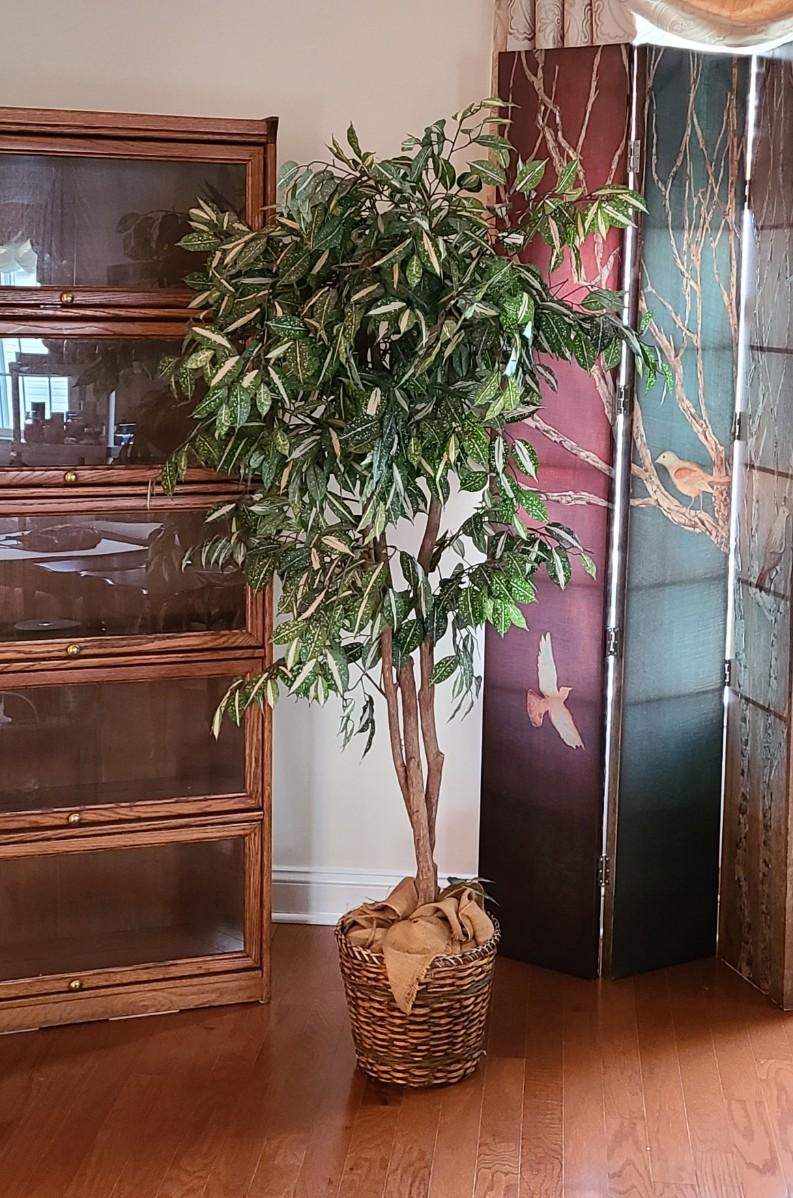 Lot 002: Almost 6 Foot Tall Faux Tree In Basket