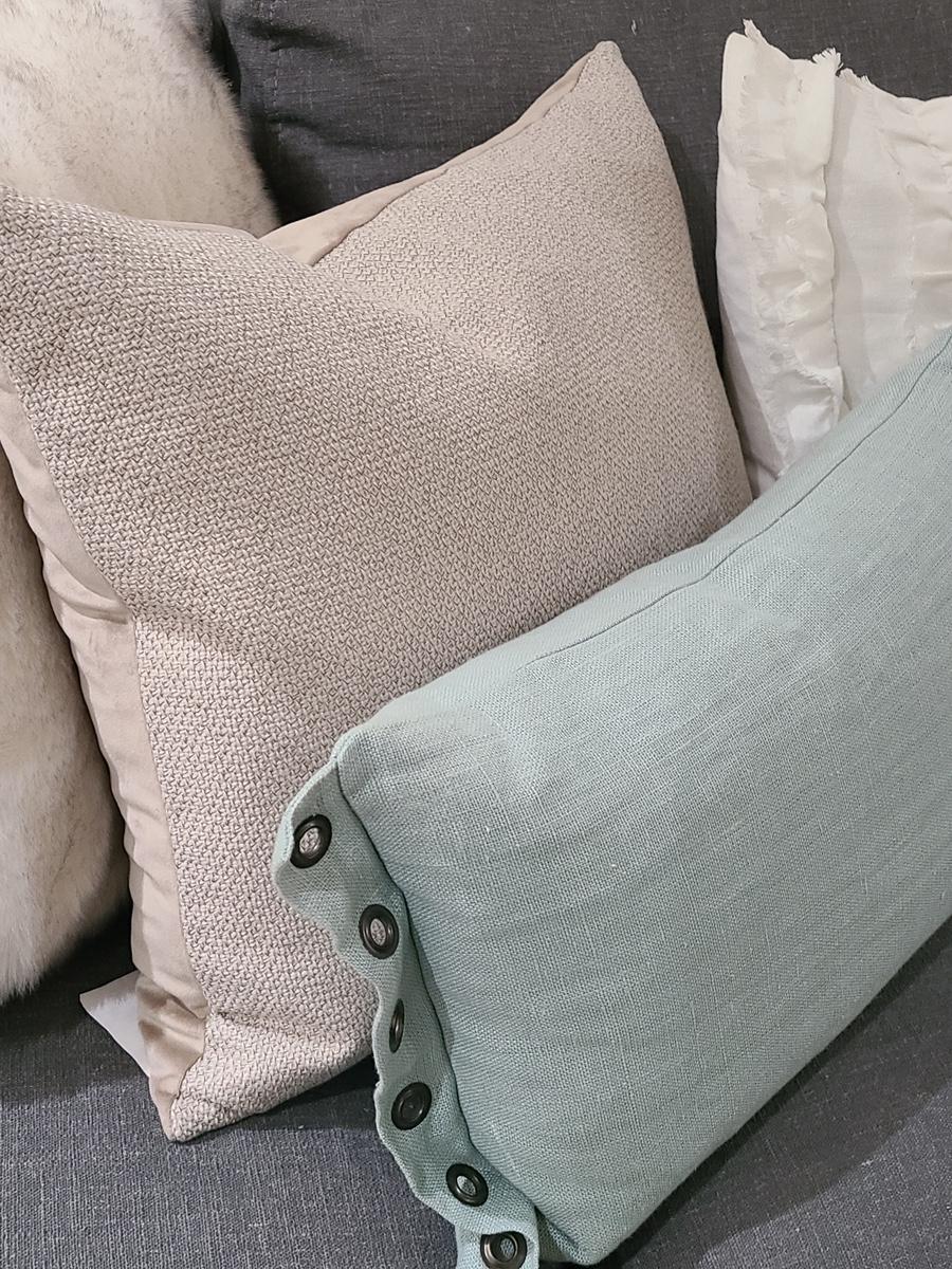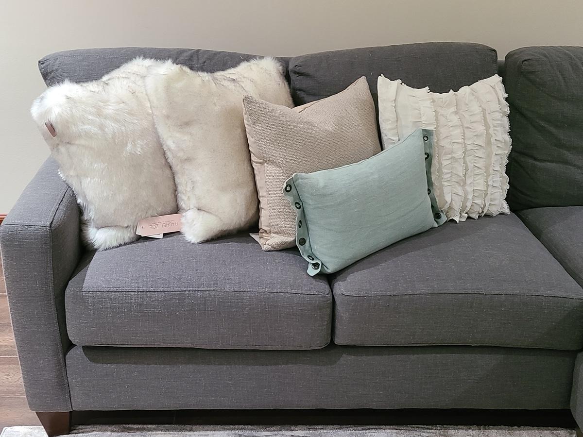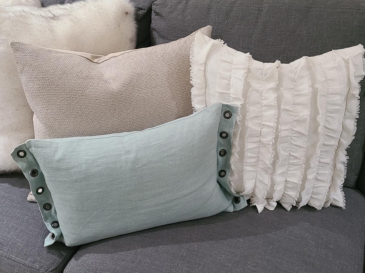Neutral colored designer throw pillows. Some new with tags. Please see all pictures as they are the best representation of the items in the lot, the condition of the lot, and will show measurements if taken. If purchasing furniture you must be able to move yourself with your own help, and truck.