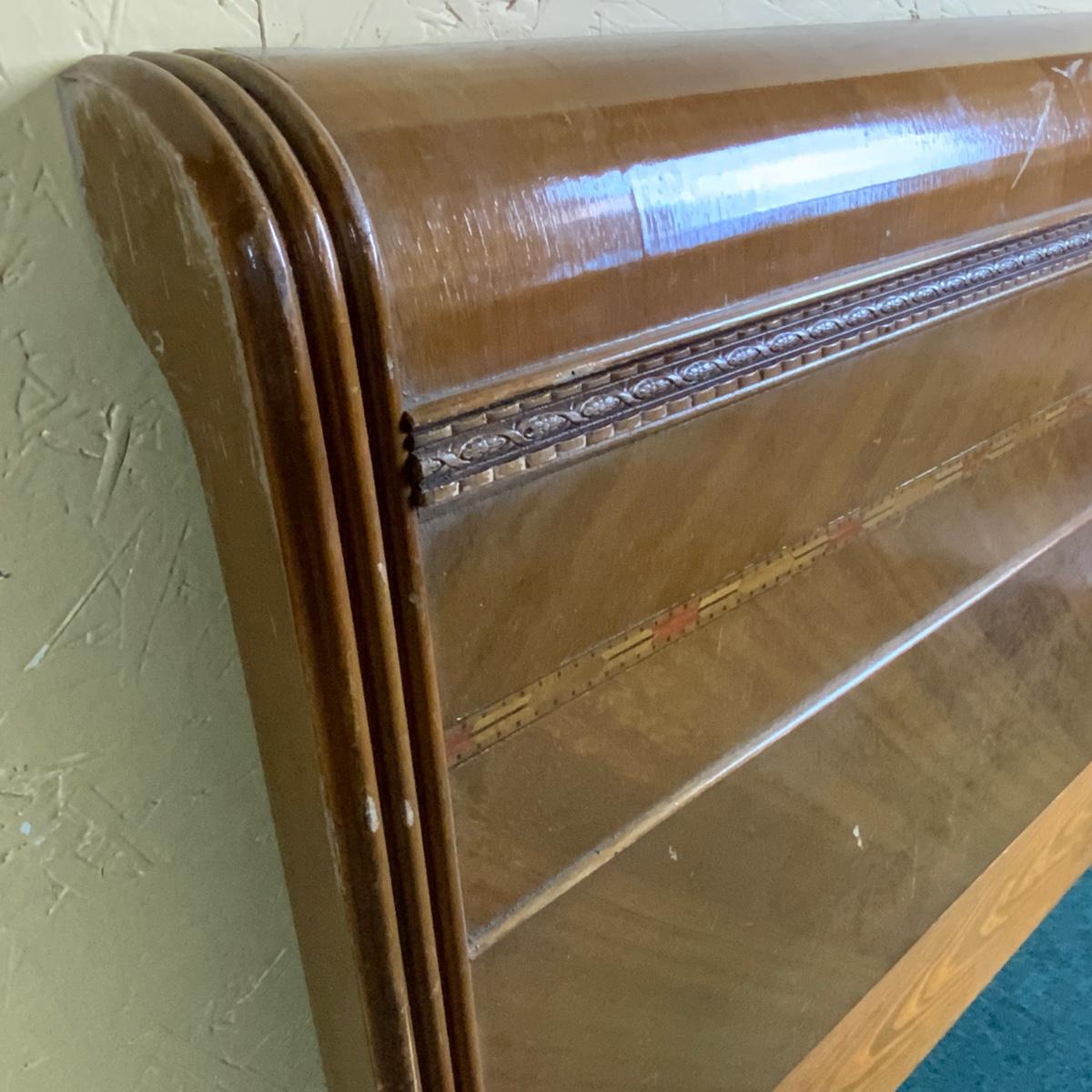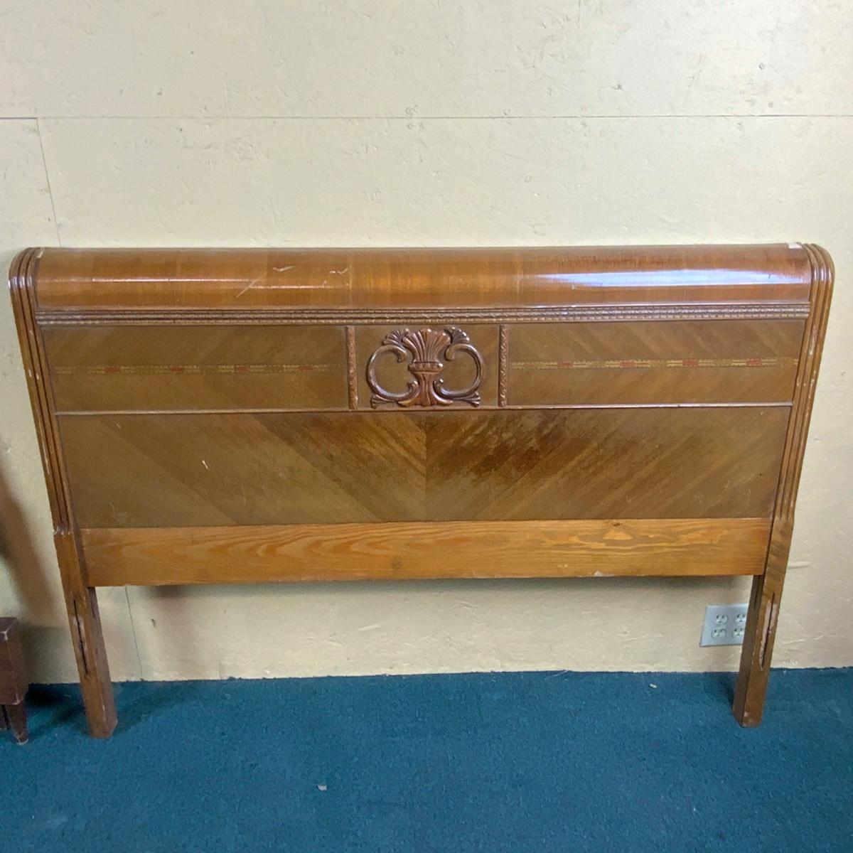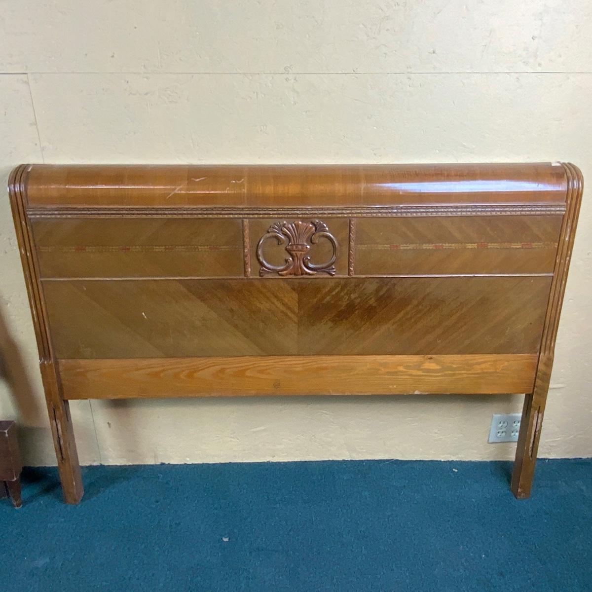 Attractive Art Deco Head or Foot Board. Could easily be converted into either or something else entirely. //::\\ Please see photos for details and condition. No attempt has been made to hide any imperfections. All items listed in this auction are warehouse items, and need to be cleaned. A majority of the items need restoration as well. All items are sold AS IS and WITHOUT GUARANTEE. If you are uncertain about an item, DO NOT BID. Due to the nature of this online auction in-person inspection is HIGHLY recommended. All Sales are FINAL. Pick Up Times are FIRM. Please confirm with your own schedule that you can pick up in the scheduled times listed in the Terms and Conditions. Any questions please message the auctioneer. DO NOT Contact The Harp Gallery.