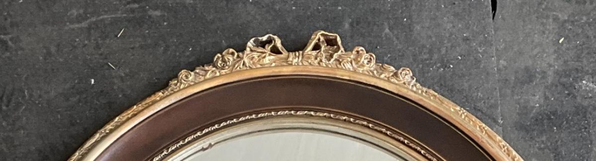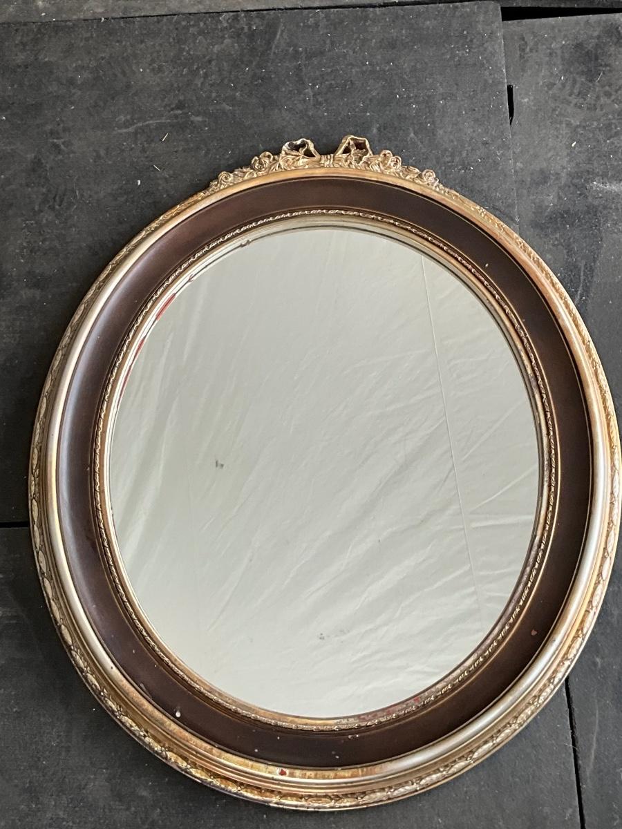 Large French Oval Gilded Mirror - measures 25.75” Wide x 30.5” High