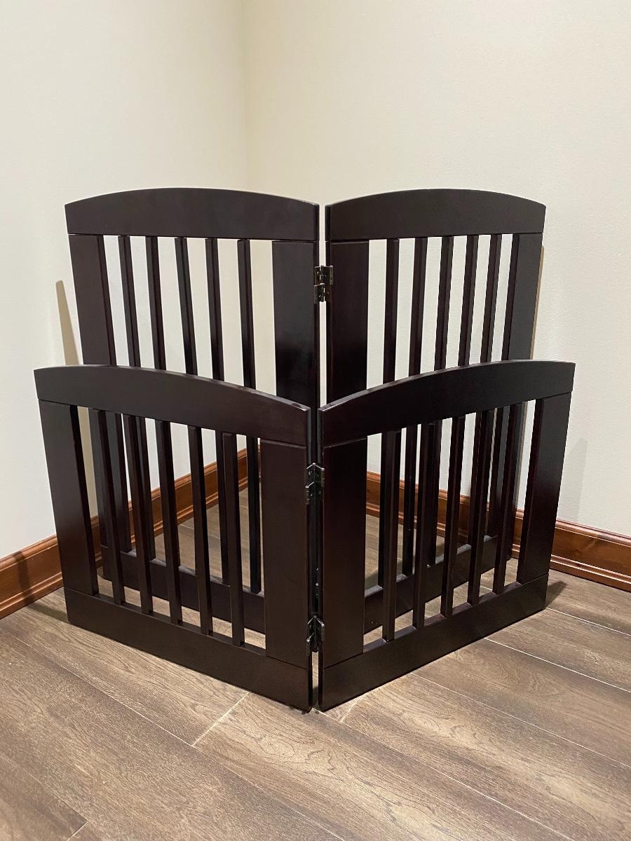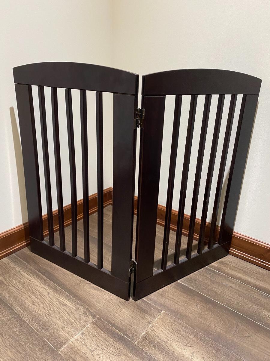 Gates fold forward and backwards. Each panel is 24” In length. Tall gate is 36” in height. Short gate is 24” in height. Please see all pictures as they are the best representation of the items in the lot, the condition of the lot, and will show measurements if taken. If purchasing furniture you must be able to move yourself with your own help, and truck.