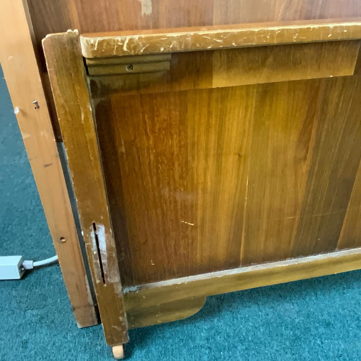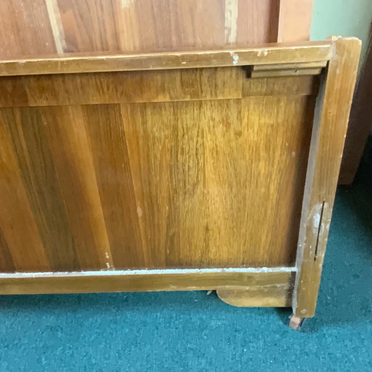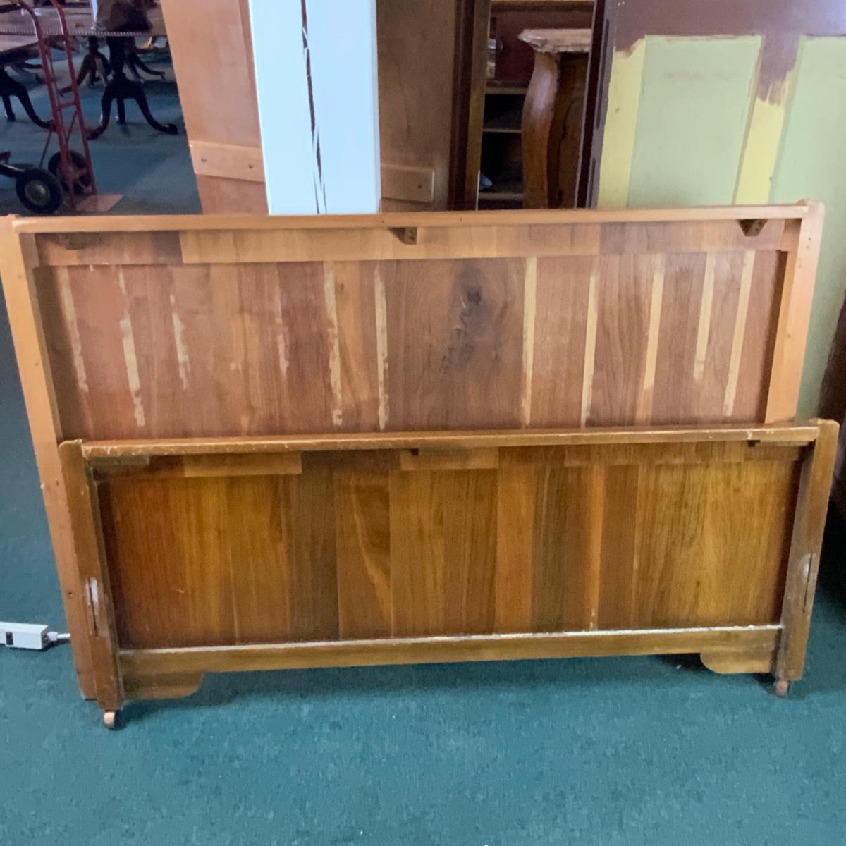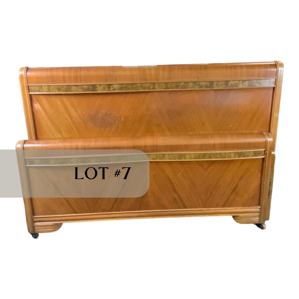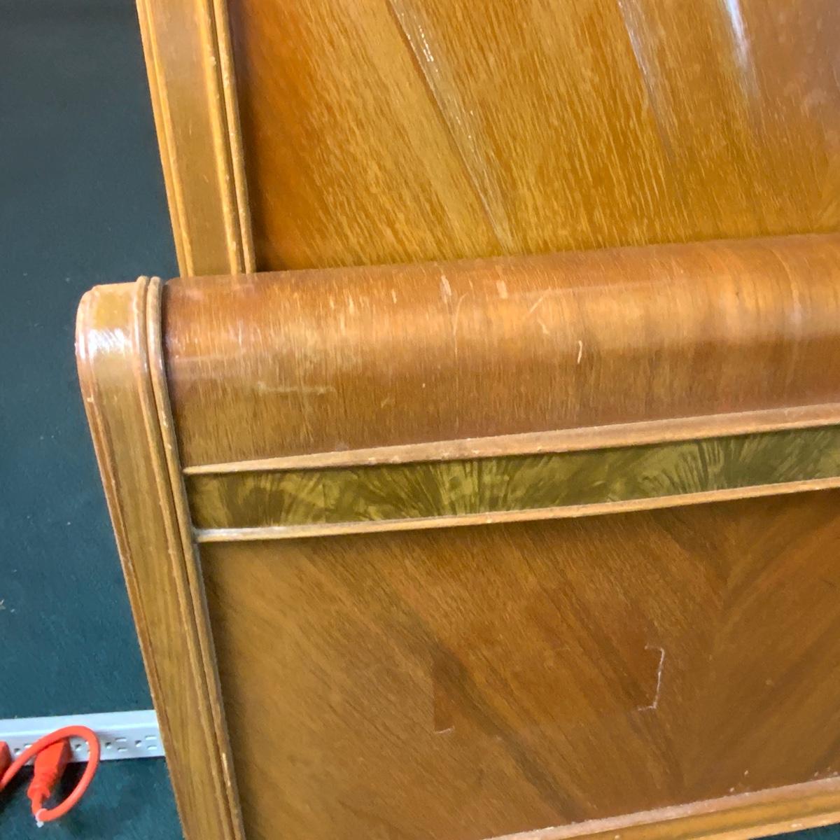 Stunning Art Deco Waterfall Head and Foot Boards. Interior of footboard is finished nicely. Would be a lovely piece in your home. //::\\ Please see photos for details and condition. No attempt has been made to hide any imperfections. All items listed in this auction are warehouse items, and need to be cleaned. A majority of the items need restoration as well. All items are sold AS IS and WITHOUT GUARANTEE. If you are uncertain about an item, DO NOT BID. Due to the nature of this online auction in-person inspection is HIGHLY recommended. All Sales are FINAL. Pick Up Times are FIRM. Please confirm with your own schedule that you can pick up in the scheduled times listed in the Terms and Conditions. Any questions please message the auctioneer. DO NOT Contact The Harp Gallery.
