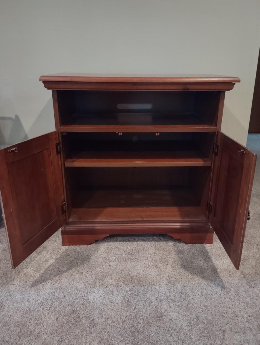 31×19×32 Riverside Swivel TV Stand. Solid piece! Please see all pictures as they are the best representation of the items. The pictures show condition, measurements if taken, and what is included in the lot. Due to the large amount that we photograph and the time frame, we are not always able to take measurements. All items unless noted, are pre-owned and have been used. If you purchased furniture, you must bring help. We do not allow one person to carry large furniture out on their own. Bring help, tools and a truck for the safety of our client’s homes, and your personal safety. Company policy. Thank you.