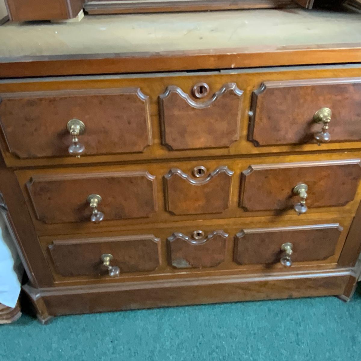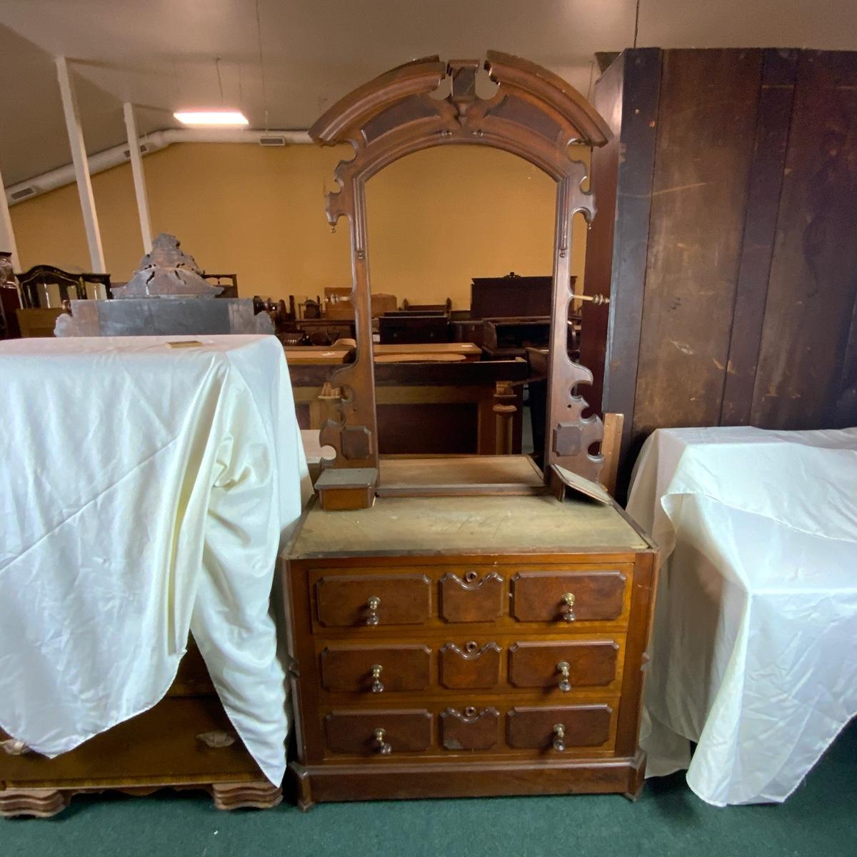 Stunning Victorian Walnut Dresser with Tilting Mirror Capabilities. This piece has great bones. Perfect for any level of commitment to refinishing! //::\\ Please see photos for details and condition. No attempt has been made to hide any imperfections. All items listed in this auction are warehouse items, and need to be cleaned. A majority of the items need restoration as well. All items are sold AS IS and WITHOUT GUARANTEE. If you are uncertain about an item, DO NOT BID. Due to the nature of this online auction in-person inspection is HIGHLY recommended. All Sales are FINAL. Pick Up Times are FIRM. Please confirm with your own schedule that you can pick up in the scheduled times listed in the Terms and Conditions. Any questions please message the auctioneer. DO NOT Contact The Harp Gallery.