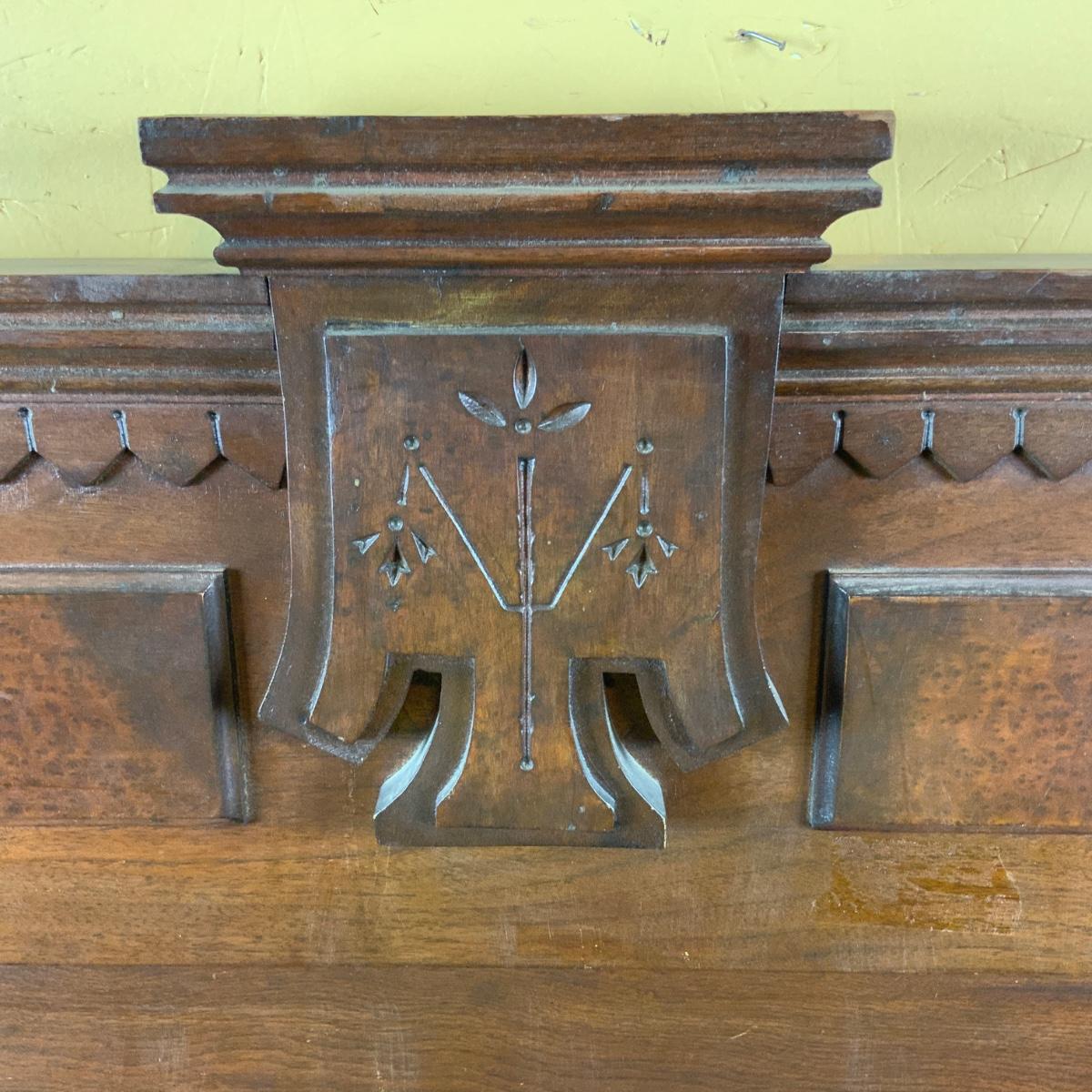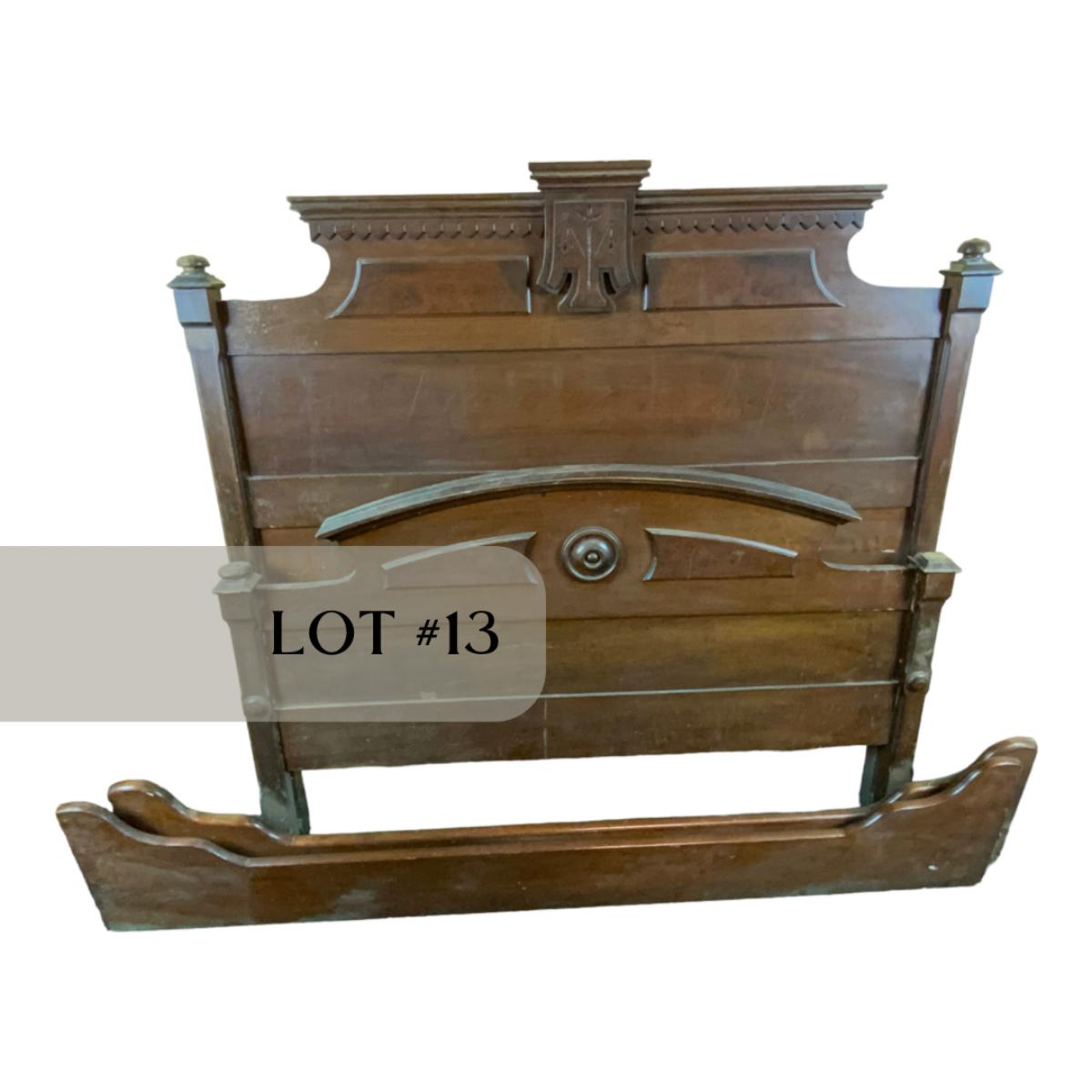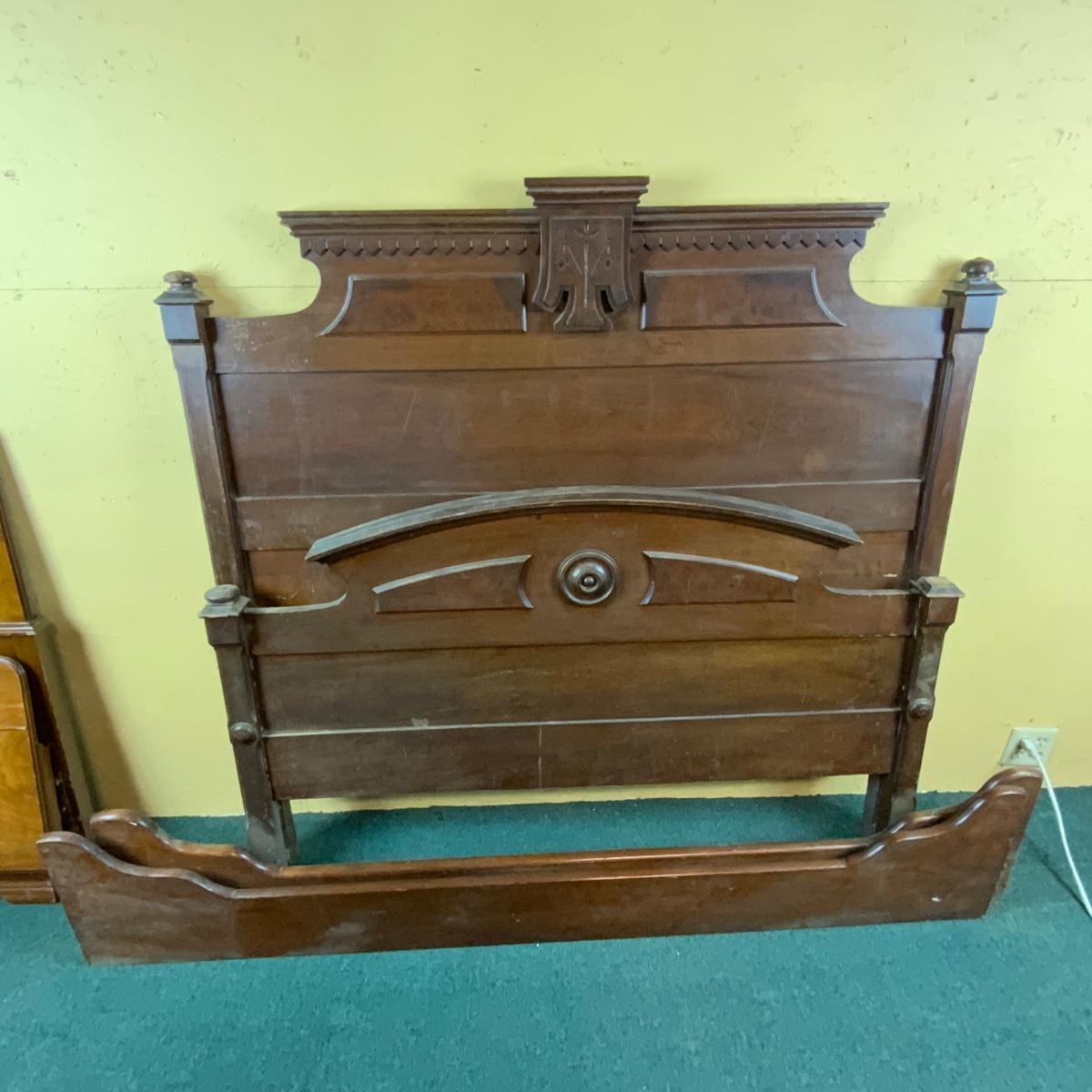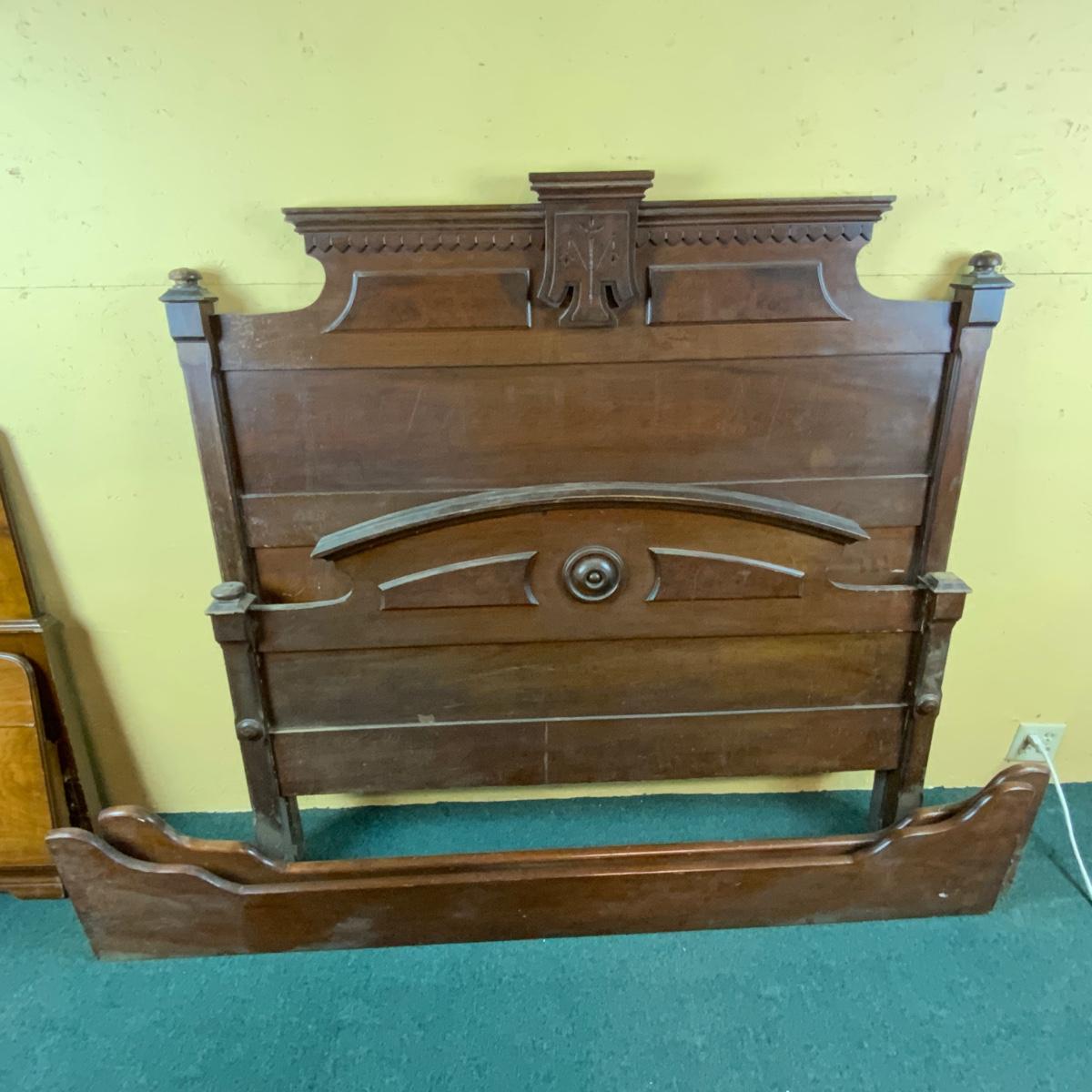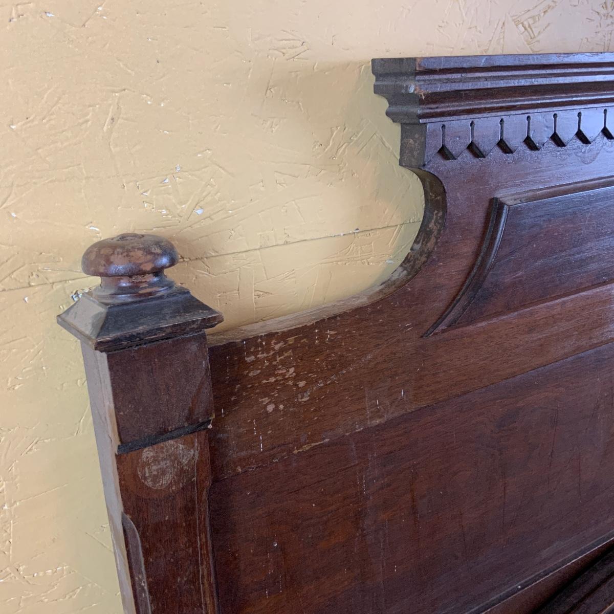 Solid Eastlake Head and Footboard with Rails. Beautiful hand carving throughout. //::\\ Please see photos for details and condition. No attempt has been made to hide any imperfections. All items listed in this auction are warehouse items, and need to be cleaned. A majority of the items need restoration as well. All items are sold AS IS and WITHOUT GUARANTEE. If you are uncertain about an item, DO NOT BID. Due to the nature of this online auction in-person inspection is HIGHLY recommended. All Sales are FINAL. Pick Up Times are FIRM. Please confirm with your own schedule that you can pick up in the scheduled times listed in the Terms and Conditions. Any questions please message the auctioneer. DO NOT Contact The Harp Gallery.
