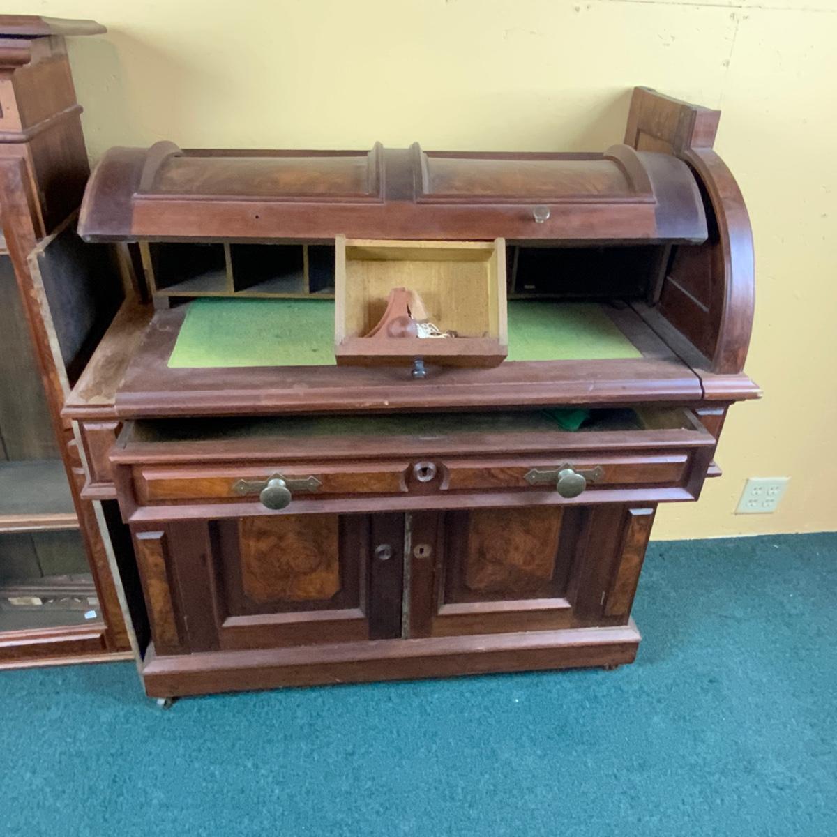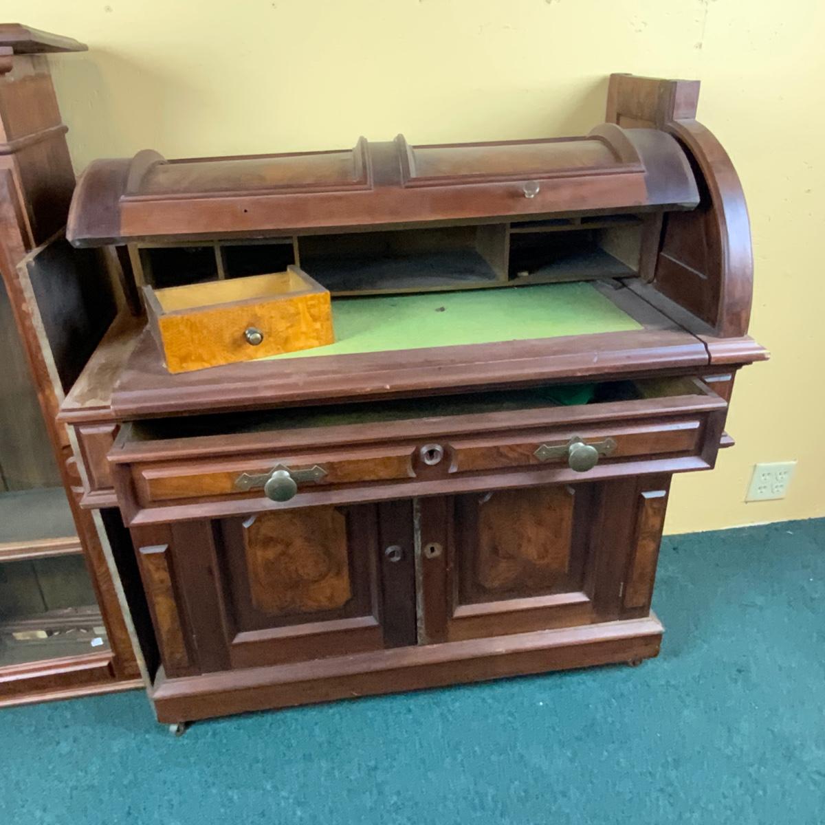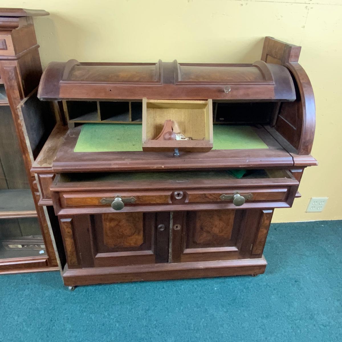 Lovely Victorian Cylinder Desk. Top and bottom are separate, for ease of transport. Desk needs reassembly and repair. //::\\ Please see photos for details and condition. No attempt has been made to hide any imperfections. All items listed in this auction are warehouse items, and need to be cleaned. A majority of the items need restoration as well. All items are sold AS IS and WITHOUT GUARANTEE. If you are uncertain about an item, DO NOT BID. Due to the nature of this online auction in-person inspection is HIGHLY recommended. All Sales are FINAL. Pick Up Times are FIRM. Please confirm with your own schedule that you can pick up in the scheduled times listed in the Terms and Conditions. Any questions please message the auctioneer. DO NOT Contact The Harp Gallery.
