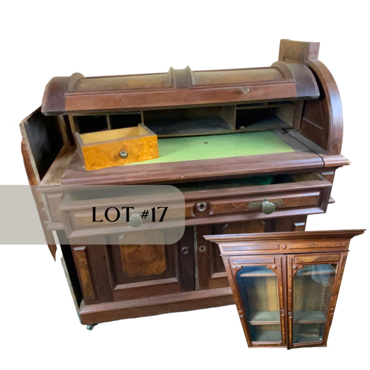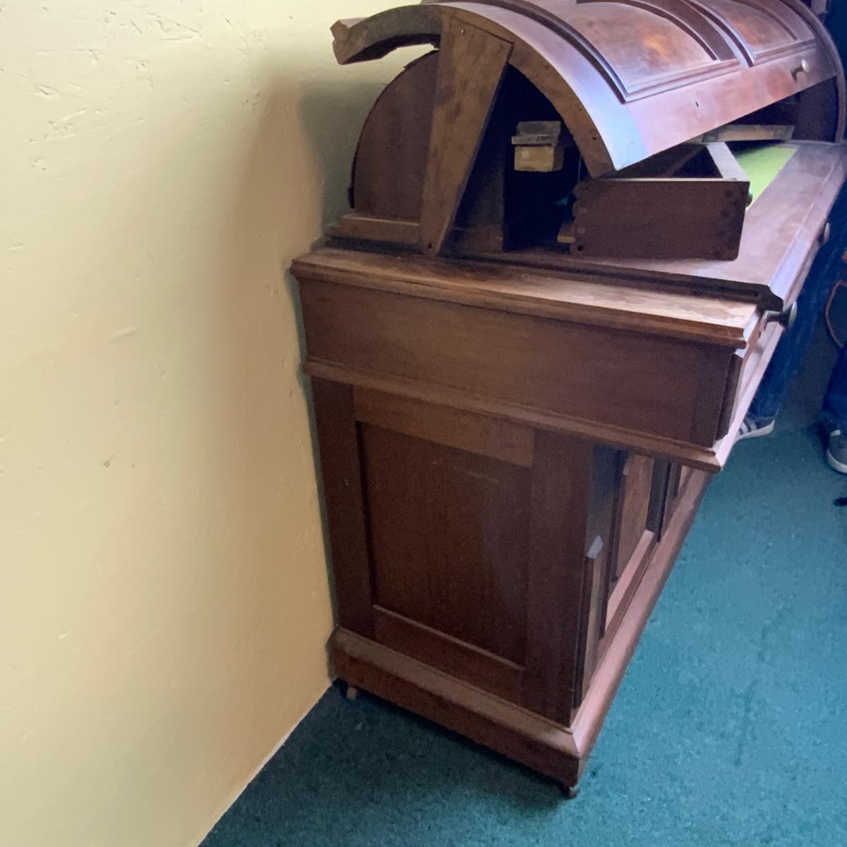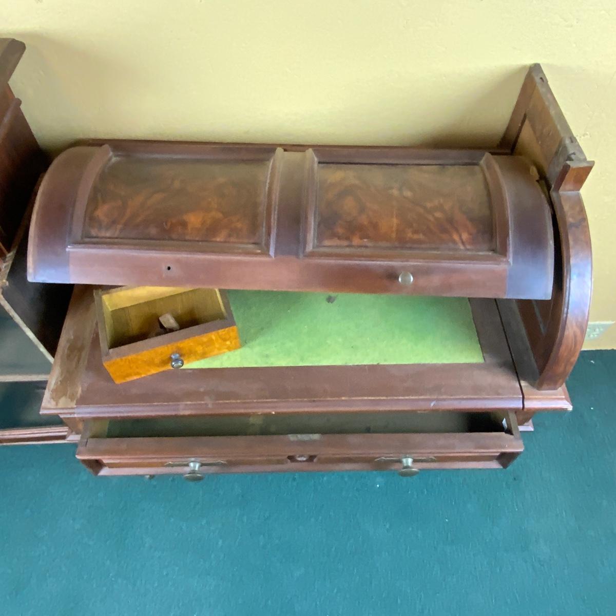 Lovely Victorian Cylinder Desk. Top and bottom are separate, for ease of transport. Desk needs reassembly and repair. //::\\ Please see photos for details and condition. No attempt has been made to hide any imperfections. All items listed in this auction are warehouse items, and need to be cleaned. A majority of the items need restoration as well. All items are sold AS IS and WITHOUT GUARANTEE. If you are uncertain about an item, DO NOT BID. Due to the nature of this online auction in-person inspection is HIGHLY recommended. All Sales are FINAL. Pick Up Times are FIRM. Please confirm with your own schedule that you can pick up in the scheduled times listed in the Terms and Conditions. Any questions please message the auctioneer. DO NOT Contact The Harp Gallery.