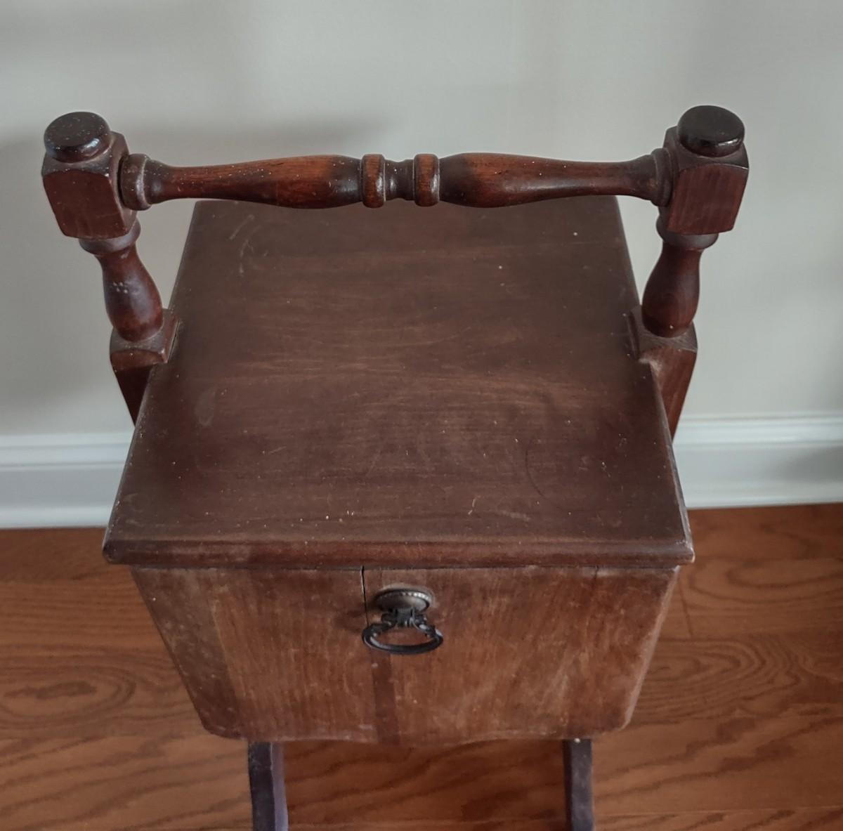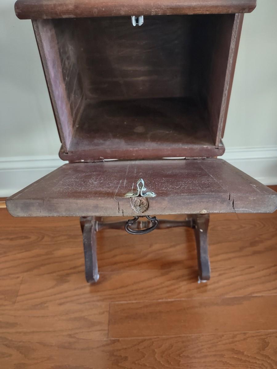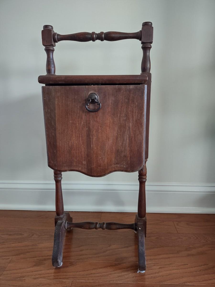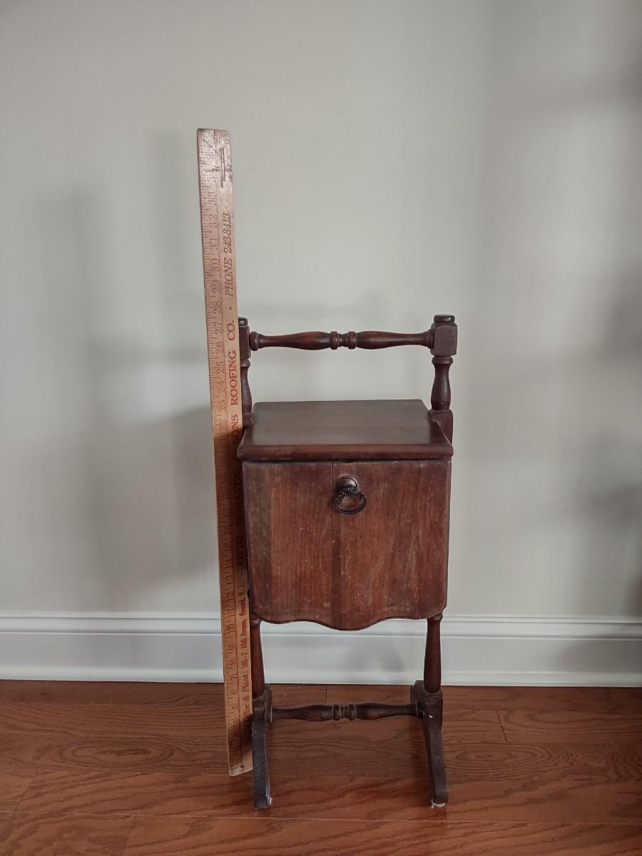 Antique Smoke Stand Side Table with Handle and Storage. Perfect small accent piece to use around home and has storage. Great plant stand also!