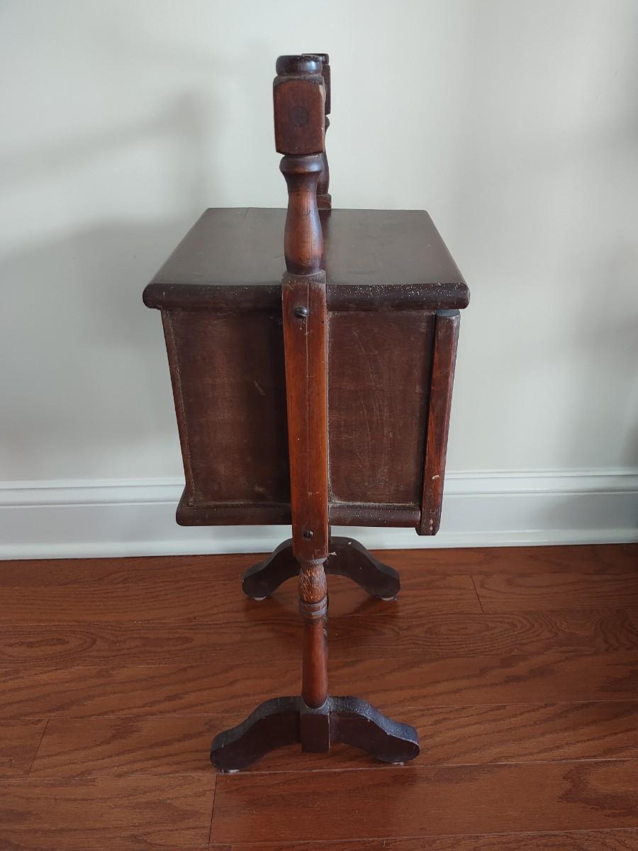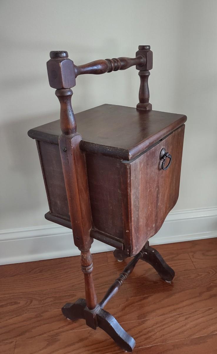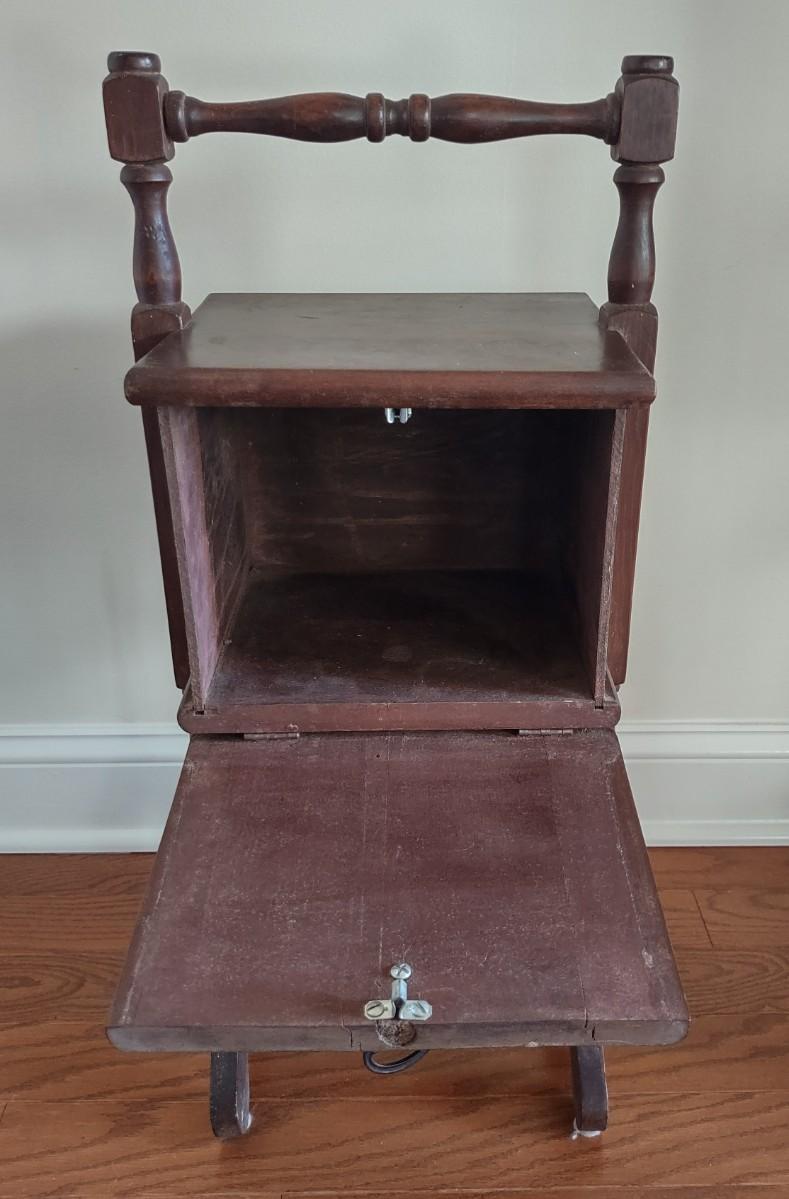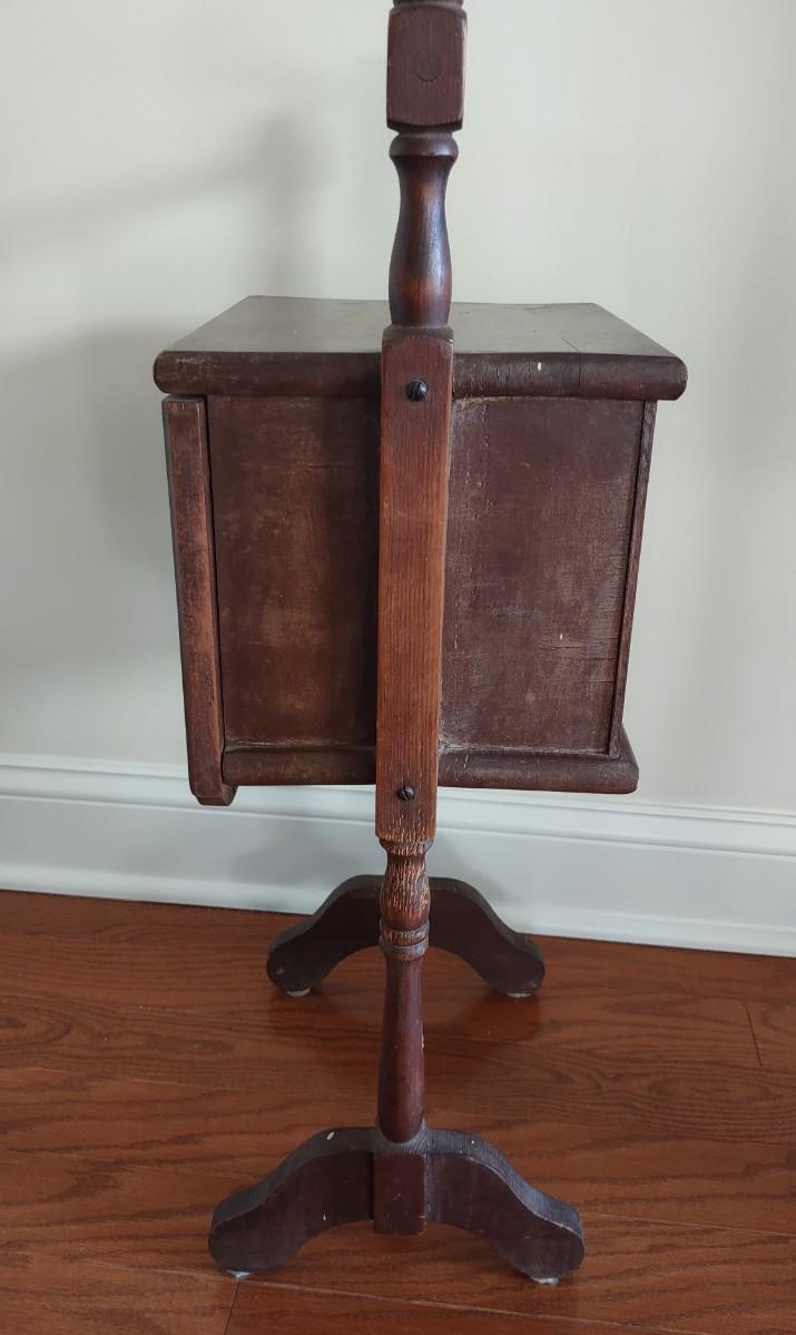 Antique Smoke Stand Side Table with Handle and Storage. Perfect small accent piece to use around home and has storage. Great plant stand also!