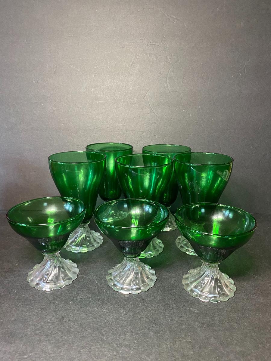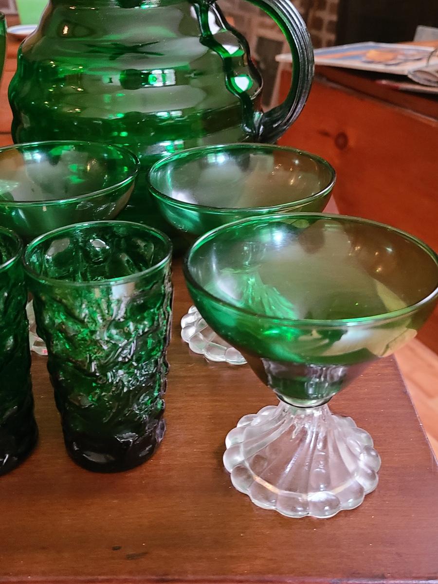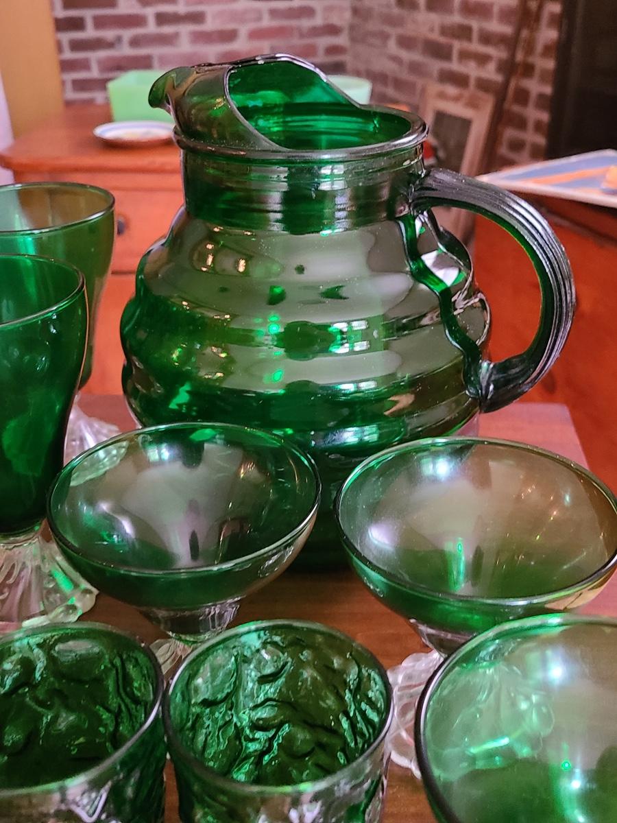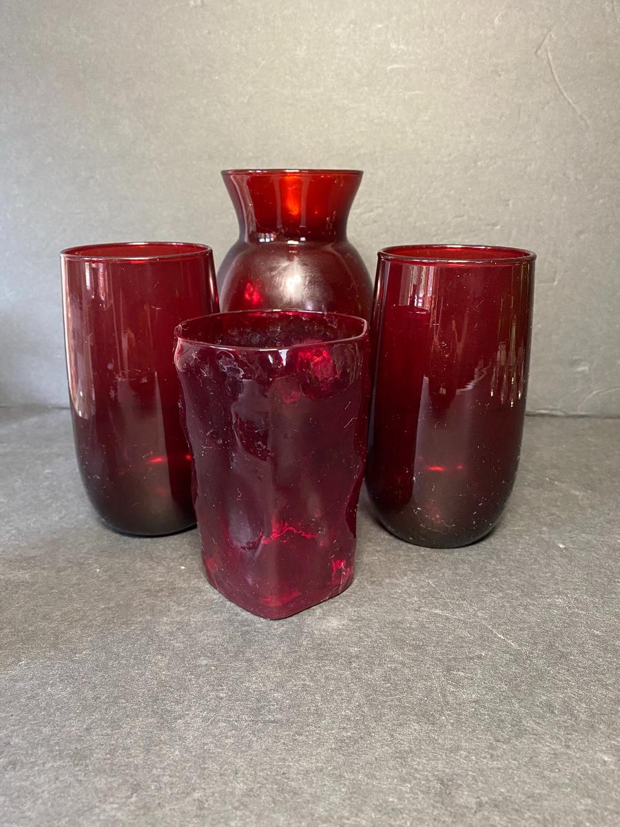 Lot 019: Vintage Ruby Red & Green Glassware (Pitcher, Vase, Glasses and More)