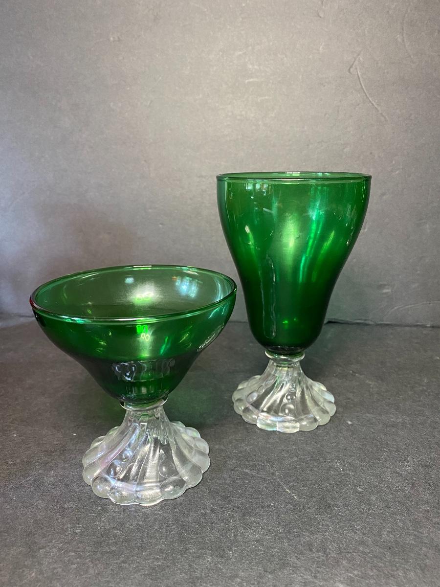 Vibrant colored vase on wooden hand carved stand. Bright green and red colored glasses. Please see all pictures as they are the best representation of the items. The pictures show condition, measurements if taken, and what is included in the lot. Due to the large amount that we photograph and the time frame, we are not always able to take measurements. All items unless noted, are pre-owned and have been used. If you purchased furniture, you must bring help. We do not allow one person to carry large furniture out on their own. Bring help, tools and a truck for the safety of our client’s homes, and your personal safety. Company policy. Thank you.