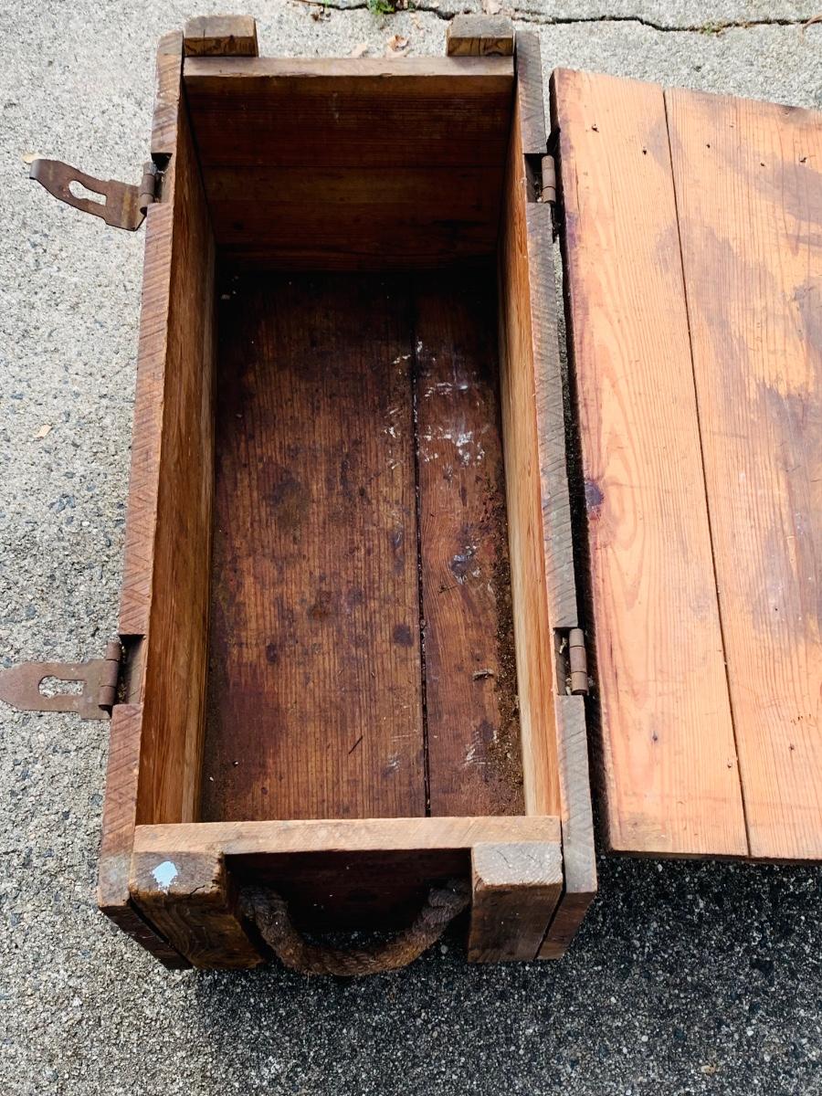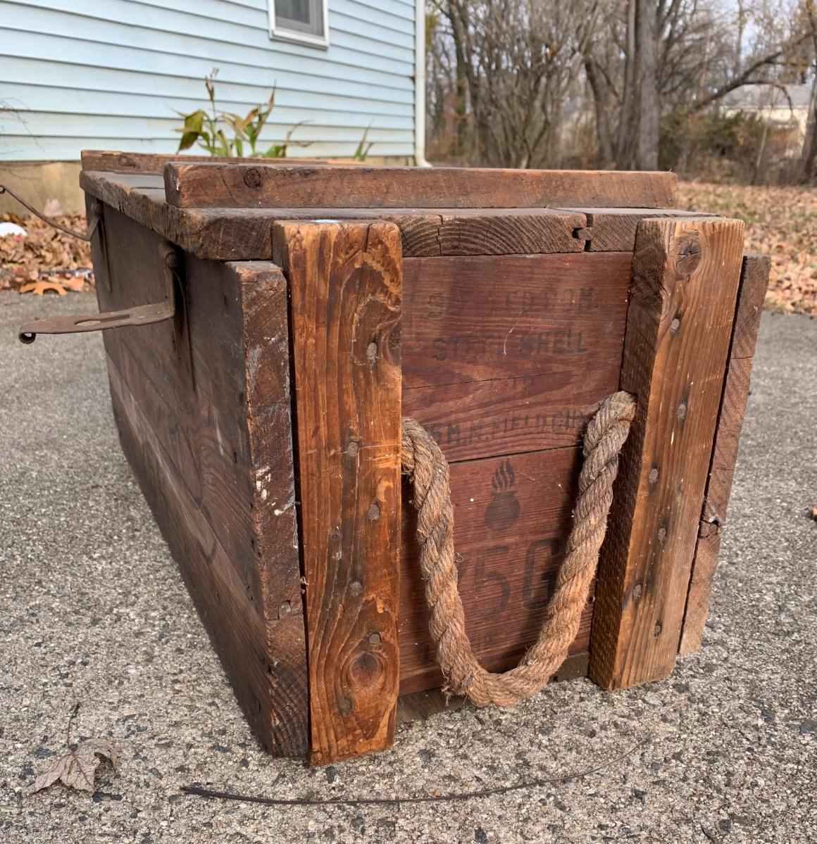Vintage Ammo crate with graphics.... awesome piece of Militaria. A must have for the military collector. Shows some wear due to age. Please see all pictures as they are the best representation of the items. The pictures show condition, measurements if taken, and what is included in the lot. Due to the large amount that we photograph and the time frame, we are not always able to take measurements. All items unless noted, are pre-owned and have been used. If you purchased furniture, you must bring help. We do not allow one person to carry large furniture out on their own. Bring help, tools and a truck for the safety of our client’s homes, and your personal safety. Company policy. Thank you.