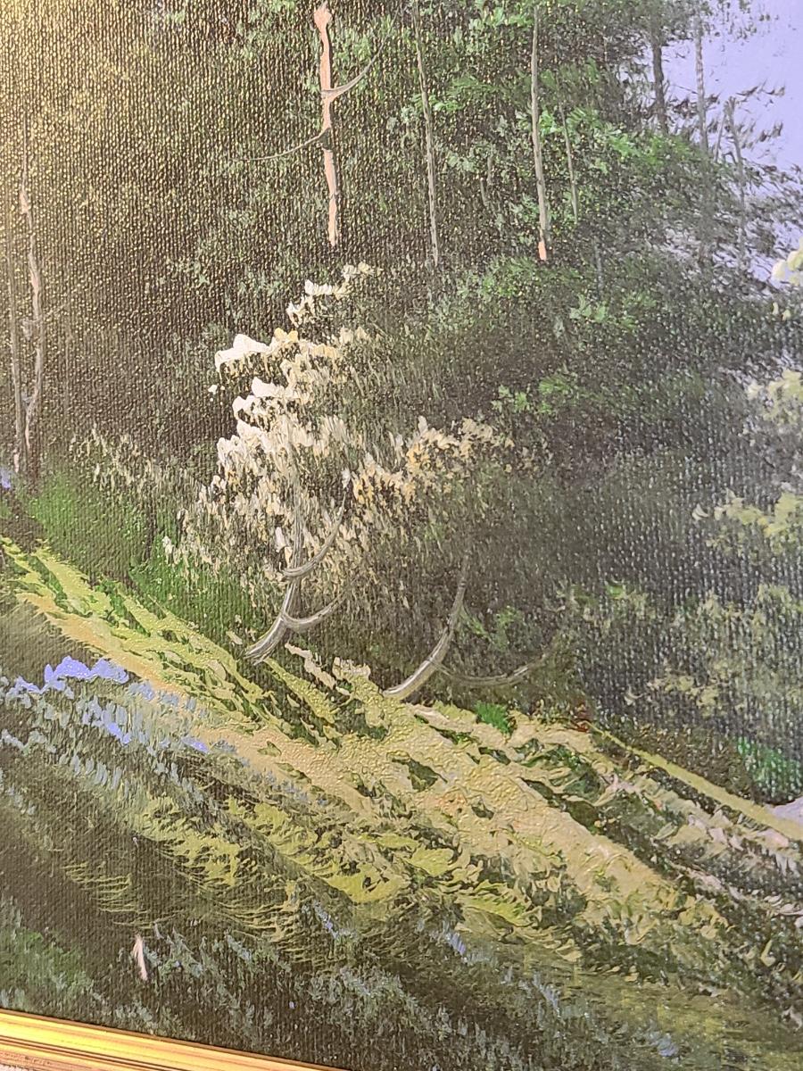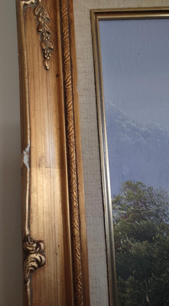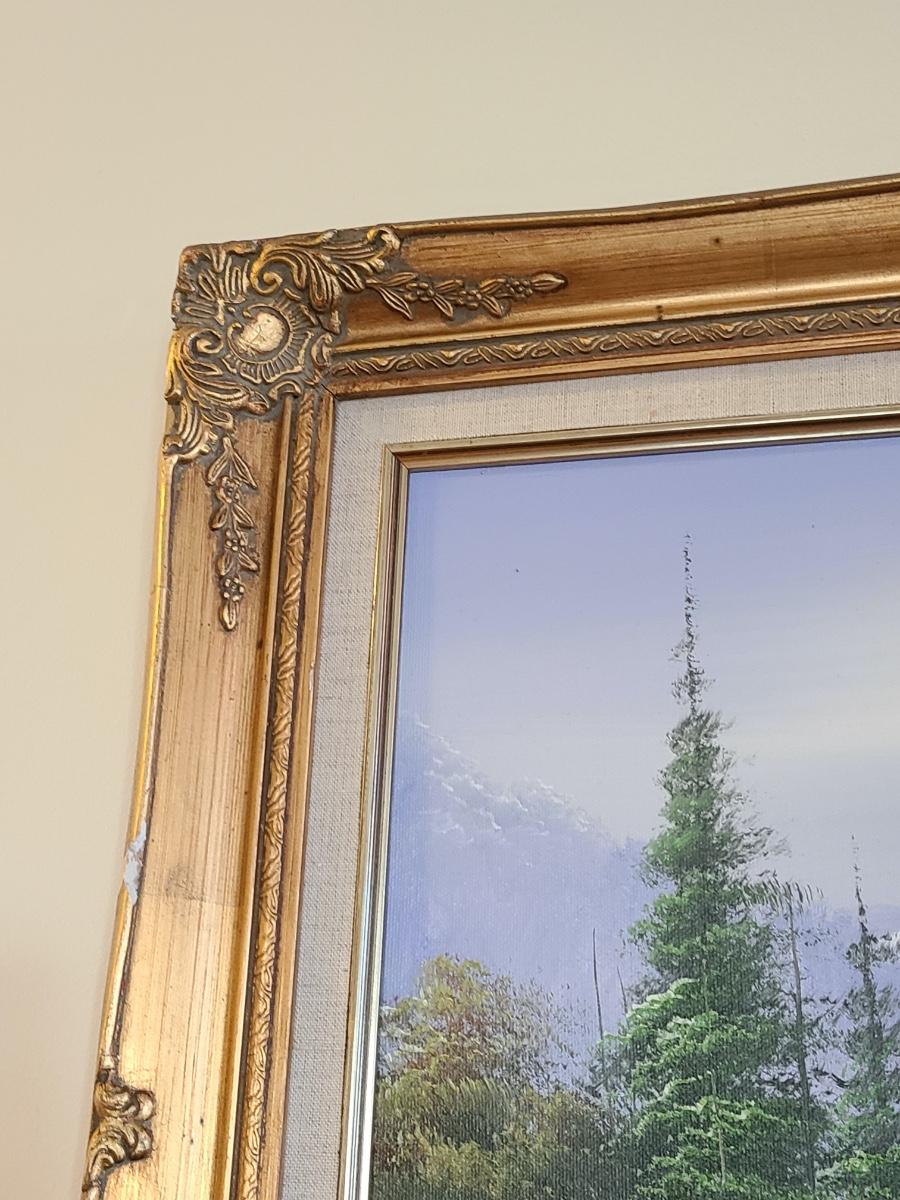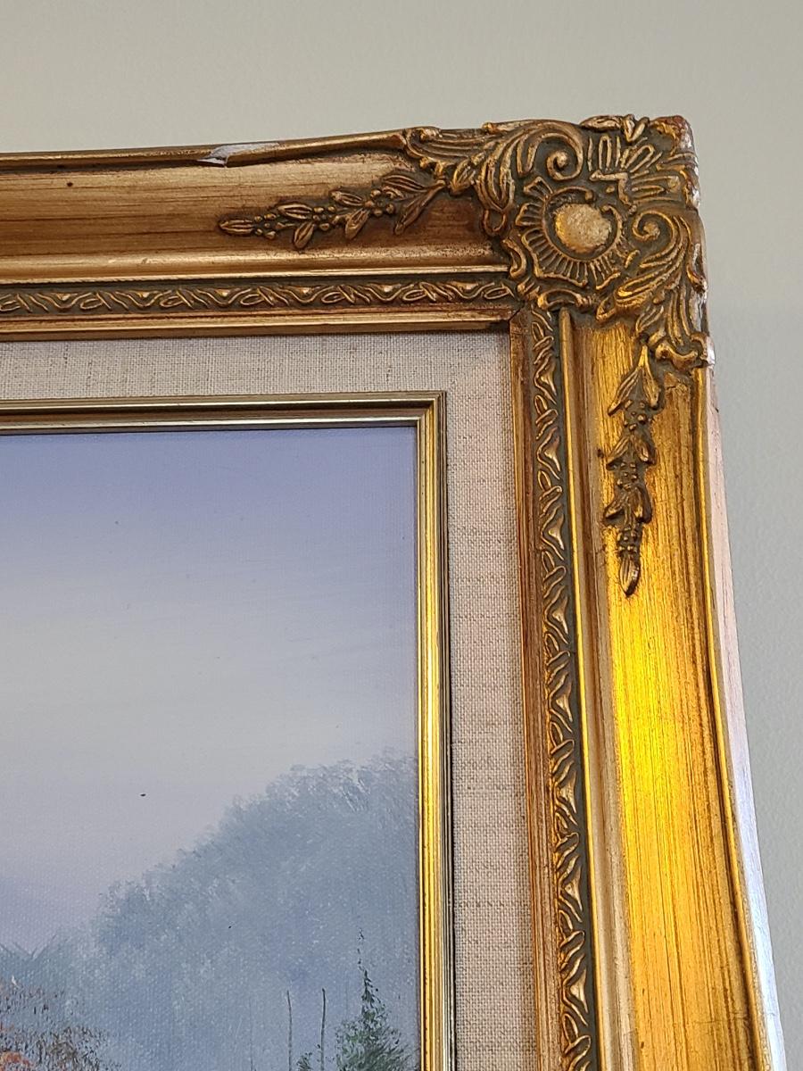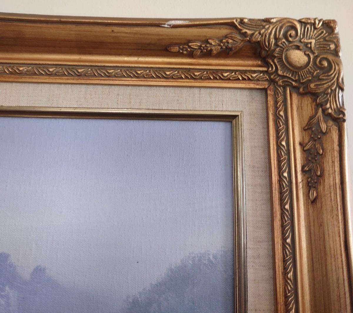 Mountain Landscape Artwork Artist Signed By Phillips 26×22"×2. This is on canvas and is a painting. Shown in early light where the picture is bright and airy; and evening light where it gives off an evening hue to the skyline.