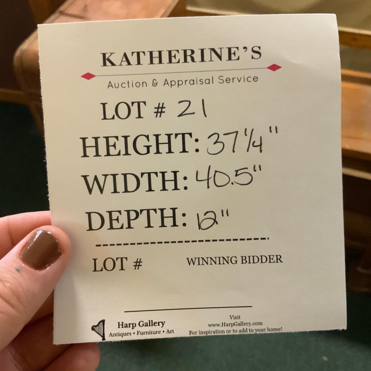 Please review any instructions the seller has provided in their sale terms and conditions. Katherine's Auction & Appraisal Service, LLC should contact you within the next few days to finalize your transaction.