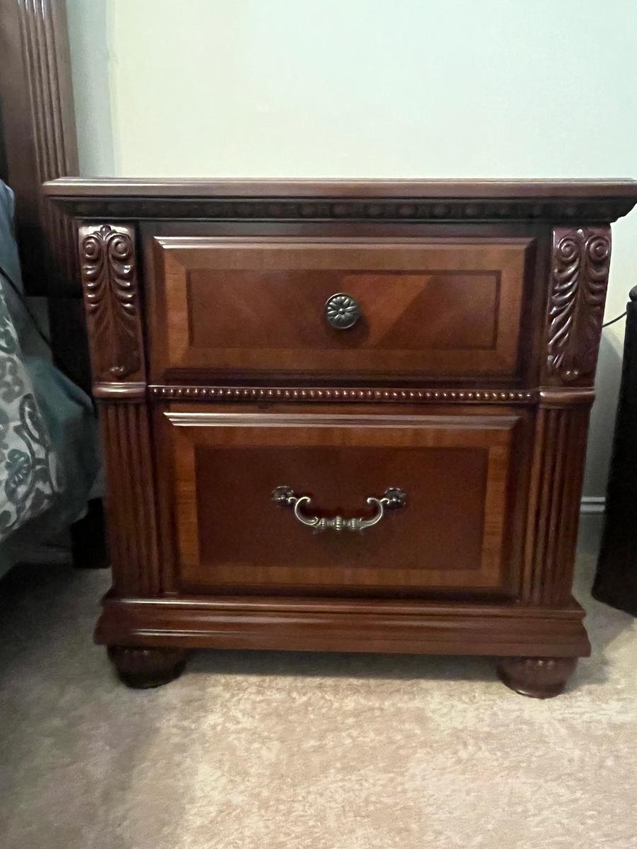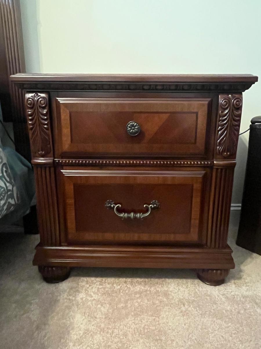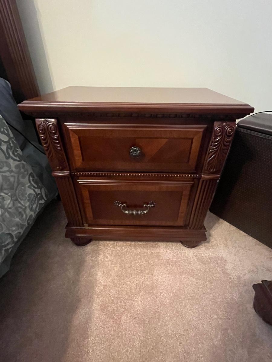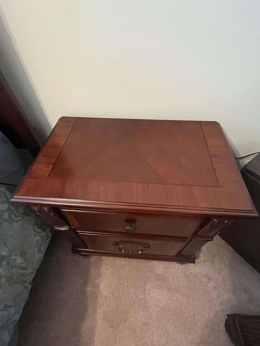 28x17x28 inches tall. Cherry stain finish night stand that still looks new. This was used in an adult only home in the guest room. Please see all pictures as they are the best representation of the items. The pictures show condition, measurements if taken, and what is included in the lot. Due to the large amount that we photograph and the time frame, we are not always able to take measurements. All items unless noted, are pre-owned and have been used. If you purchased furniture, you must bring help. We do not allow one person to carry large furniture out on their own. Bring help, tools and a truck for the safety of our client’s homes, and your personal safety. Company policy. Thank you.