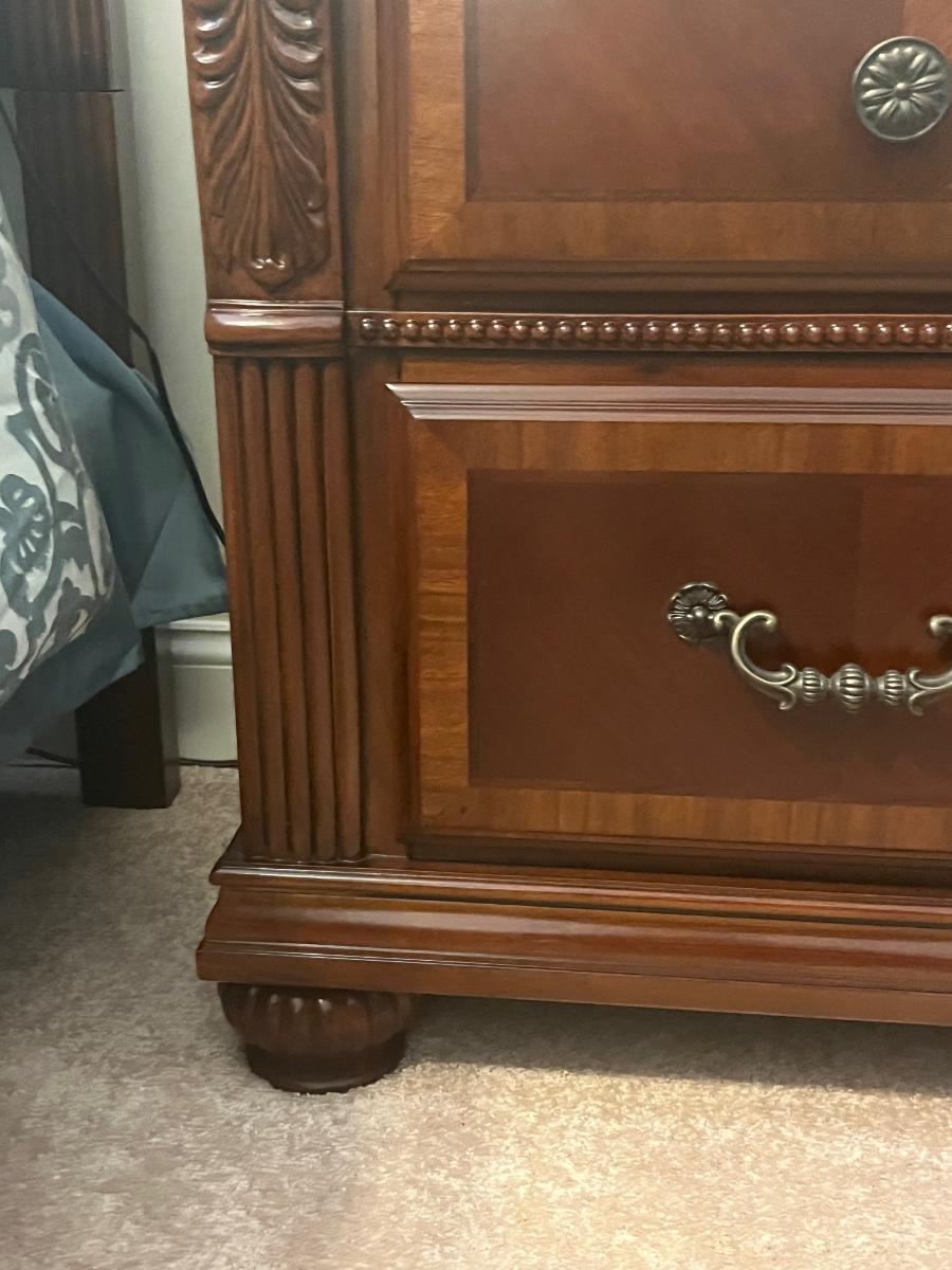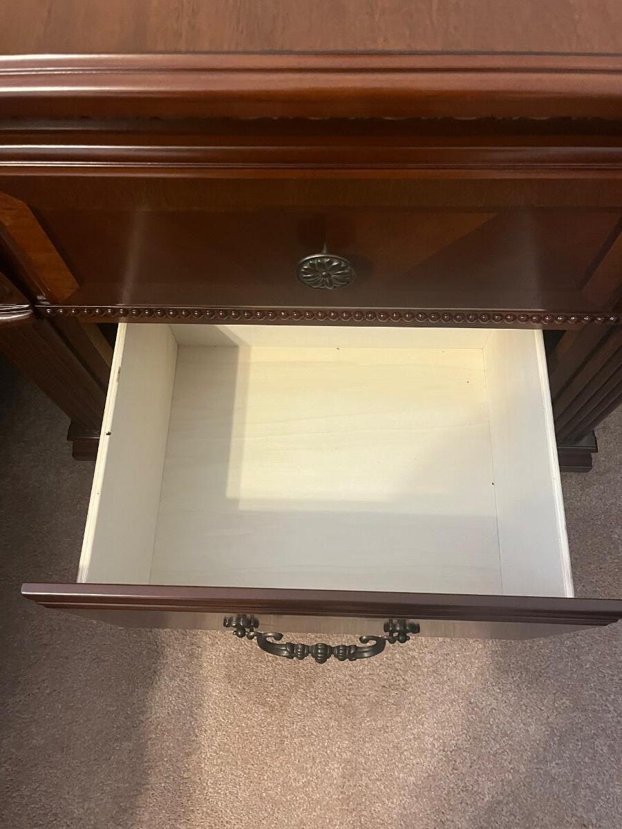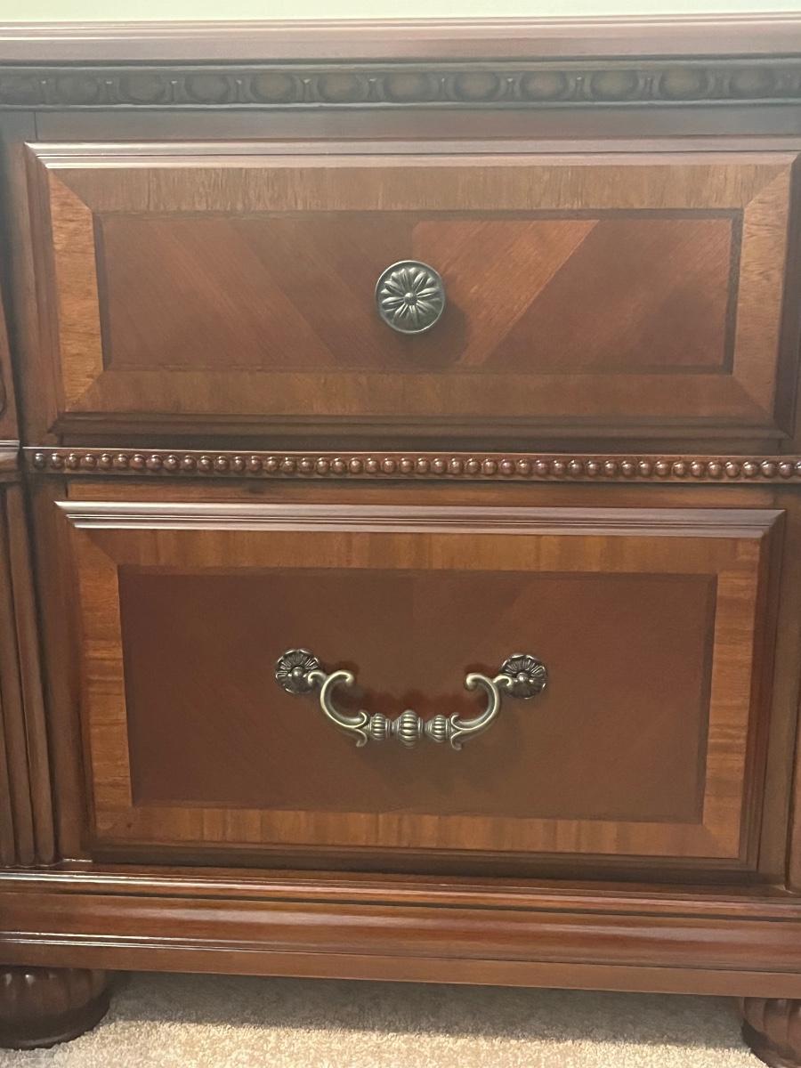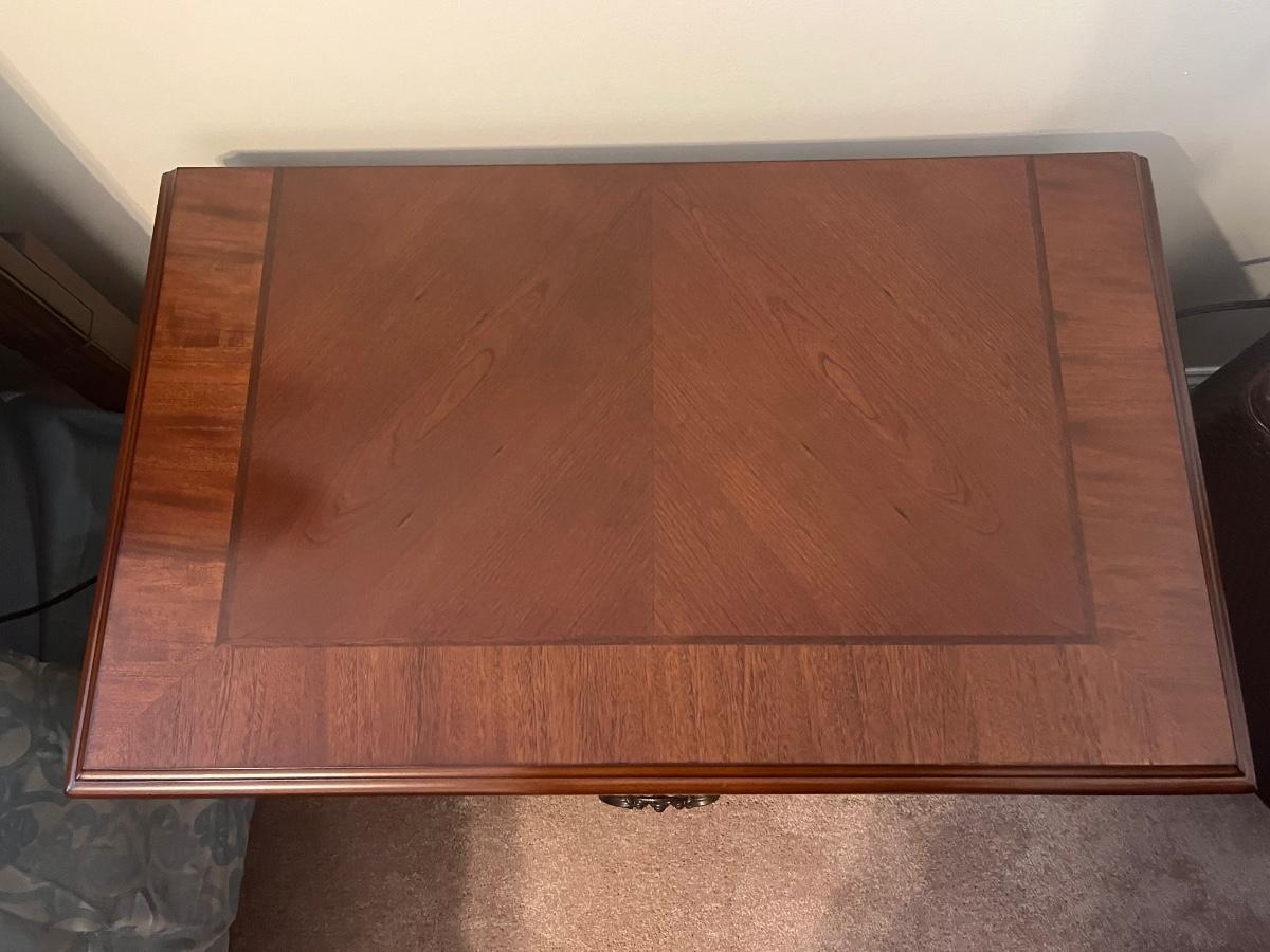 28x17x28 inches tall. Cherry stain finish night stand that still looks new. This was used in an adult only home in the guest room. Please see all pictures as they are the best representation of the items. The pictures show condition, measurements if taken, and what is included in the lot. Due to the large amount that we photograph and the time frame, we are not always able to take measurements. All items unless noted, are pre-owned and have been used. If you purchased furniture, you must bring help. We do not allow one person to carry large furniture out on their own. Bring help, tools and a truck for the safety of our client’s homes, and your personal safety. Company policy. Thank you.