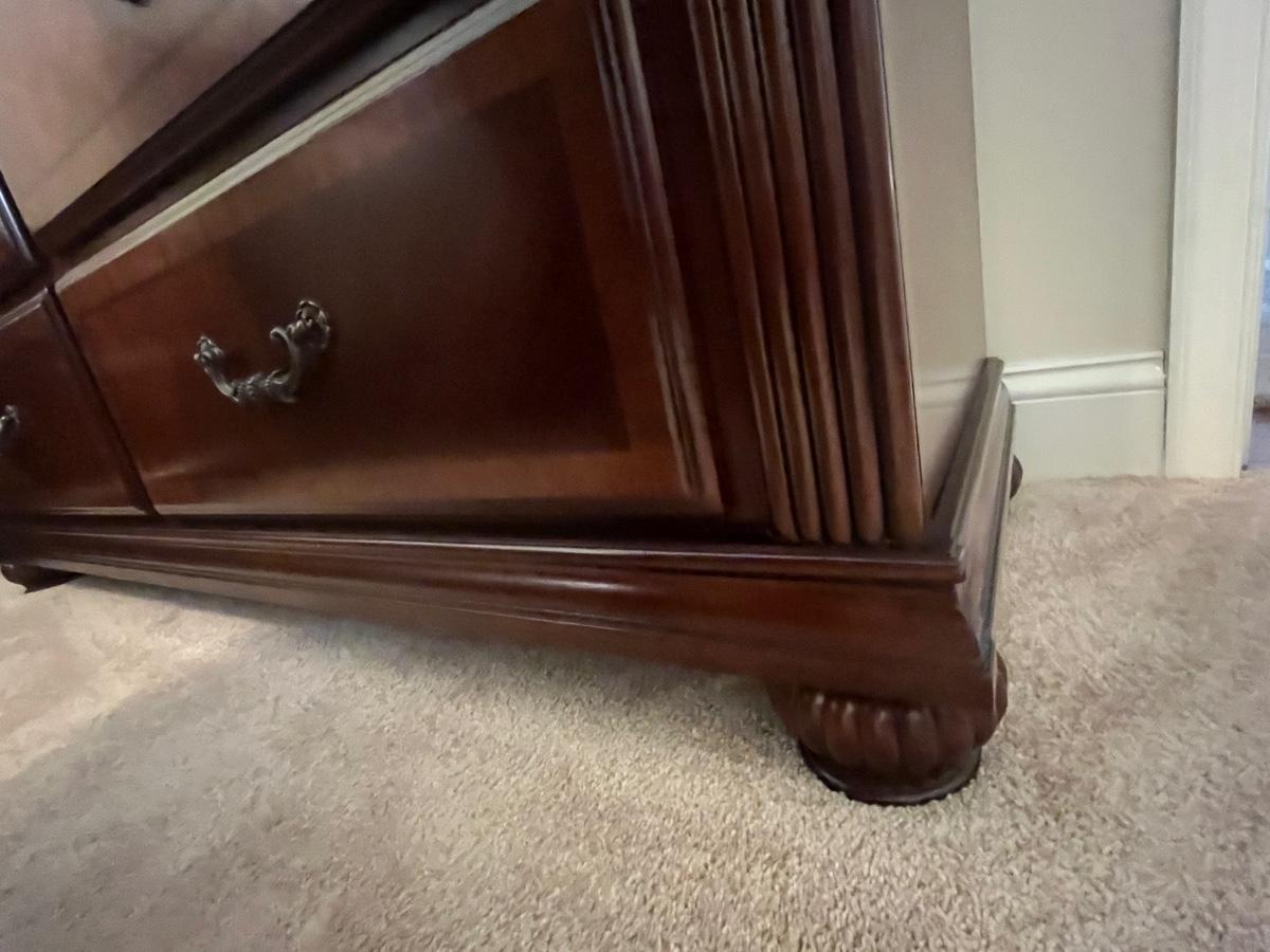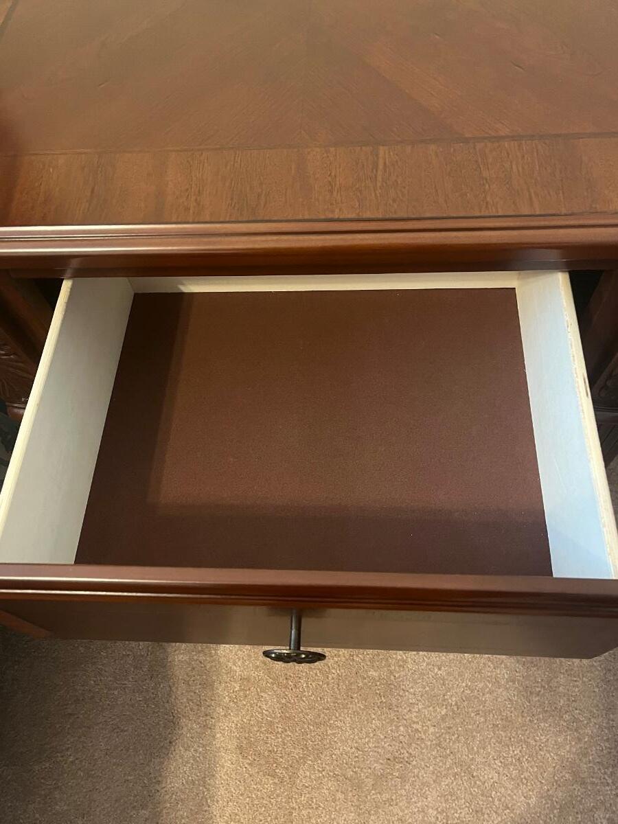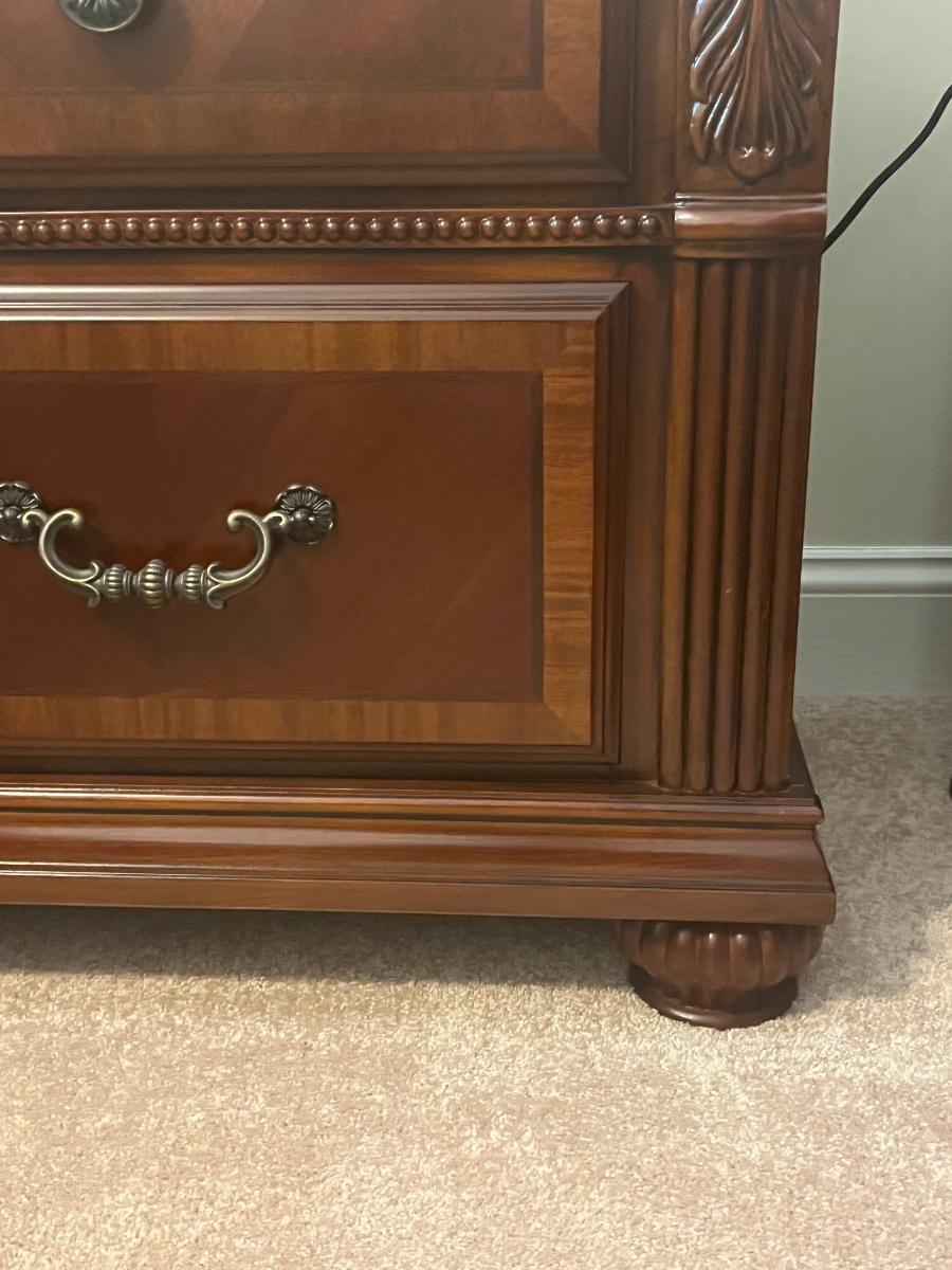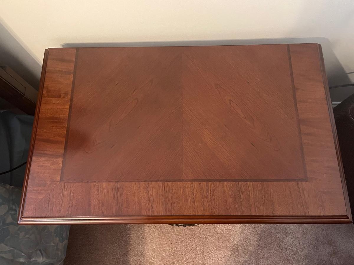 28x17x28 inches tall. Cherry stain finish night stand that still looks new. This was used in an adult only home in the guest room. Please see all pictures as they are the best representation of the items. The pictures show condition, measurements if taken, and what is included in the lot. Due to the large amount that we photograph and the time frame, we are not always able to take measurements. All items unless noted, are pre-owned and have been used. If you purchased furniture, you must bring help. We do not allow one person to carry large furniture out on their own. Bring help, tools and a truck for the safety of our client’s homes, and your personal safety. Company policy. Thank you.