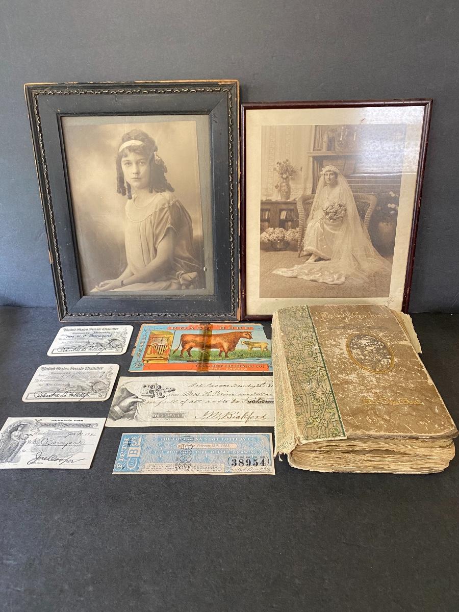 Lot 025: Antique Photos, Yearbook, Lottery Ticket and more (Must See)