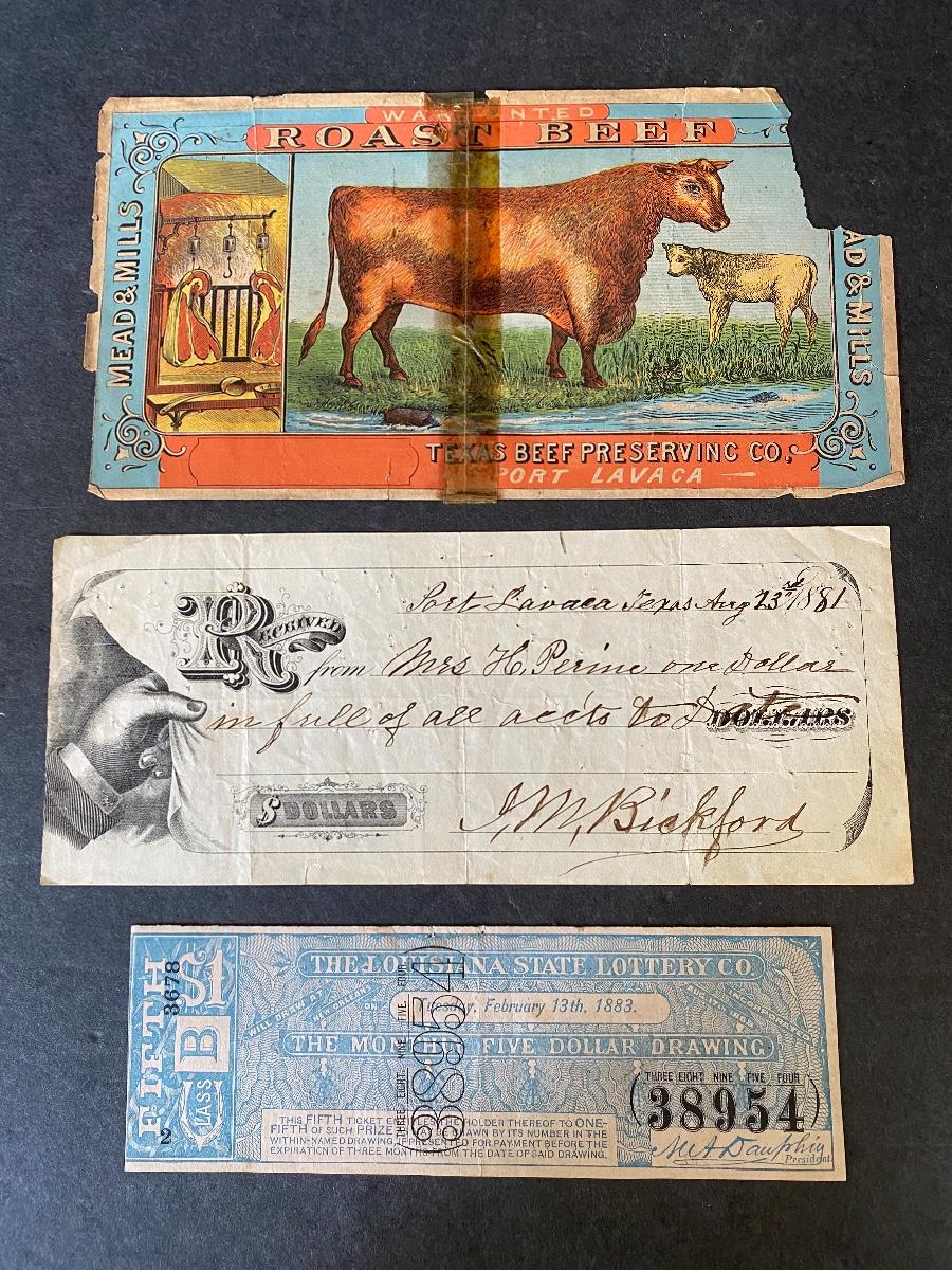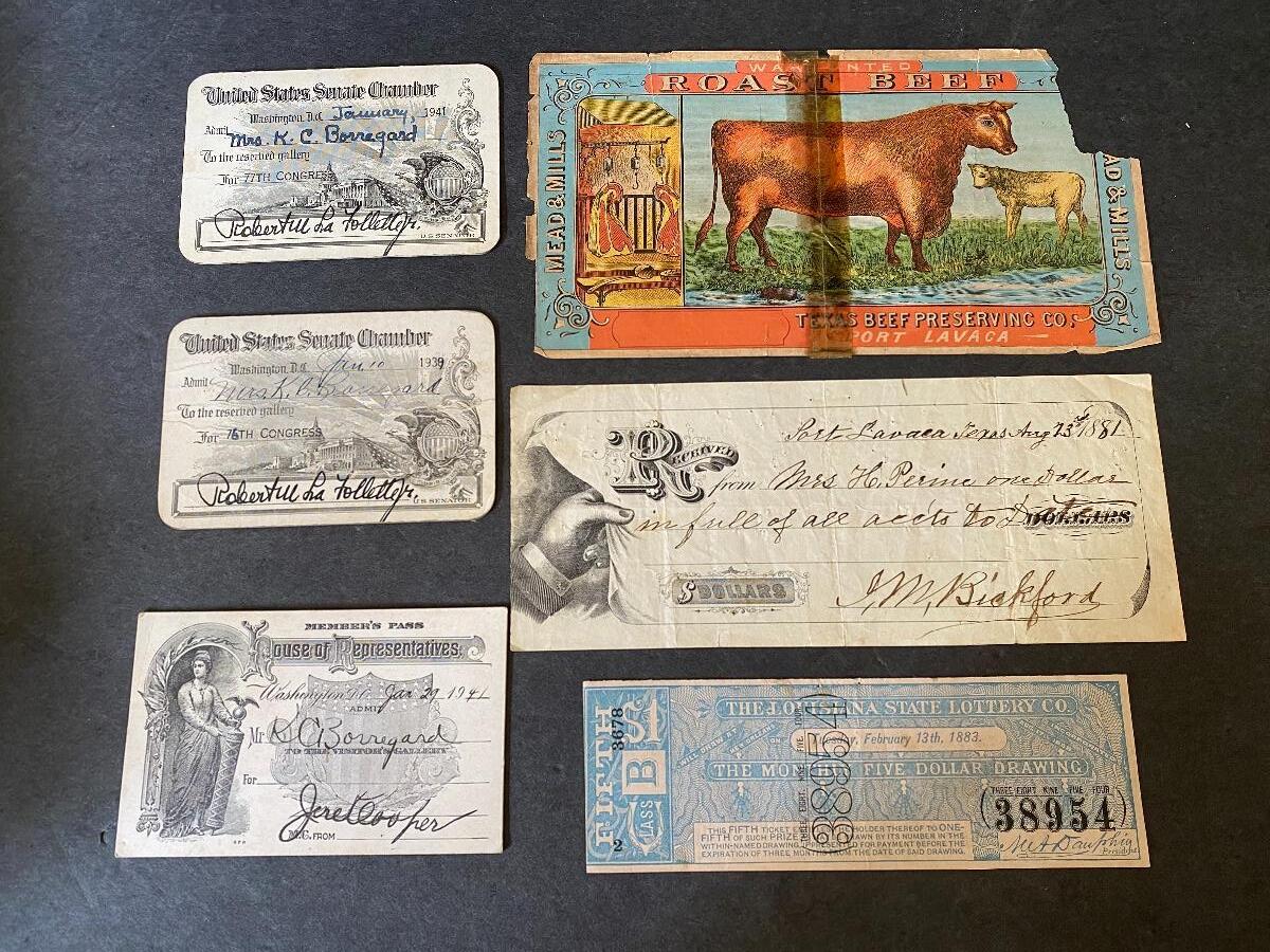 Unique lot of antique ephemera. 1800’s framed photos, lottery tickets, homemade yearbook filled with photos, cards, fabrics and trinkets. All dating back to the 1800’s.