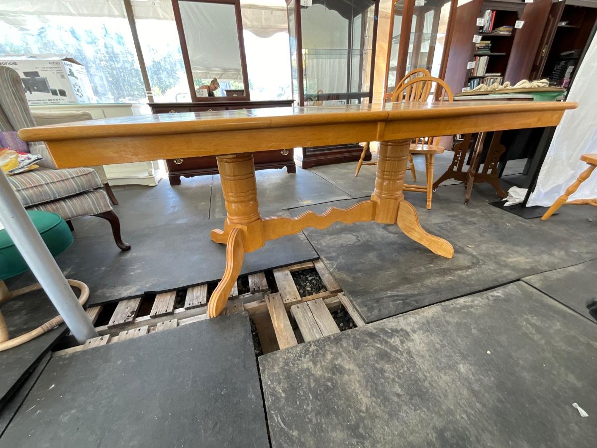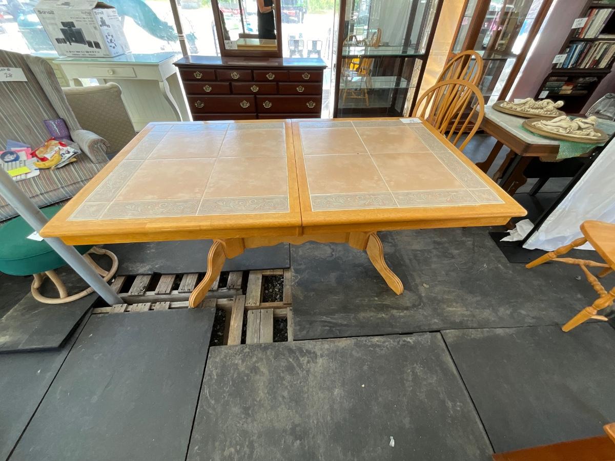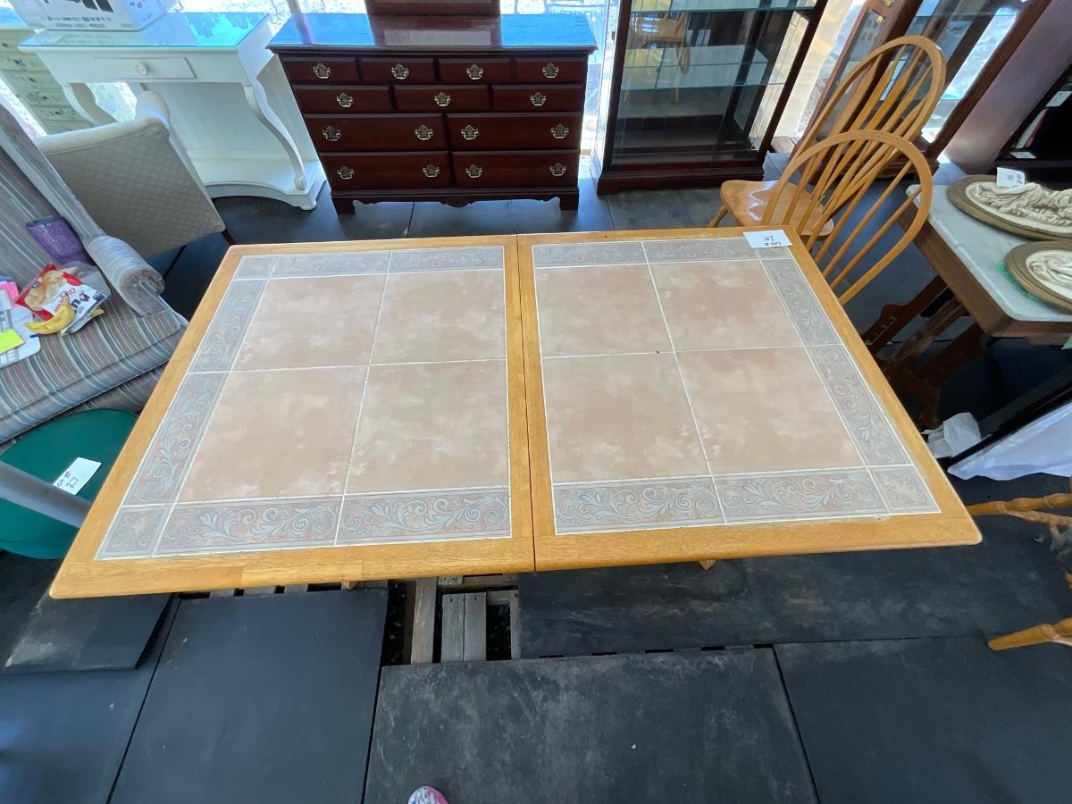 Lot# 025 Kuolin Furniture Vintage Wooden/Tile Top Table with Six Chairs