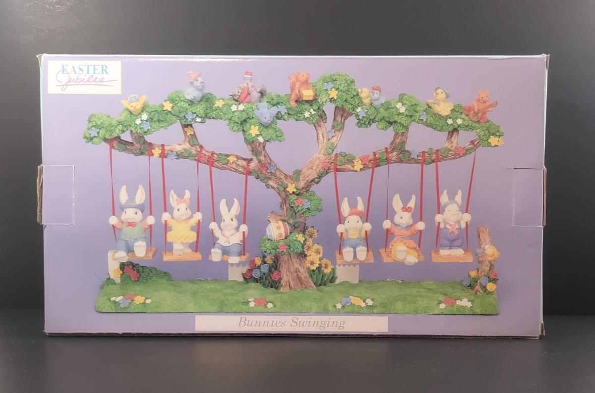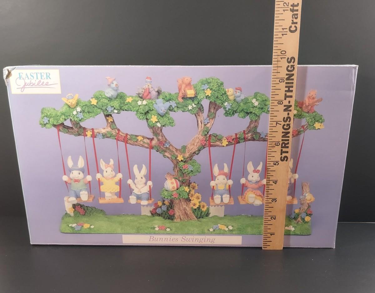Easter Jubilee Bunnies Swinging. Please see all pictures as they are the best representation of the items. The pictures show condition, measurements if taken, and what is included in the lot. Due to the large amount that we photograph and the time frame, we are not always able to take measurements. All items unless noted, are pre-owned and have been used. If you purchased furniture, you must bring help. We do not allow one person to carry large furniture out on their own. Bring help, tools and a truck for the safety of our client’s homes, and your personal safety. Company policy. Thank you.