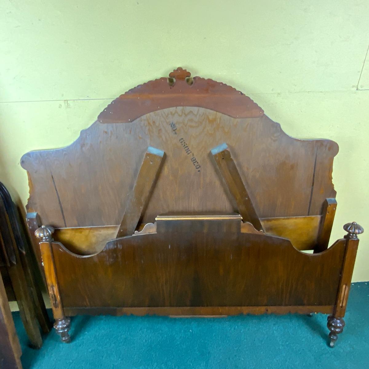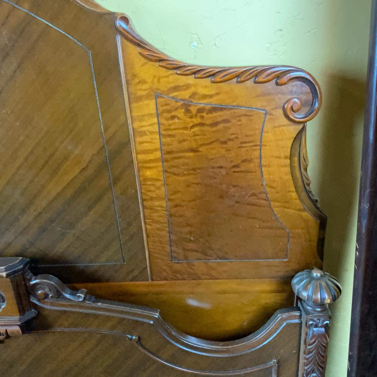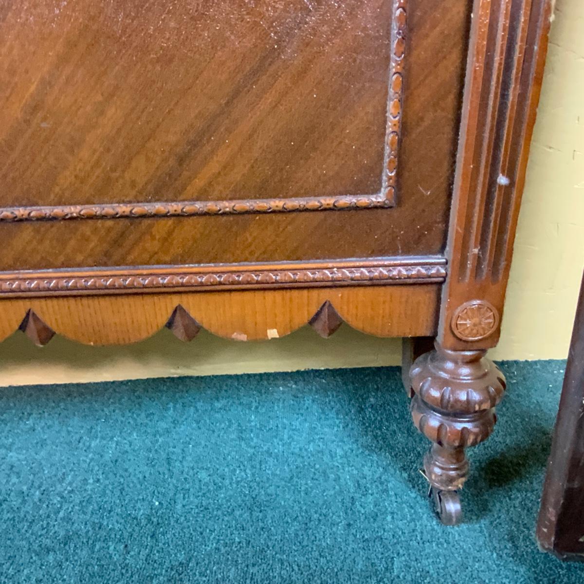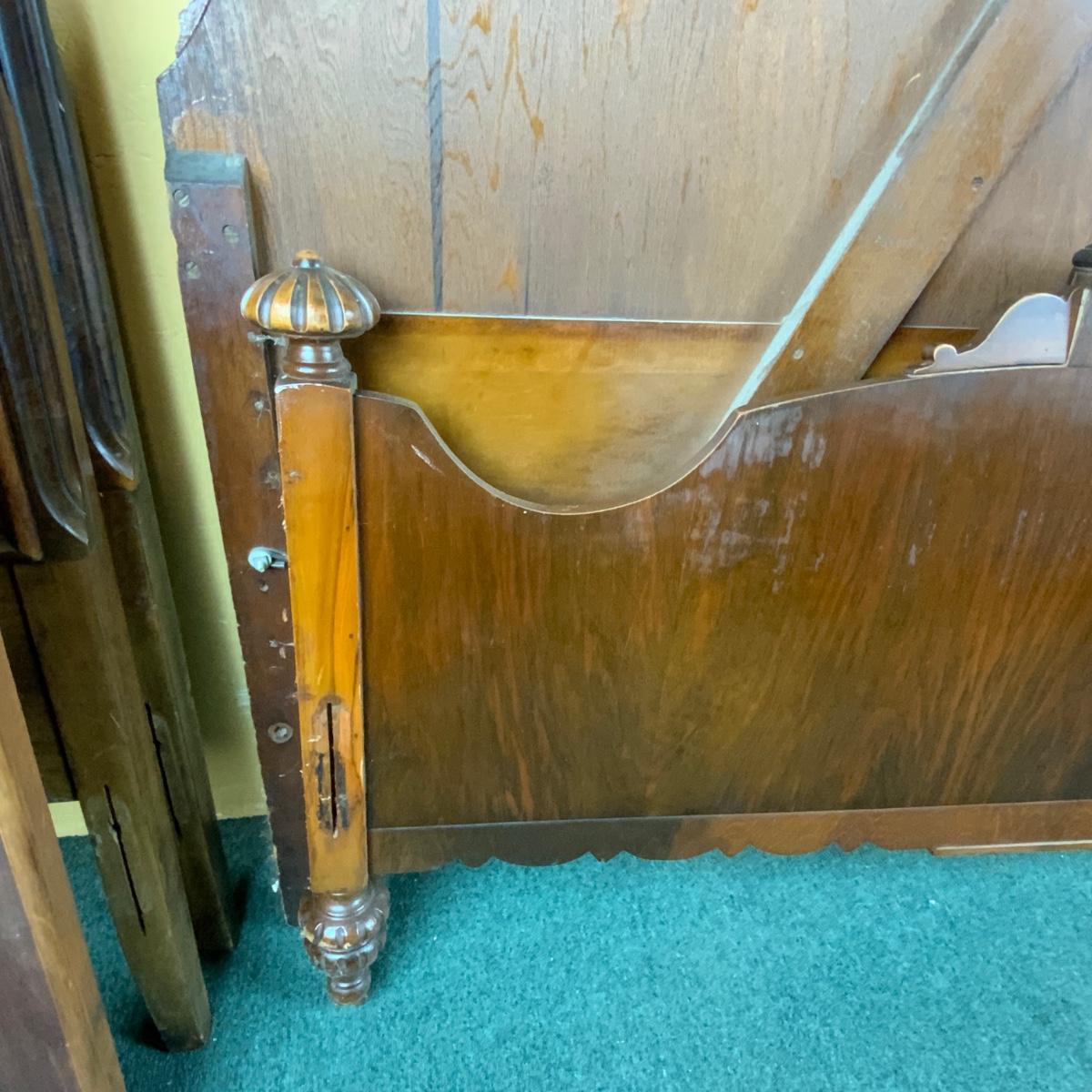 Gorgeous Antique Veneered Head and Footboard. Comes with rails. //::\\ Please see photos for details and condition. No attempt has been made to hide any imperfections. All items listed in this auction are warehouse items, and need to be cleaned. A majority of the items need restoration as well. All items are sold AS IS and WITHOUT GUARANTEE. If you are uncertain about an item, DO NOT BID. Due to the nature of this online auction in-person inspection is HIGHLY recommended. All Sales are FINAL. Pick Up Times are FIRM. Please confirm with your own schedule that you can pick up in the scheduled times listed in the Terms and Conditions. Any questions please message the auctioneer. DO NOT Contact The Harp Gallery.