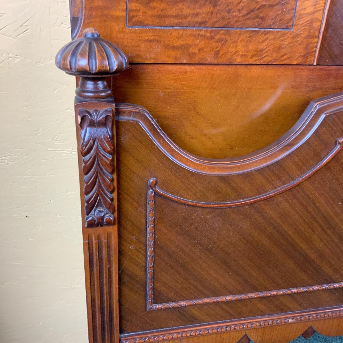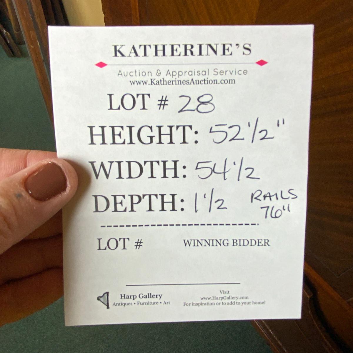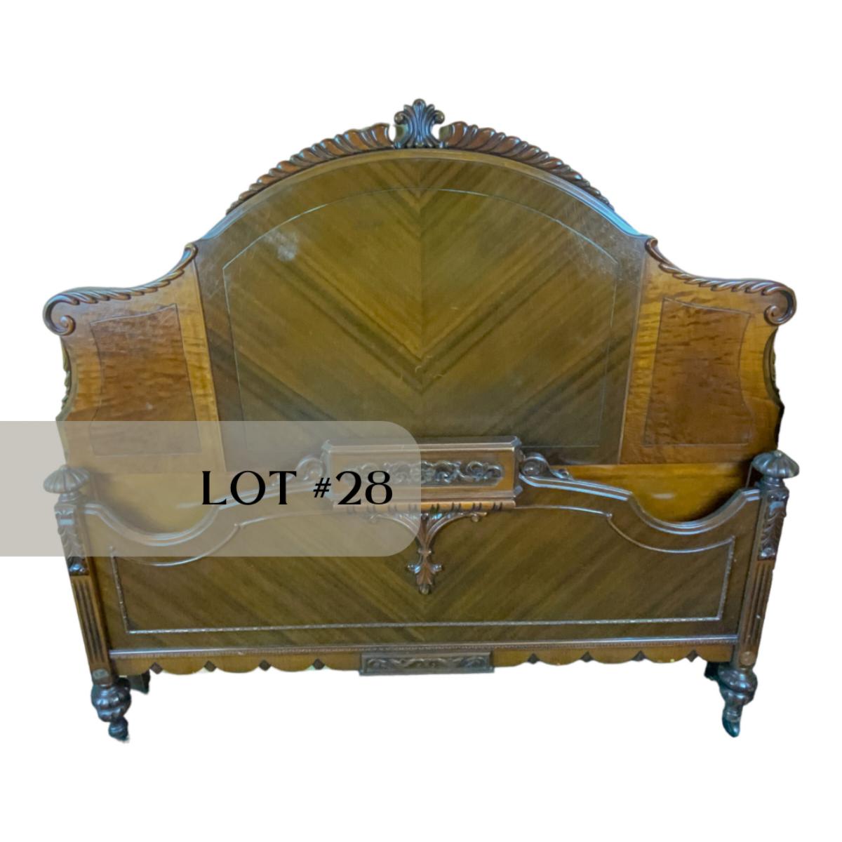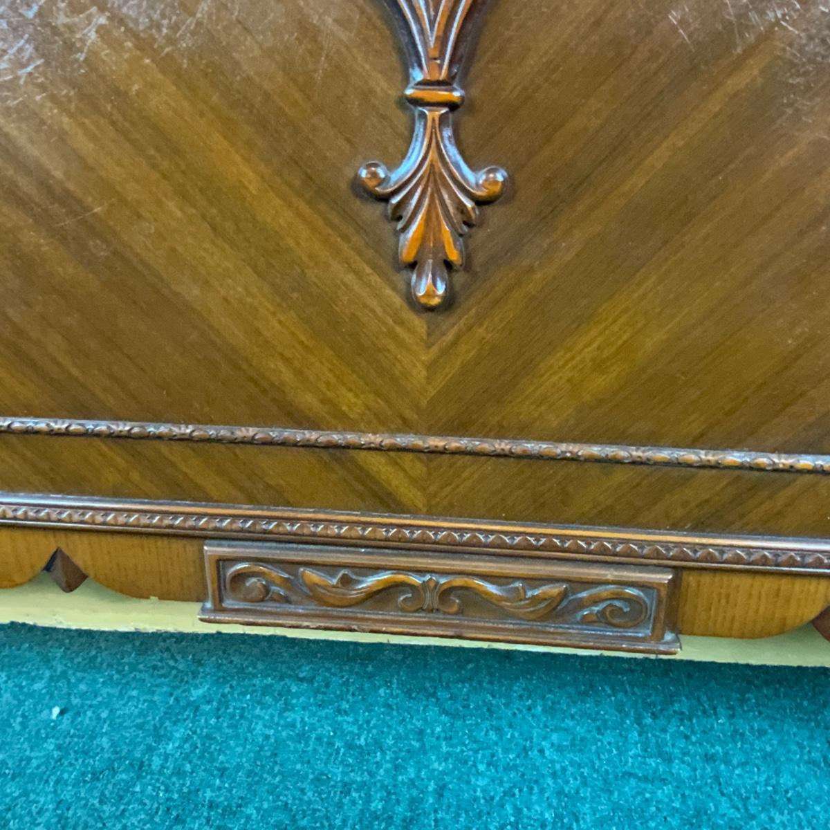 Gorgeous Antique Veneered Head and Footboard. Comes with rails. //::\\ Please see photos for details and condition. No attempt has been made to hide any imperfections. All items listed in this auction are warehouse items, and need to be cleaned. A majority of the items need restoration as well. All items are sold AS IS and WITHOUT GUARANTEE. If you are uncertain about an item, DO NOT BID. Due to the nature of this online auction in-person inspection is HIGHLY recommended. All Sales are FINAL. Pick Up Times are FIRM. Please confirm with your own schedule that you can pick up in the scheduled times listed in the Terms and Conditions. Any questions please message the auctioneer. DO NOT Contact The Harp Gallery.
