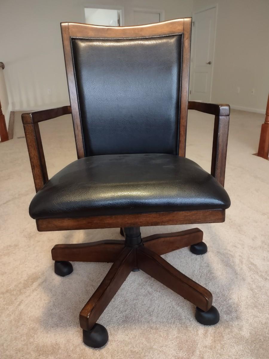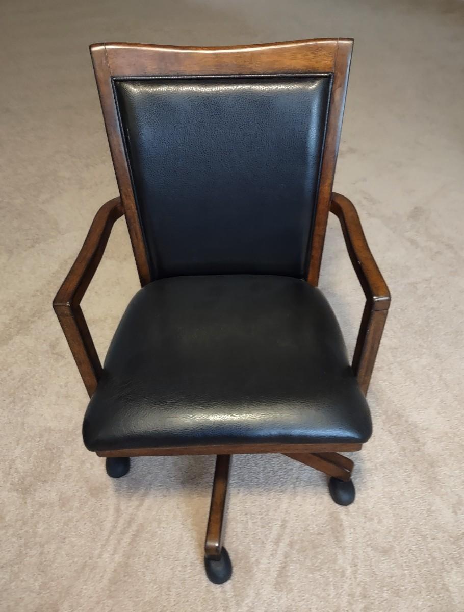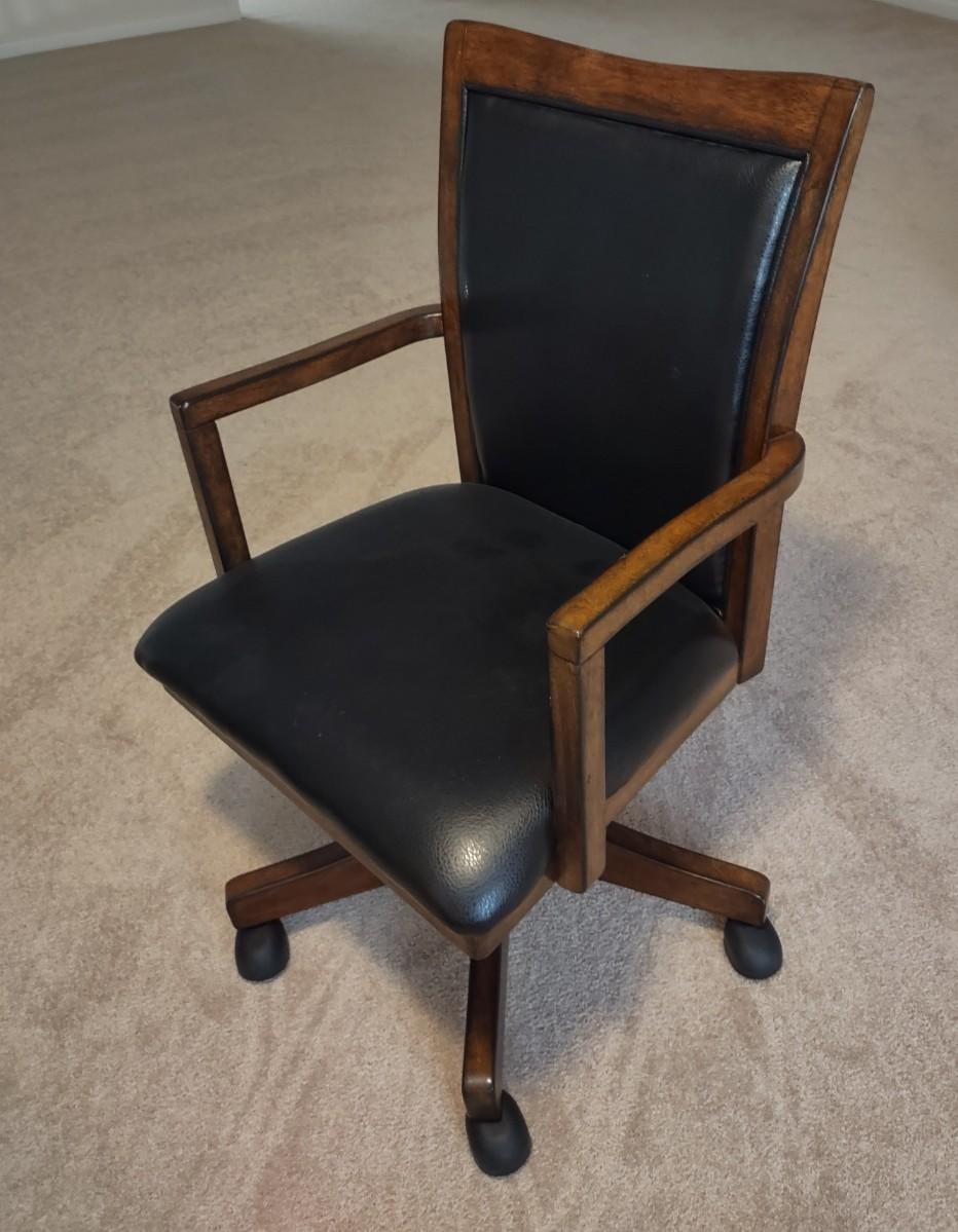 Leather look adjustable swivel rolling desk chair (24×24×38") Still looks new!