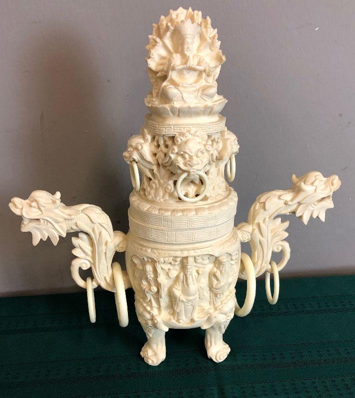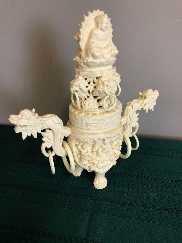 Lot # 03 Resin Dragon Vase with Buddha's reproduction