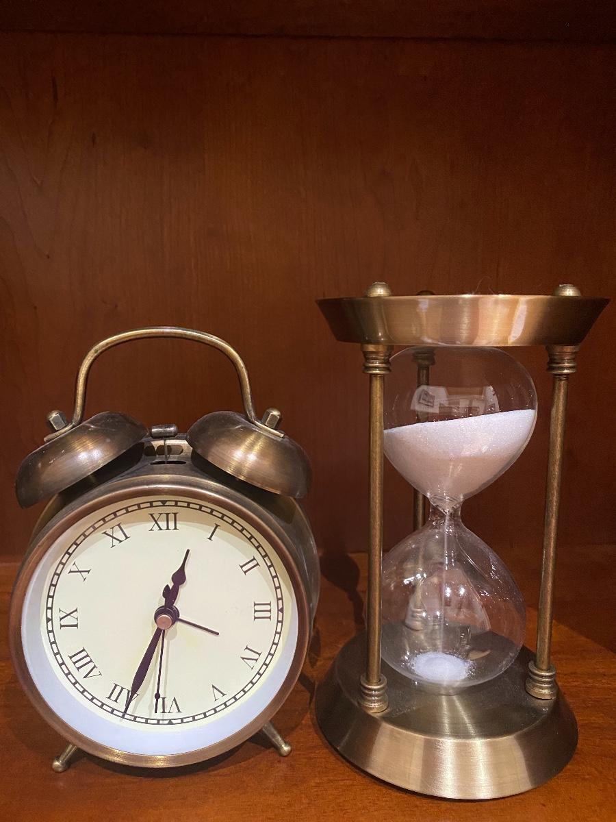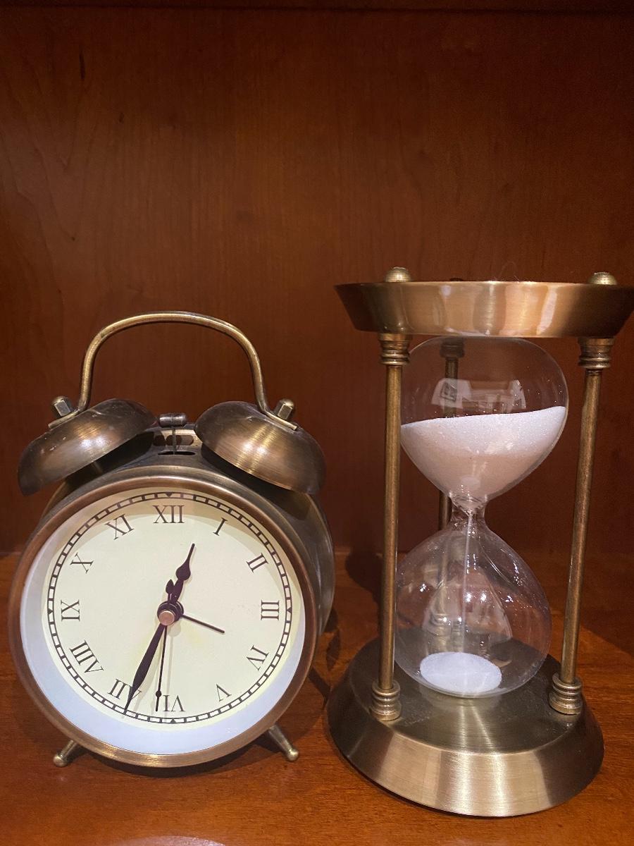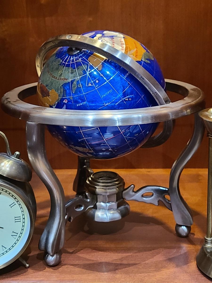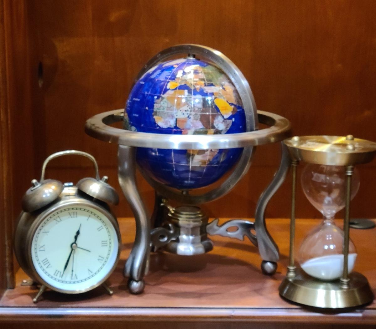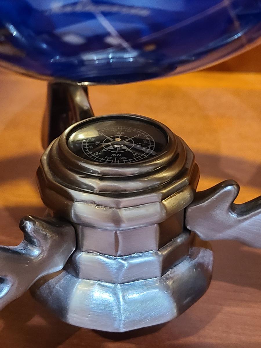 Lot 031: Compass/Globe on Swivel Stand, Sand Timer and Clock
