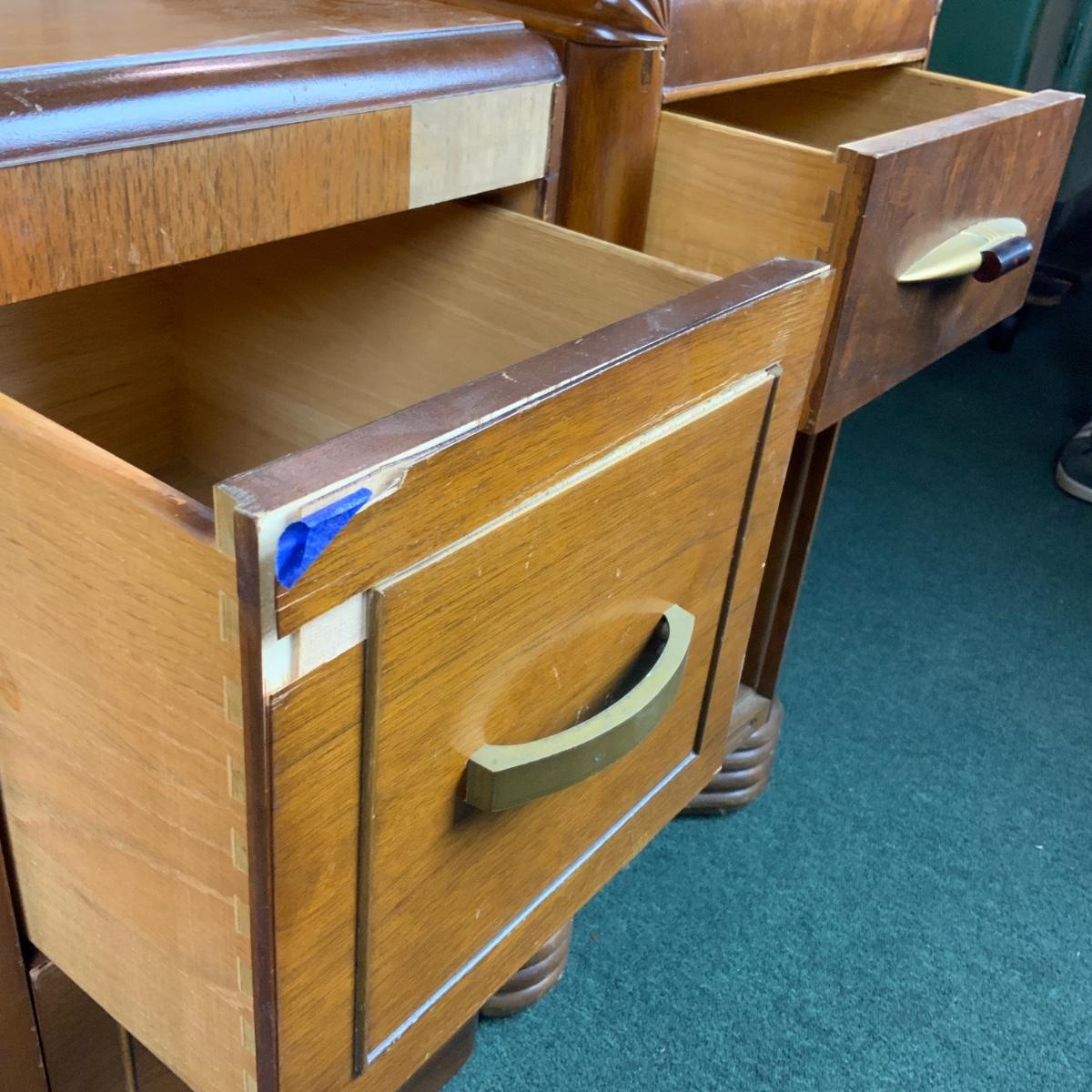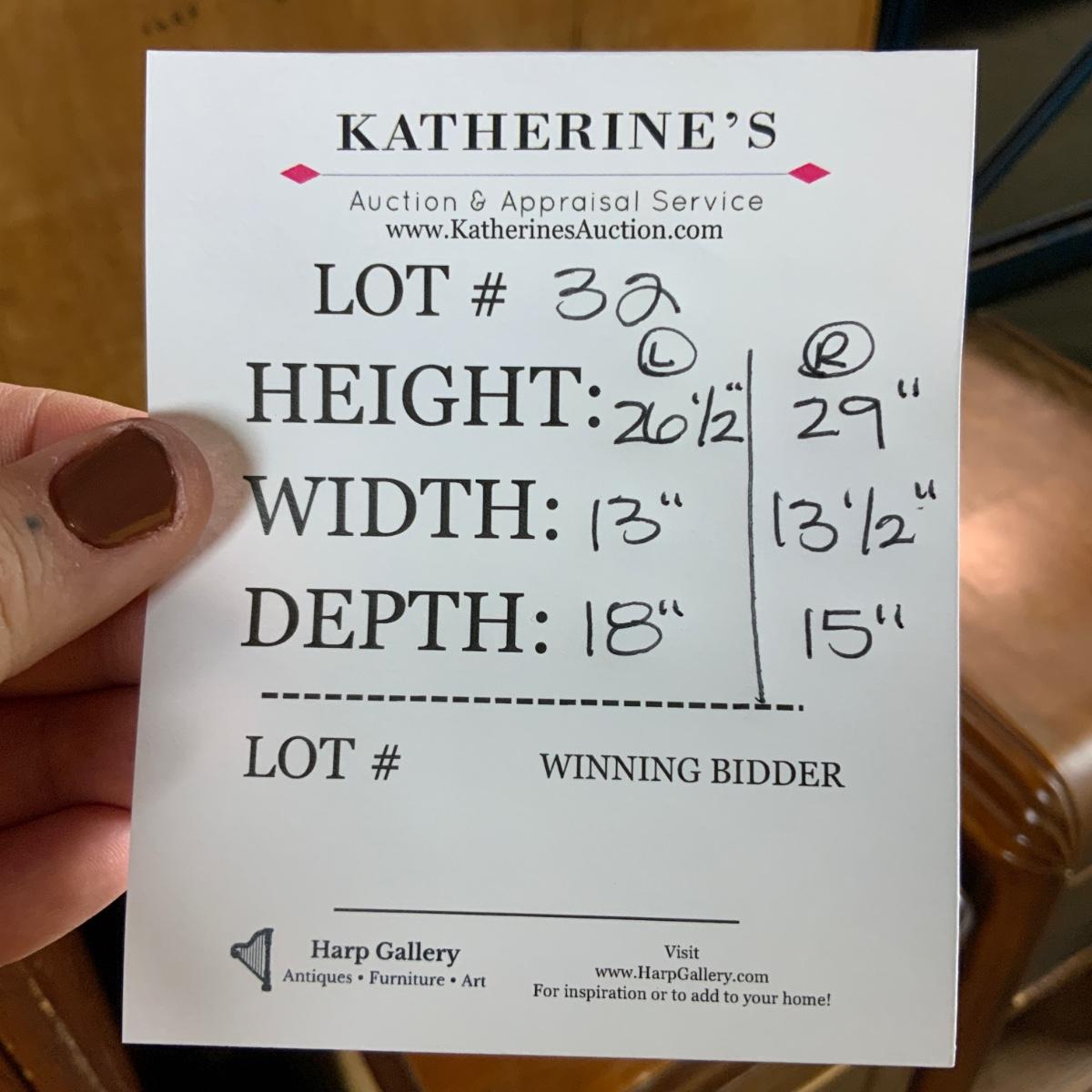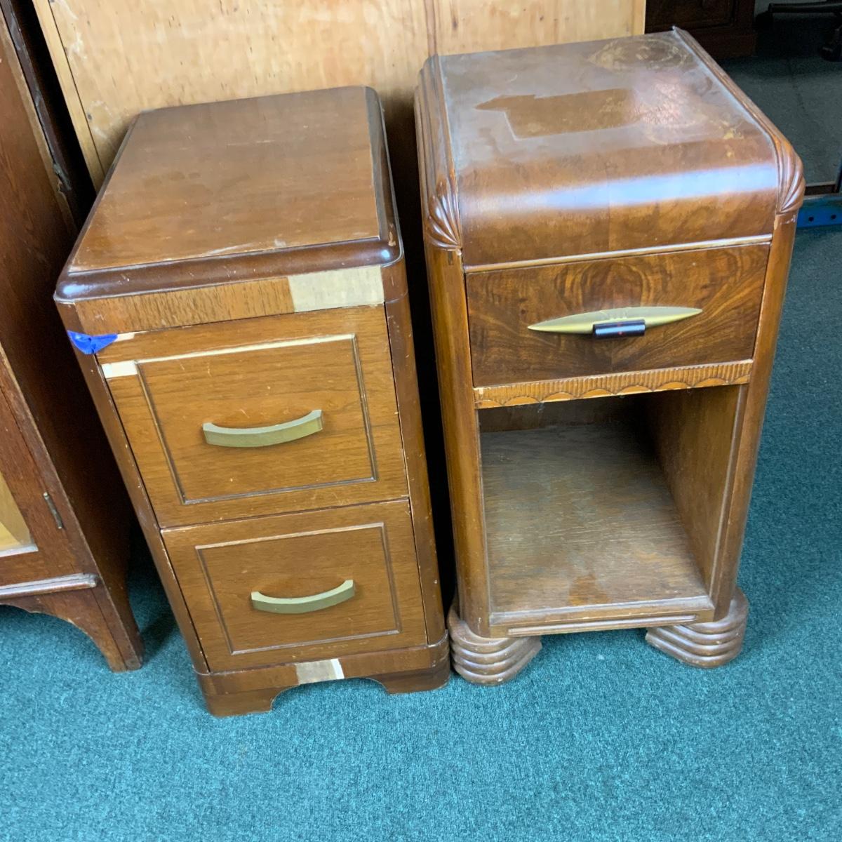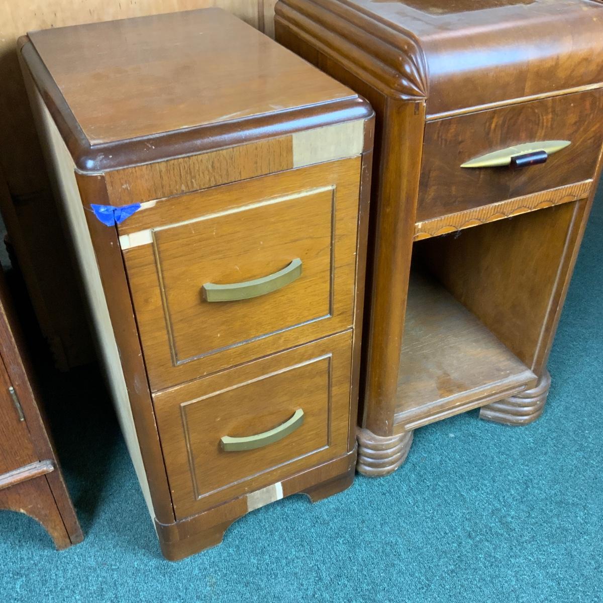 Two mid-matched Art Deco Side Tables. //::\\ Please see photos for details and condition. No attempt has been made to hide any imperfections. All items listed in this auction are warehouse items, and need to be cleaned. A majority of the items need restoration as well. All items are sold AS IS and WITHOUT GUARANTEE. If you are uncertain about an item, DO NOT BID. Due to the nature of this online auction in-person inspection is HIGHLY recommended. All Sales are FINAL. Pick Up Times are FIRM. Please confirm with your own schedule that you can pick up in the scheduled times listed in the Terms and Conditions. Any questions please message the auctioneer. DO NOT Contact The Harp Gallery.