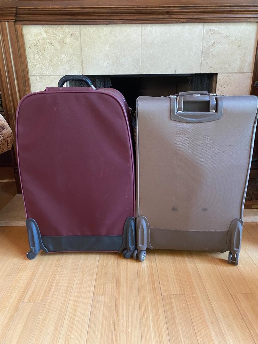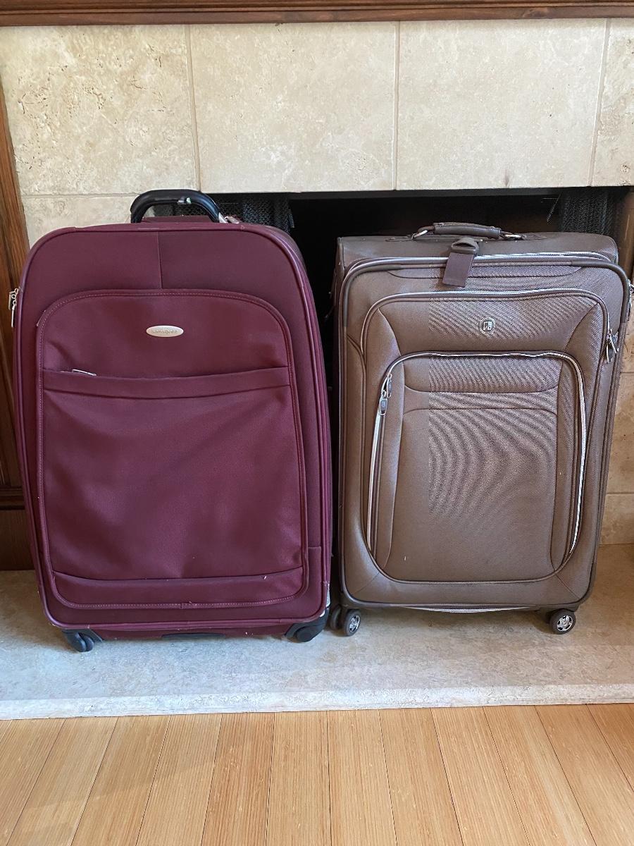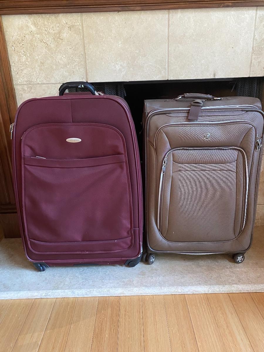 Two large suitcases with pull out handles and wheels. Need light dusting. Please see all pictures as they are the best representation of the items in the lot, the condition of the lot, and will show measurements if taken. If purchasing furniture you must be able to move yourself with your own help, and truck.