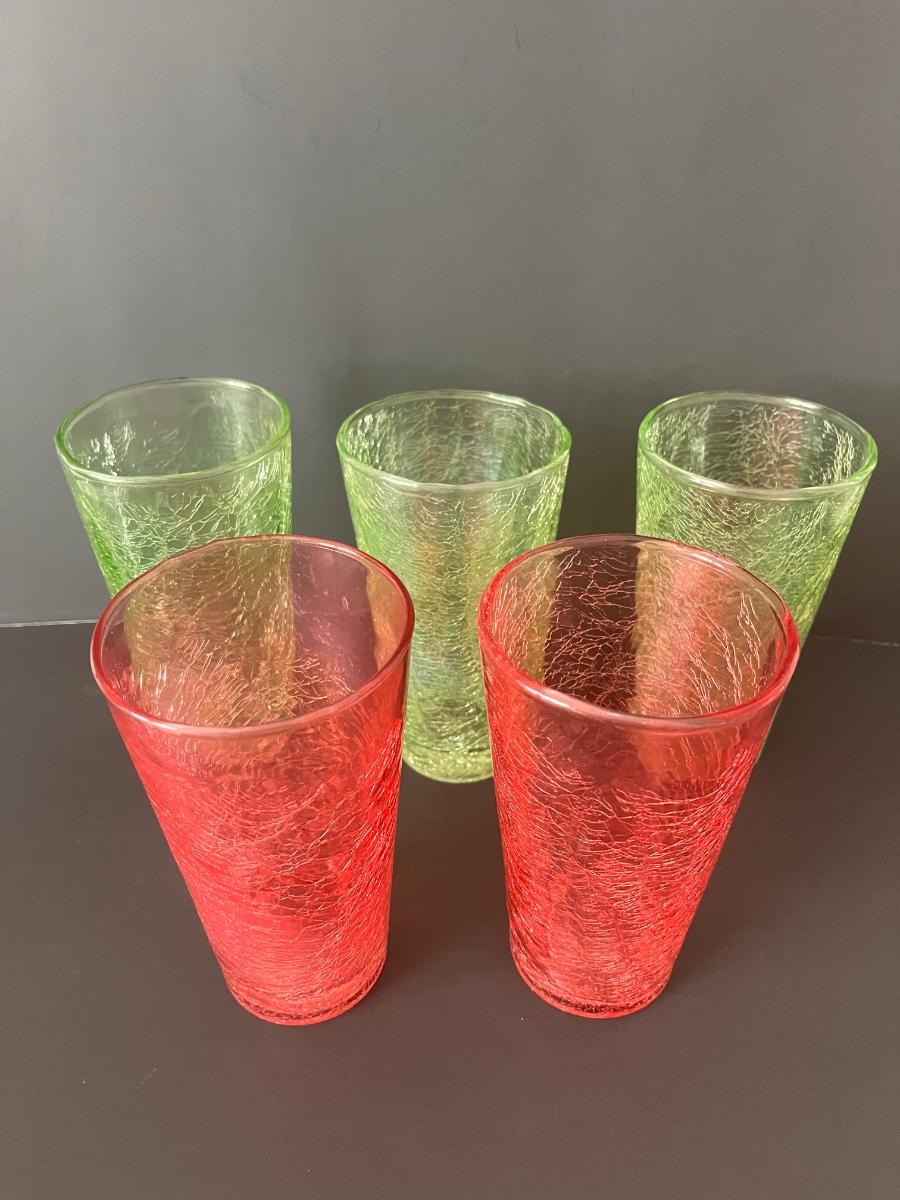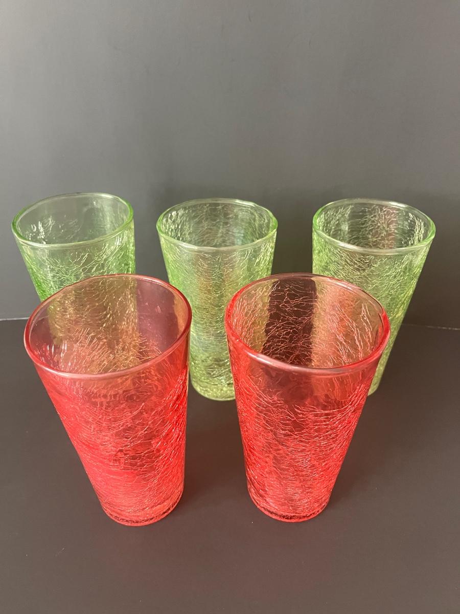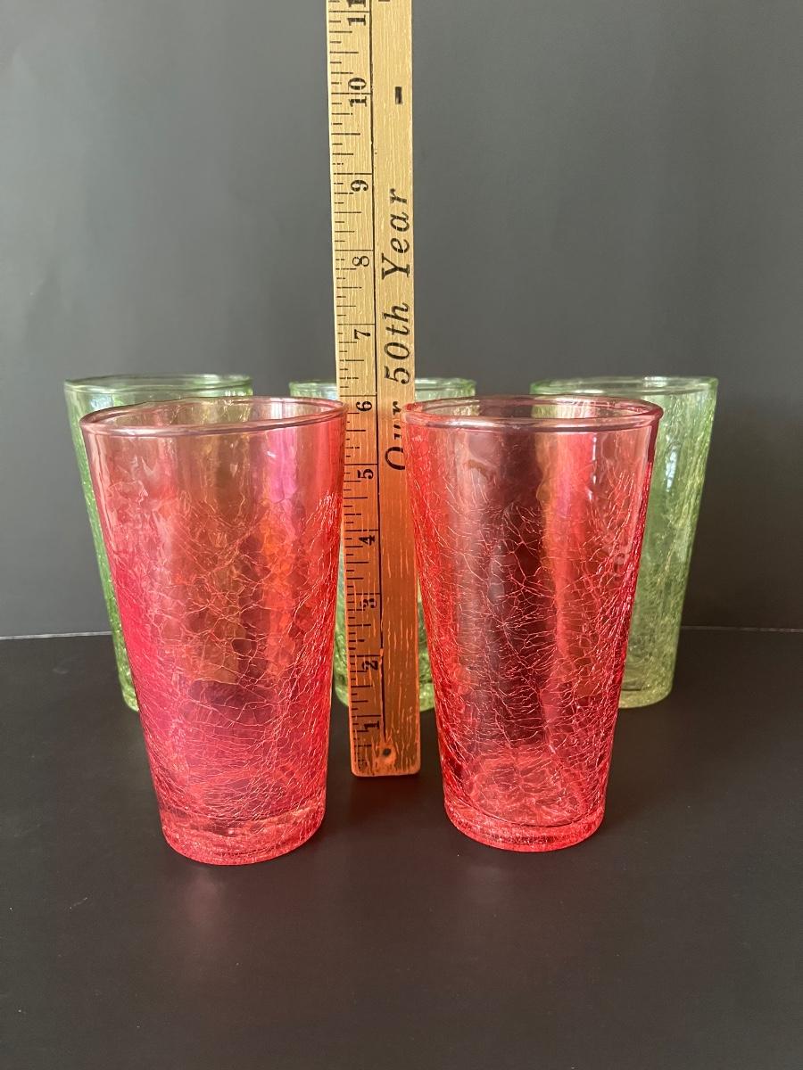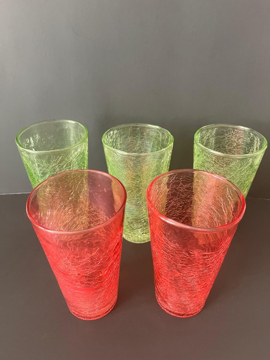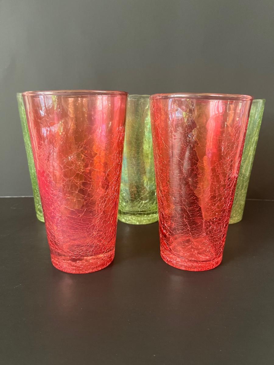 Fabulous set of 5 crackle glasses in vibrant colors of green& orange.