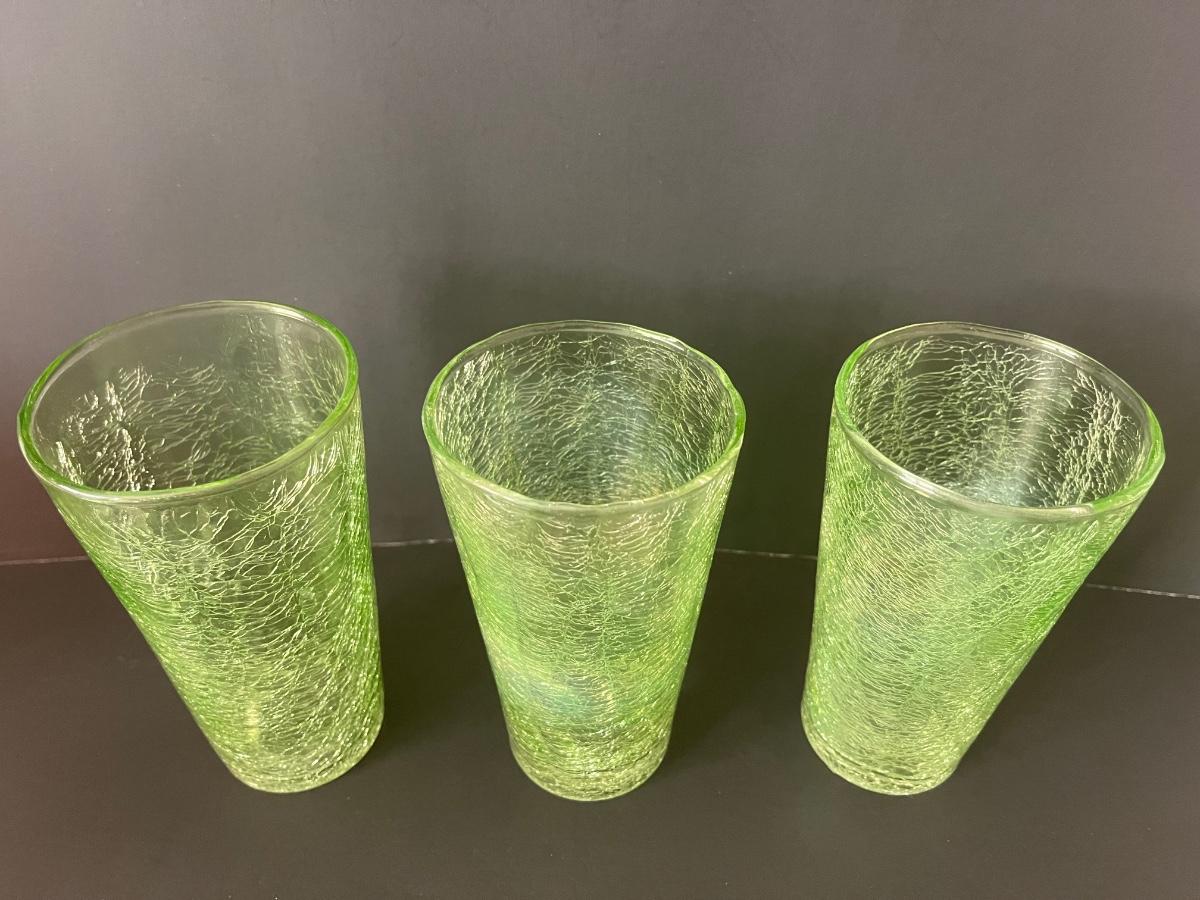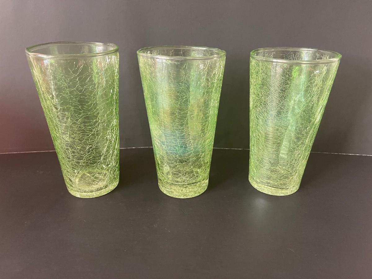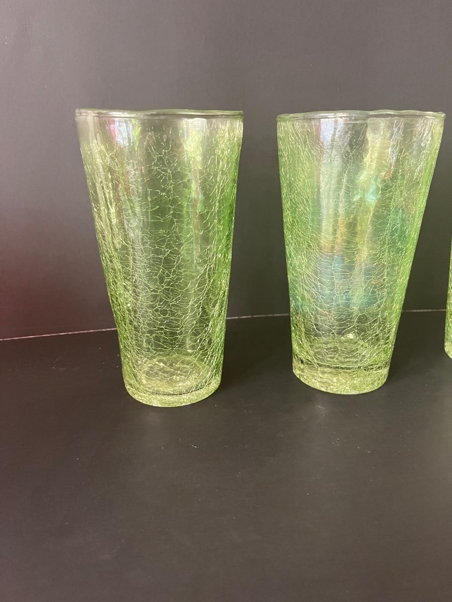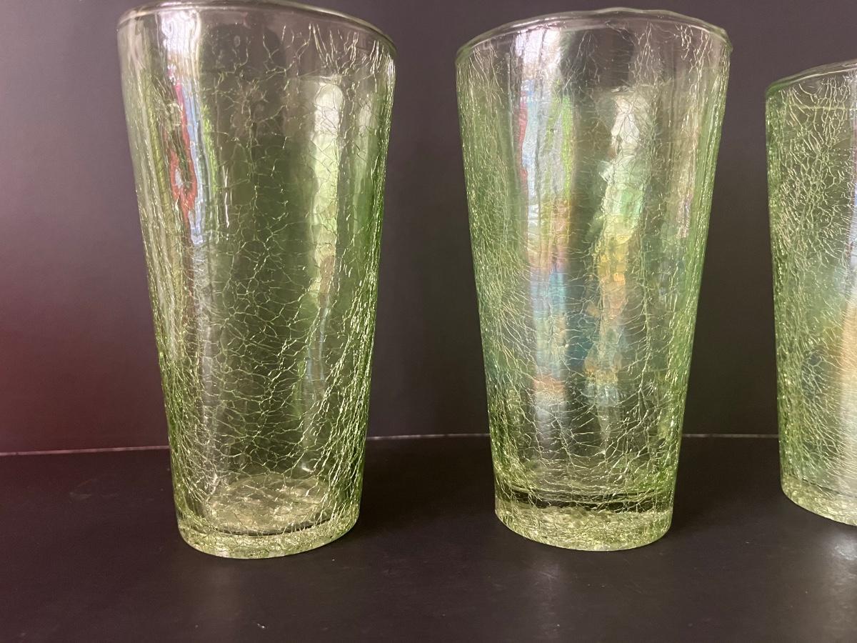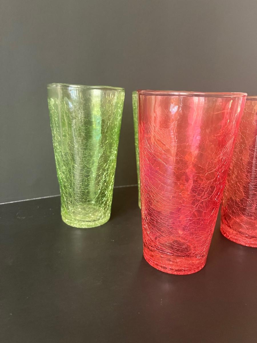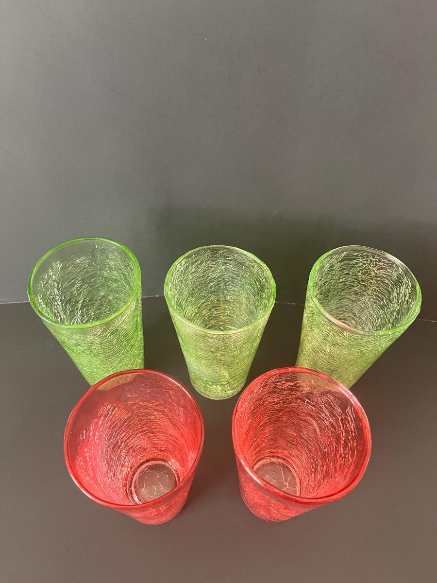 Fabulous set of 5 crackle glasses in vibrant colors of green& orange.