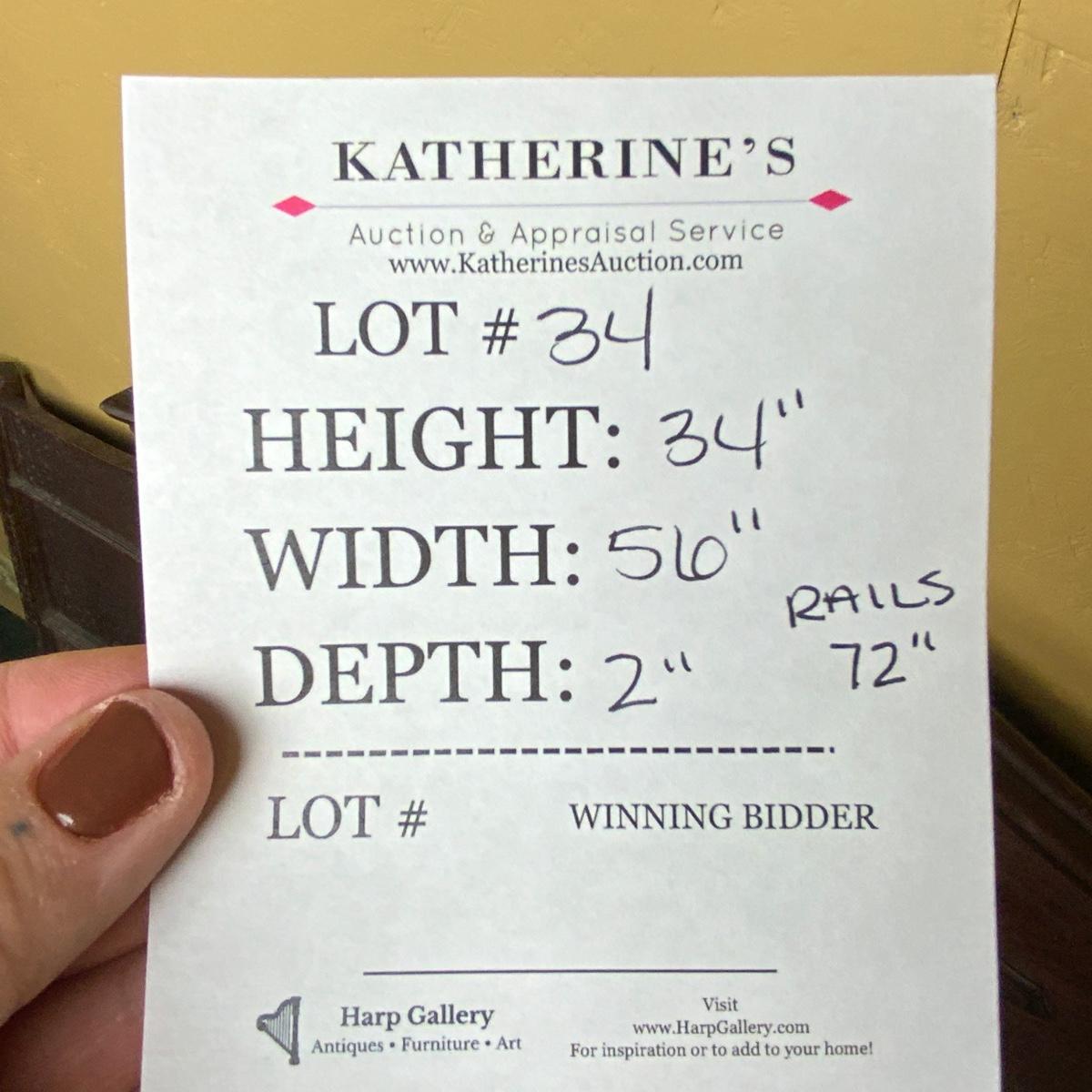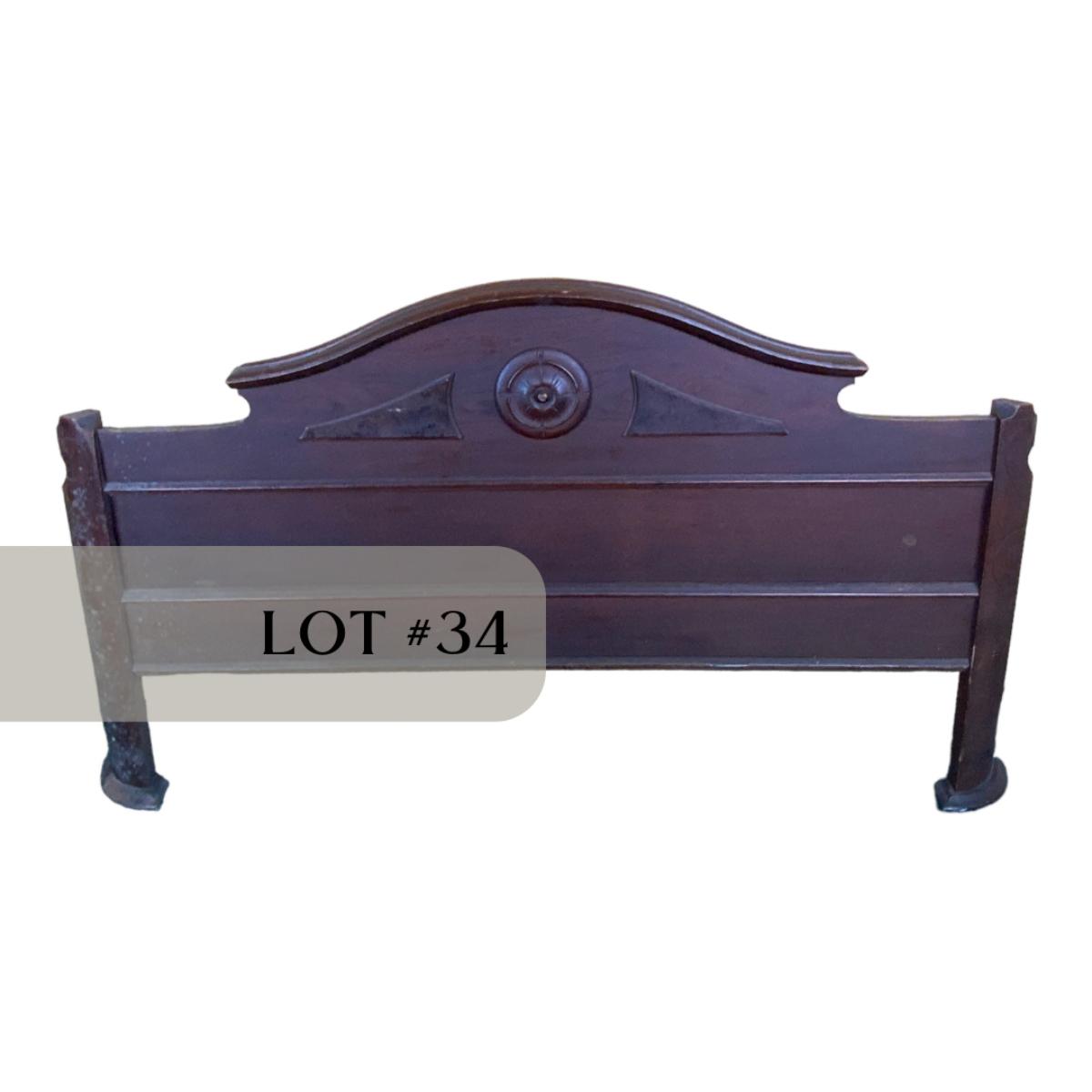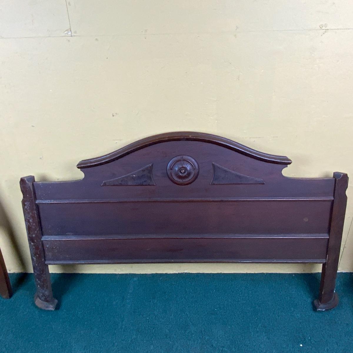 Dark Wood Hand Carved Footboard and Rails. Sturdy and made to last. //::\\ Please see photos for details and condition. No attempt has been made to hide any imperfections. All items listed in this auction are warehouse items, and need to be cleaned. A majority of the items need restoration as well. All items are sold AS IS and WITHOUT GUARANTEE. If you are uncertain about an item, DO NOT BID. Due to the nature of this online auction in-person inspection is HIGHLY recommended. All Sales are FINAL. Pick Up Times are FIRM. Please confirm with your own schedule that you can pick up in the scheduled times listed in the Terms and Conditions. Any questions please message the auctioneer. DO NOT Contact The Harp Gallery.
