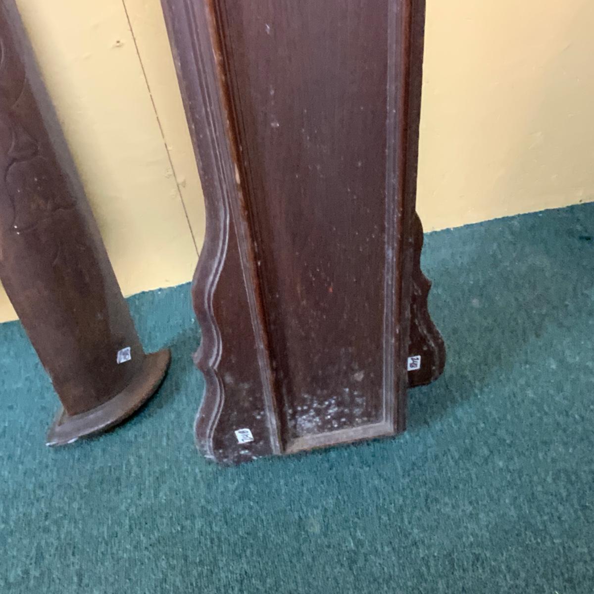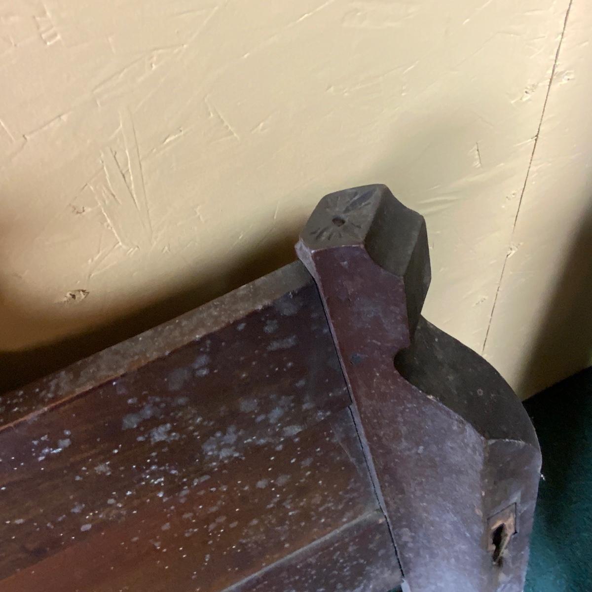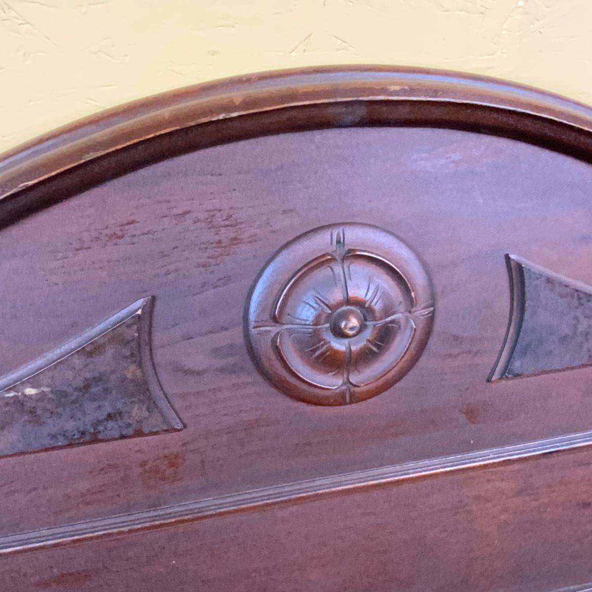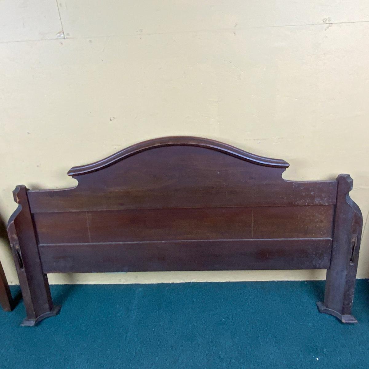Dark Wood Hand Carved Footboard and Rails. Sturdy and made to last. //::\\ Please see photos for details and condition. No attempt has been made to hide any imperfections. All items listed in this auction are warehouse items, and need to be cleaned. A majority of the items need restoration as well. All items are sold AS IS and WITHOUT GUARANTEE. If you are uncertain about an item, DO NOT BID. Due to the nature of this online auction in-person inspection is HIGHLY recommended. All Sales are FINAL. Pick Up Times are FIRM. Please confirm with your own schedule that you can pick up in the scheduled times listed in the Terms and Conditions. Any questions please message the auctioneer. DO NOT Contact The Harp Gallery.