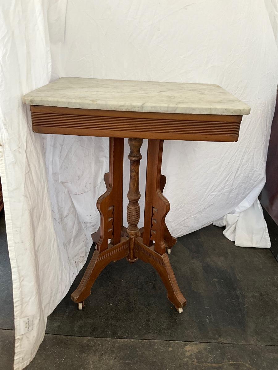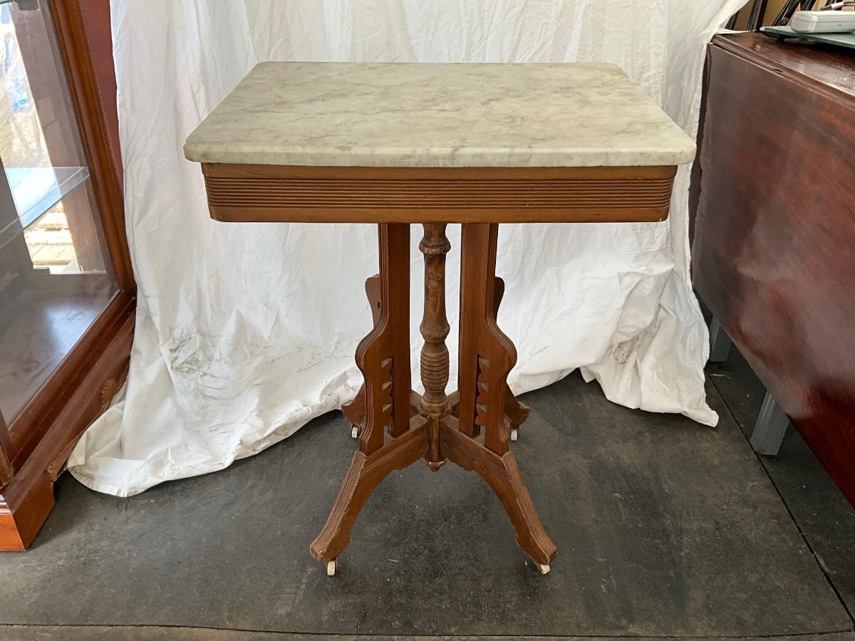 Lot# 034 Vintage Walnut Eastlake Style Side Table with Marble Top