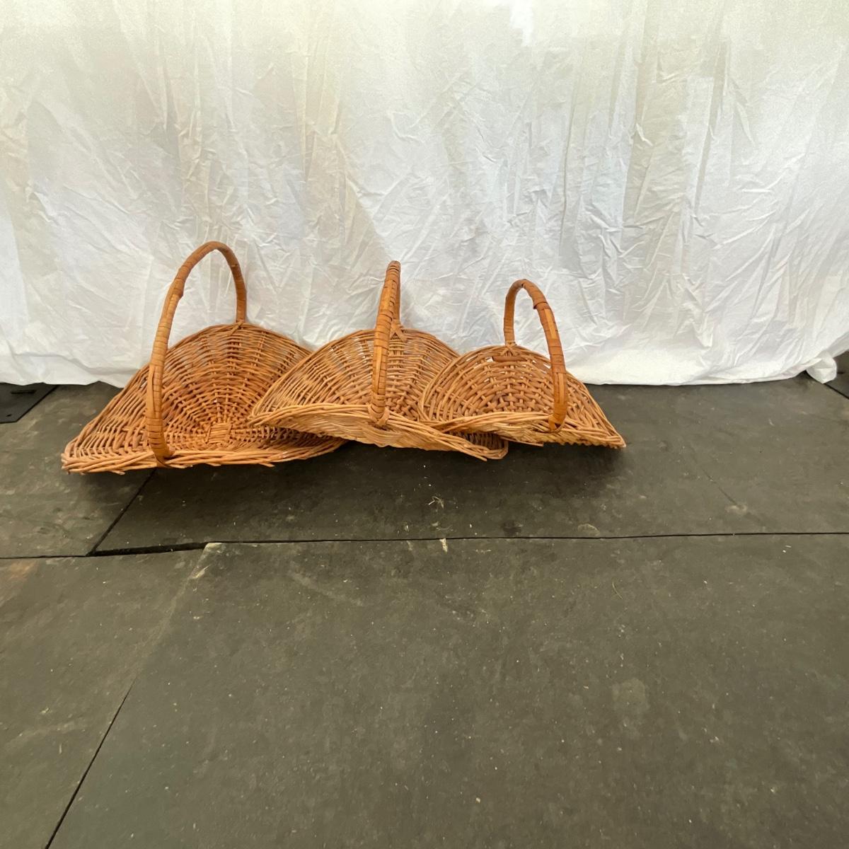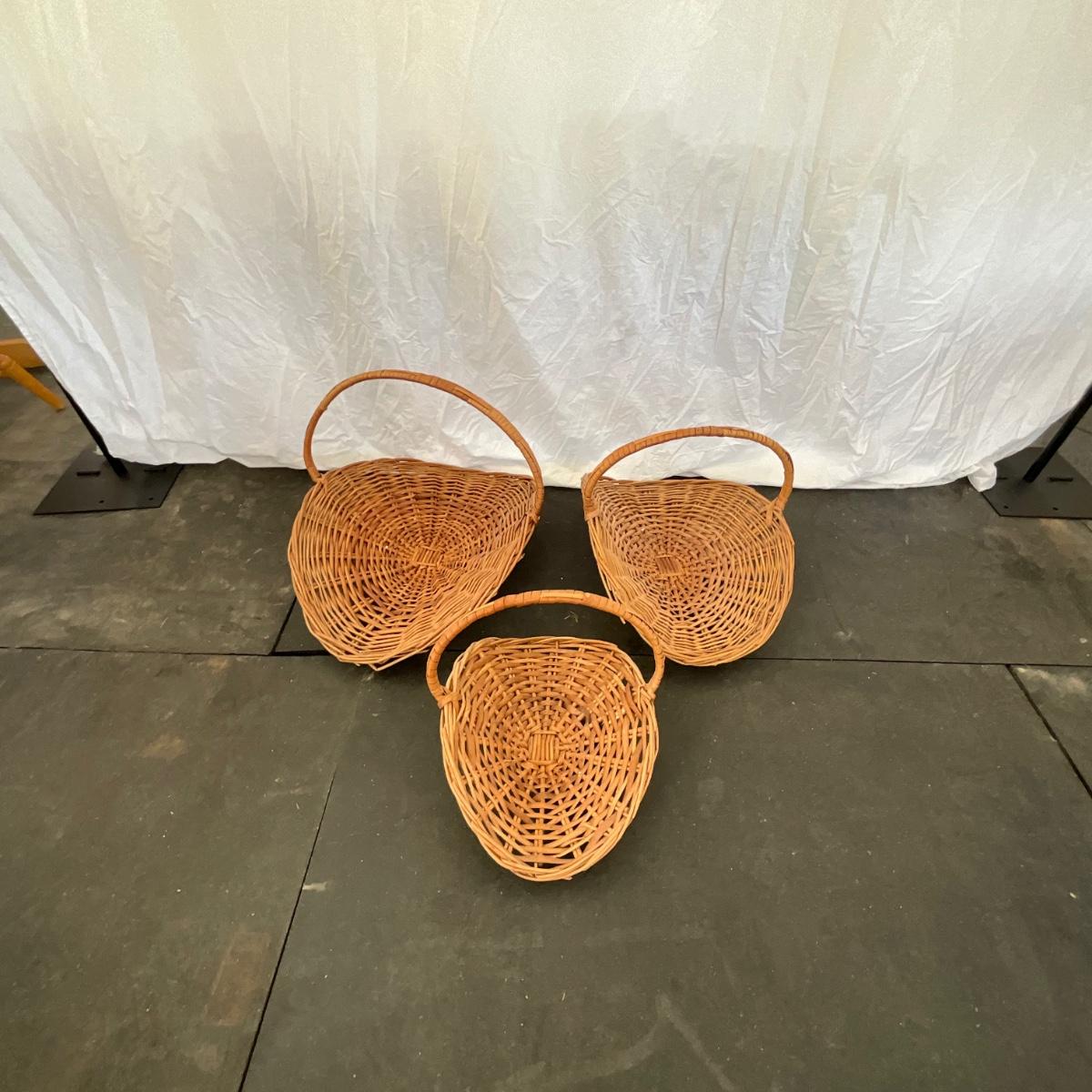 Set of Three Vintage Woven Rattan Bamboo Gathering Baskets