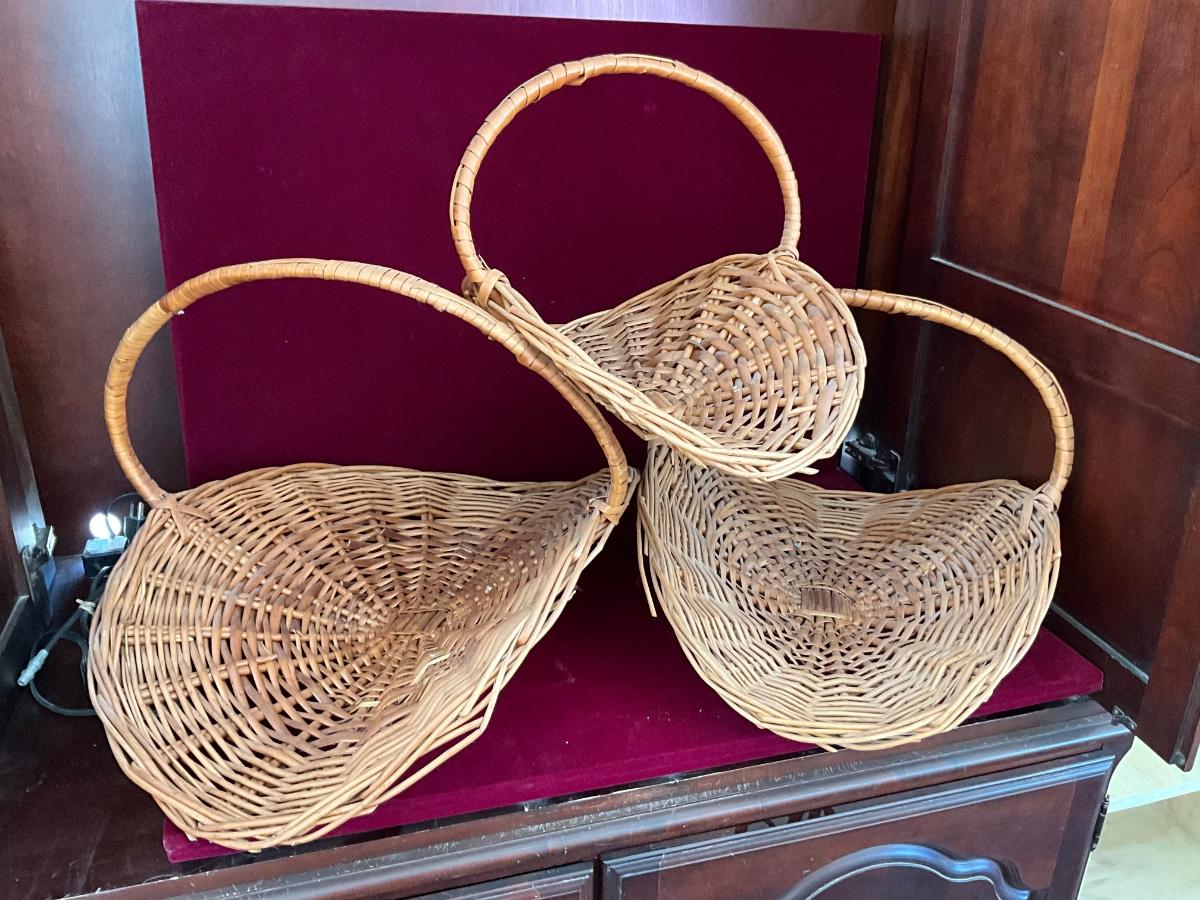 Lot# 035 Set of Three Vintage Woven Rattan Bamboo Gathering Baskets