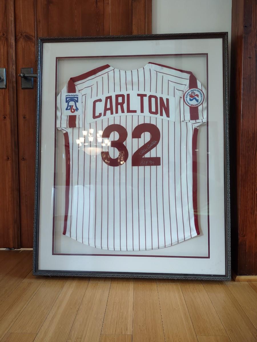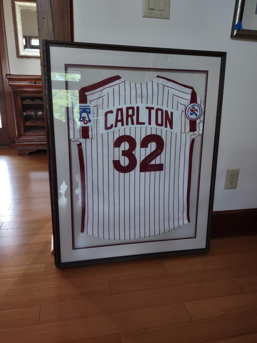 Lot 035: Autographed Phillies Carlton #32 Jersey Framed.