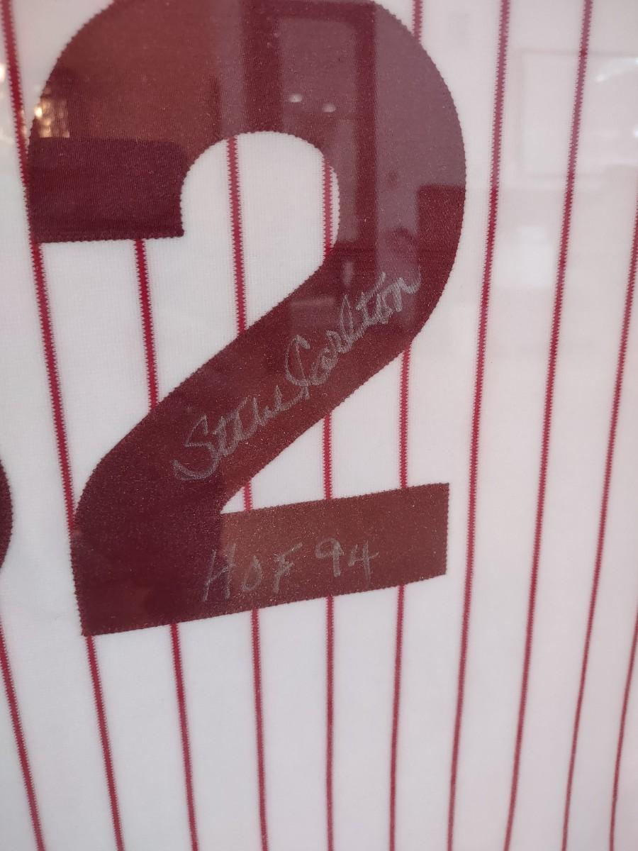 Signed & Framed Steve Carlton Phillies Jersey. Please see all pictures as they are the best representation of the items. The pictures show condition, measurements if taken, and what is included in the lot. Due to the large amount that we photograph and the time frame, we are not always able to take measurements. All items unless noted, are pre-owned and have been used. If you purchased furniture, you must bring help. We do not allow one person to carry large furniture out on their own. Bring help, tools and a truck for the safety of our clients homes, and your personal safety. Company policy. Thank you.