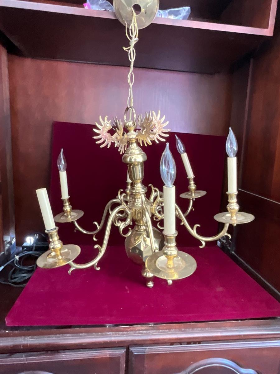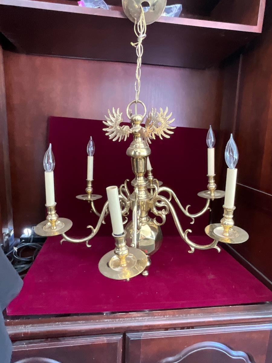 Lot# 036. Vintage Brass Chandelier with Six Arms