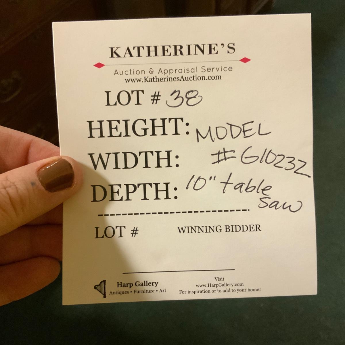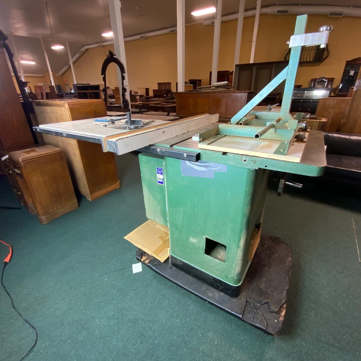 Grizzly 10 inch Table Saw. Used condition. On wheels. You will need a vehicle with a ramp to get it home - unless you have a better idea. //::\\ Please see photos for details and condition. No attempt has been made to hide any imperfections. All items listed in this auction are warehouse items, and need to be cleaned. A majority of the items need restoration as well. All items are sold AS IS and WITHOUT GUARANTEE. If you are uncertain about an item, DO NOT BID. Due to the nature of this online auction in-person inspection is HIGHLY recommended. All Sales are FINAL. Pick Up Times are FIRM. Please confirm with your own schedule that you can pick up in the scheduled times listed in the Terms and Conditions. Any questions please message the auctioneer. DO NOT Contact The Harp Gallery.