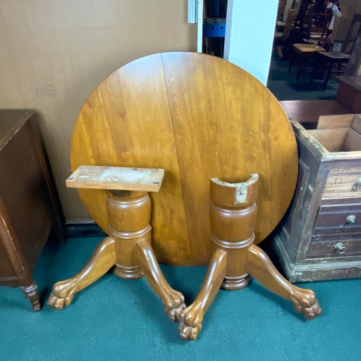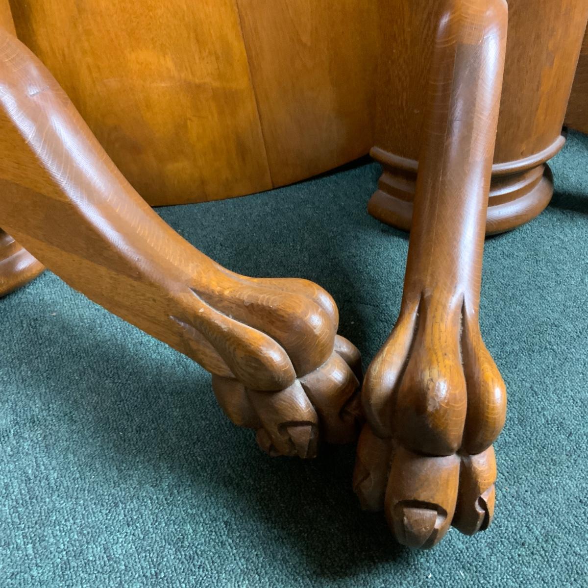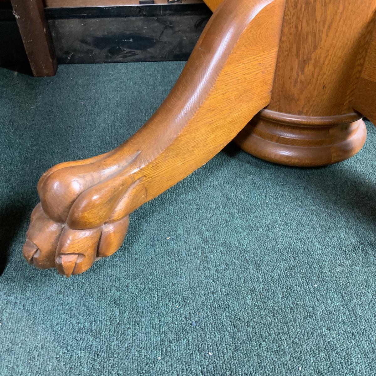 Massive Carved Foot Round Table. Incredible Wood Claw Feet. Needs to be reassembled. //::\\ Please see photos for details and condition. No attempt has been made to hide any imperfections. All items listed in this auction are warehouse items, and need to be cleaned. A majority of the items need restoration as well. All items are sold AS IS and WITHOUT GUARANTEE. If you are uncertain about an item, DO NOT BID. Due to the nature of this online auction in-person inspection is HIGHLY recommended. All Sales are FINAL. Pick Up Times are FIRM. Please confirm with your own schedule that you can pick up in the scheduled times listed in the Terms and Conditions. Any questions please message the auctioneer. DO NOT Contact The Harp Gallery.