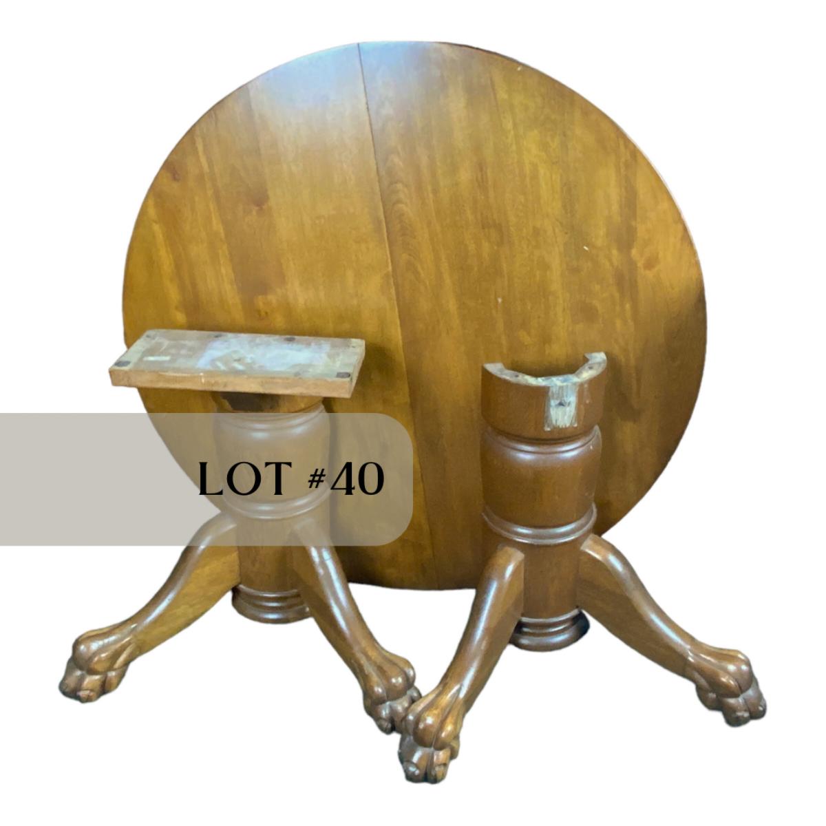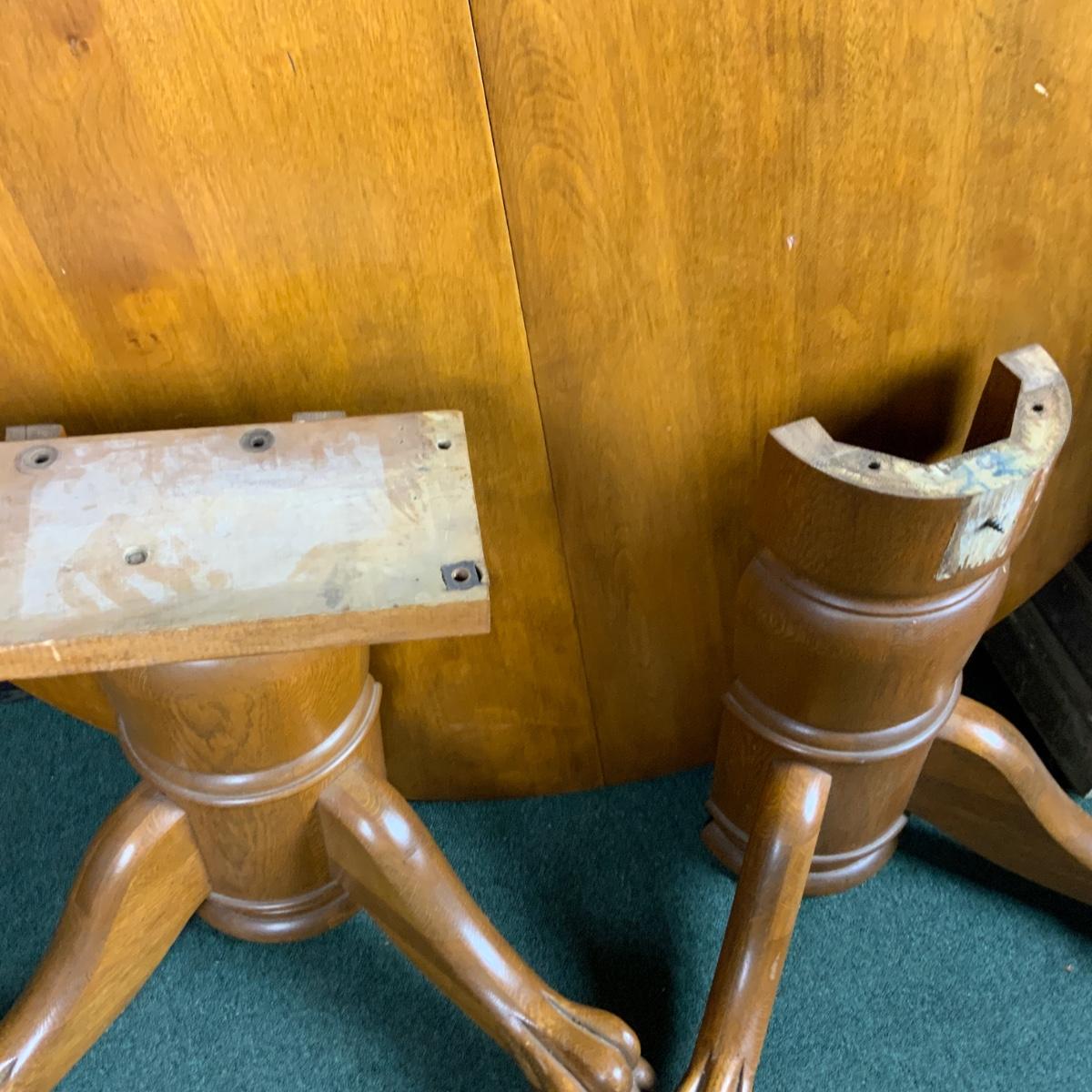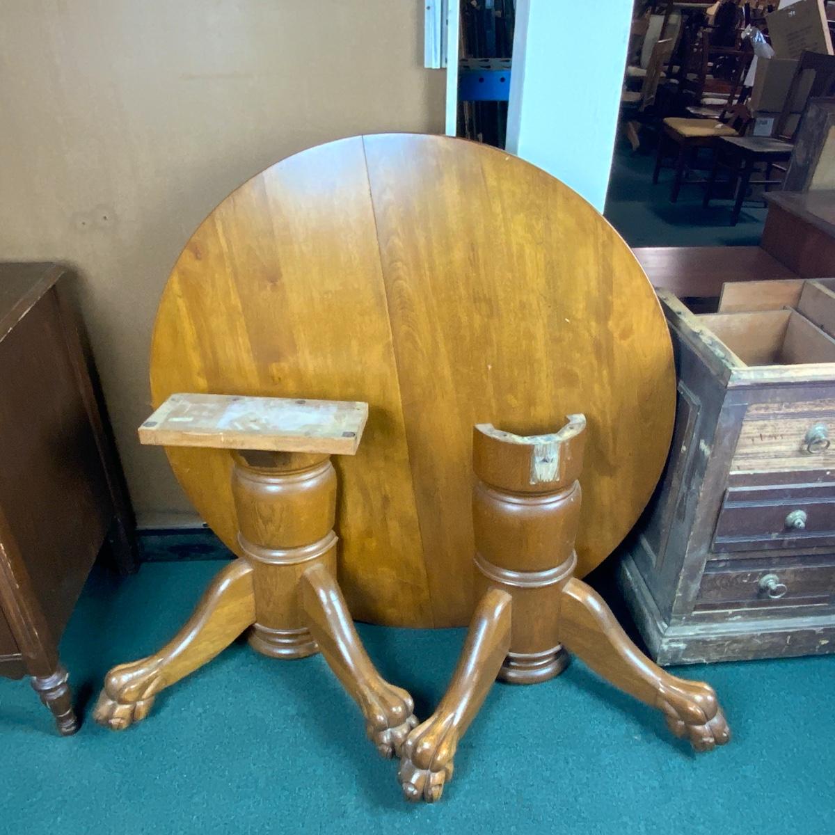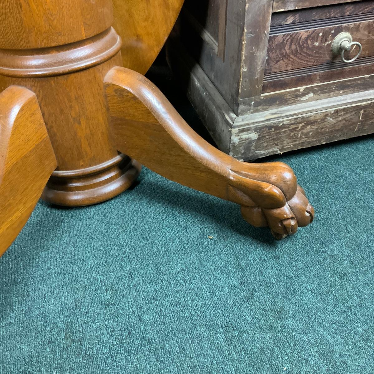 Massive Carved Foot Round Table. Incredible Wood Claw Feet. Needs to be reassembled. //::\\ Please see photos for details and condition. No attempt has been made to hide any imperfections. All items listed in this auction are warehouse items, and need to be cleaned. A majority of the items need restoration as well. All items are sold AS IS and WITHOUT GUARANTEE. If you are uncertain about an item, DO NOT BID. Due to the nature of this online auction in-person inspection is HIGHLY recommended. All Sales are FINAL. Pick Up Times are FIRM. Please confirm with your own schedule that you can pick up in the scheduled times listed in the Terms and Conditions. Any questions please message the auctioneer. DO NOT Contact The Harp Gallery.