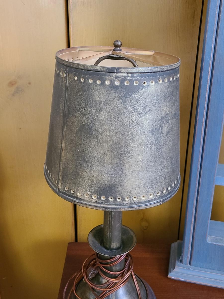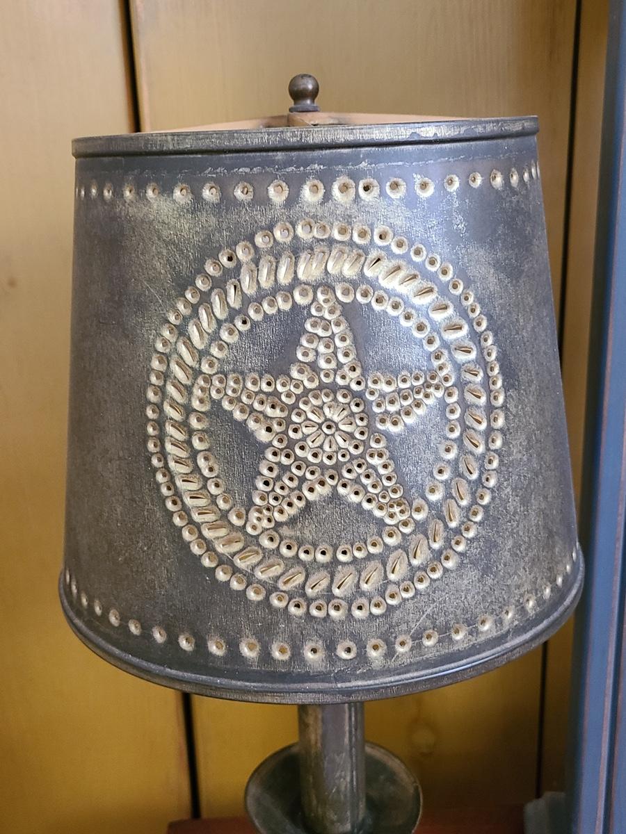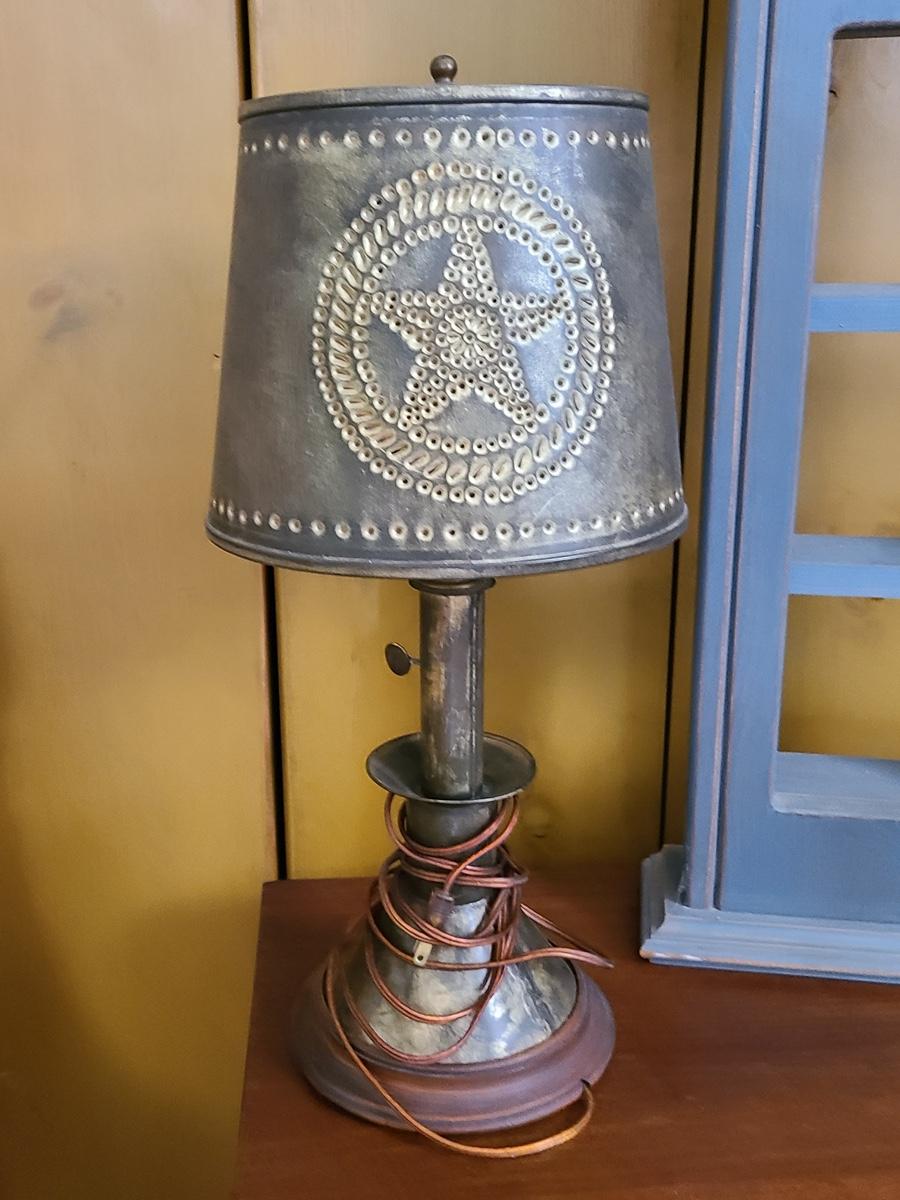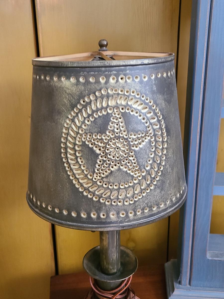 Battery Operated Clock 34"" tall with shelves. Primitive Punched Tin Star Lamp 19". Please see all pictures as they are the best representation of the items. The pictures show condition, measurements if taken, and what is included in the lot. Due to the large amount that we photograph and the time frame, we are not always able to take measurements. All items unless noted, are pre-owned and have been used. If you purchased furniture, you must bring help. We do not allow one person to carry large furniture out on their own. Bring help, tools and a truck for the safety of our client’s homes, and your personal safety. Company policy. Thank you.