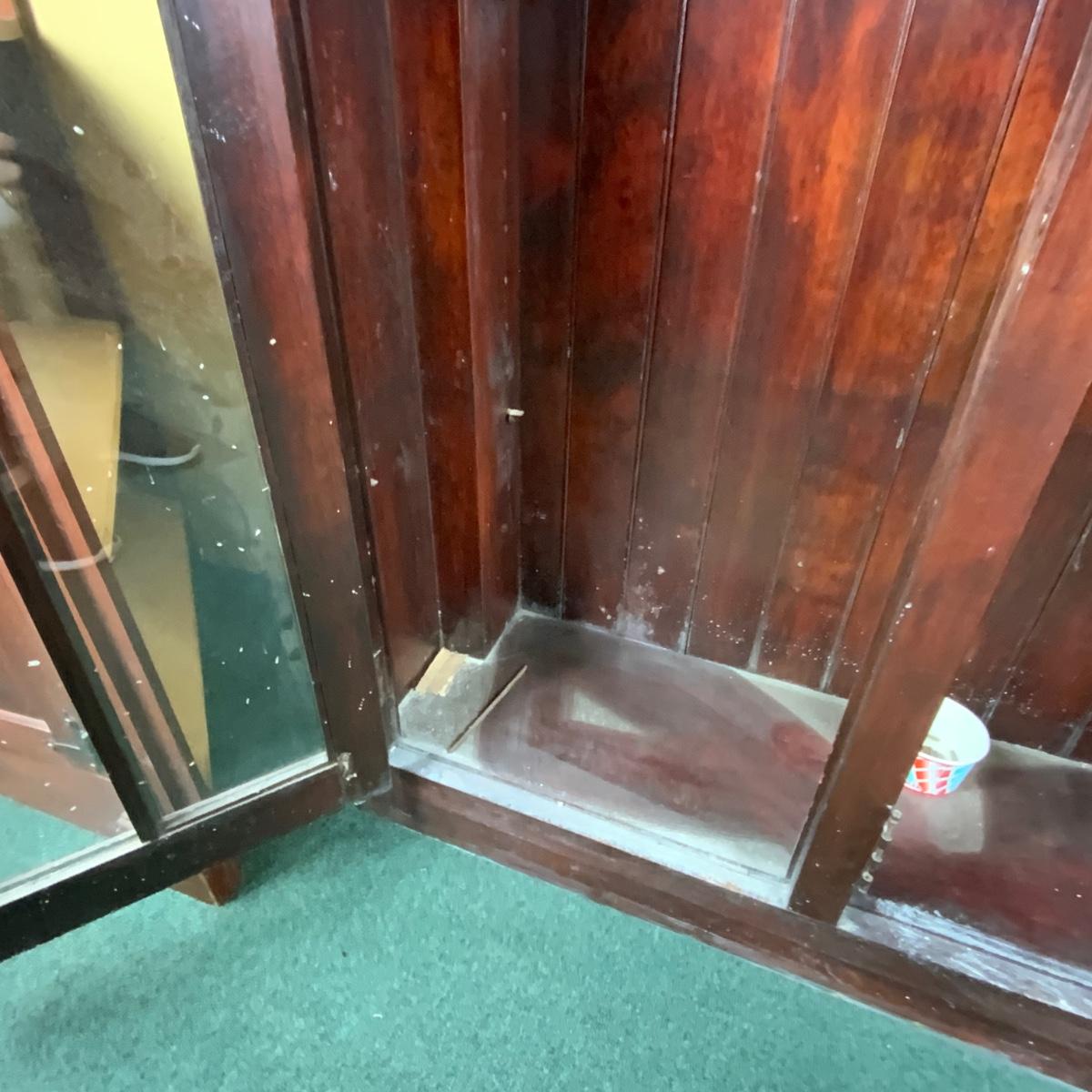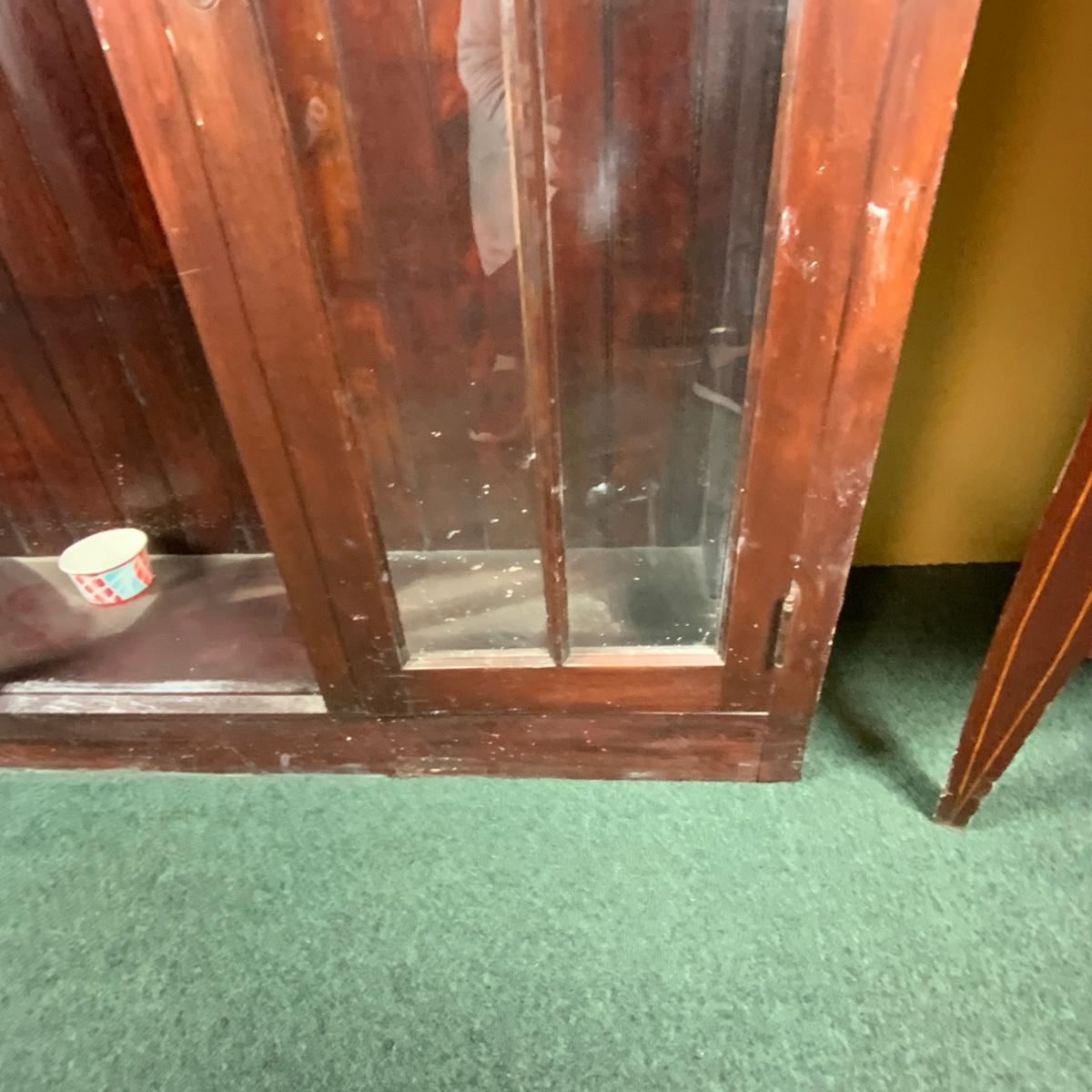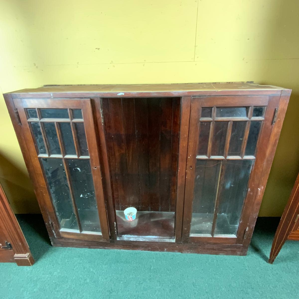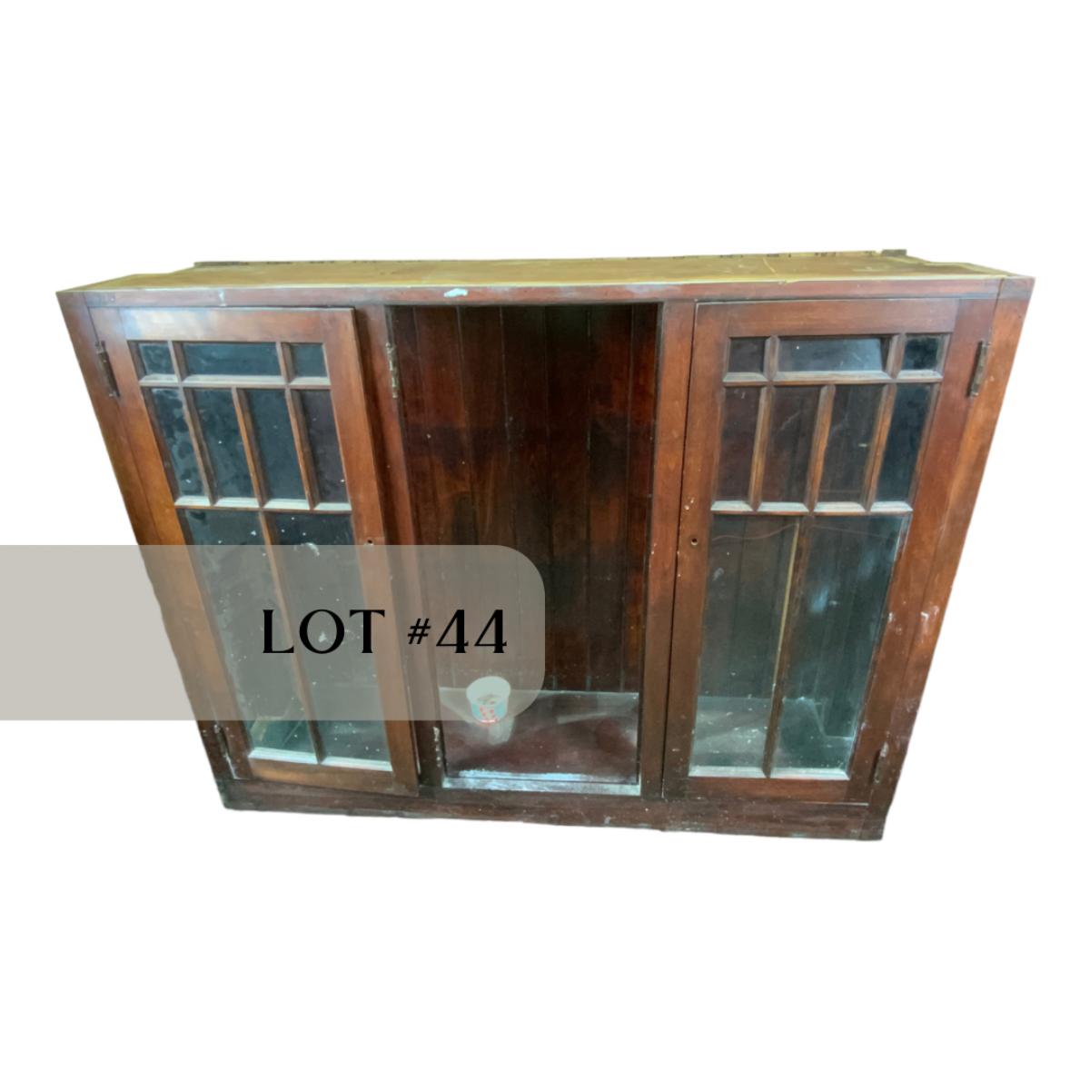 Mission Style Wall Cabinet. Top and sides are unfinished. Believed to be salvaged from part of a built-in. //::\\ Please see photos for details and condition. No attempt has been made to hide any imperfections. All items listed in this auction are warehouse items, and need to be cleaned. A majority of the items need restoration as well. All items are sold AS IS and WITHOUT GUARANTEE. If you are uncertain about an item, DO NOT BID. Due to the nature of this online auction in-person inspection is HIGHLY recommended. All Sales are FINAL. Pick Up Times are FIRM. Please confirm with your own schedule that you can pick up in the scheduled times listed in the Terms and Conditions. Any questions please message the auctioneer. DO NOT Contact The Harp Gallery.
