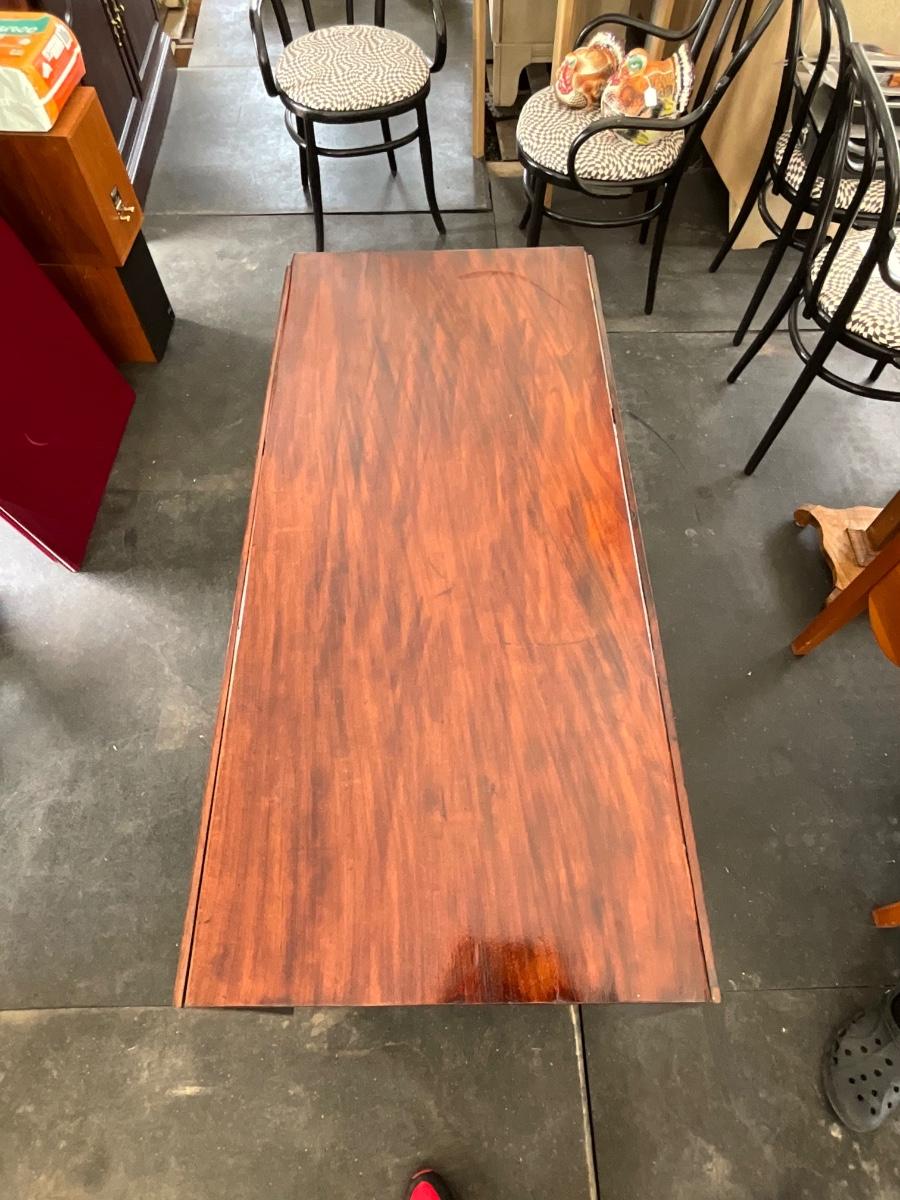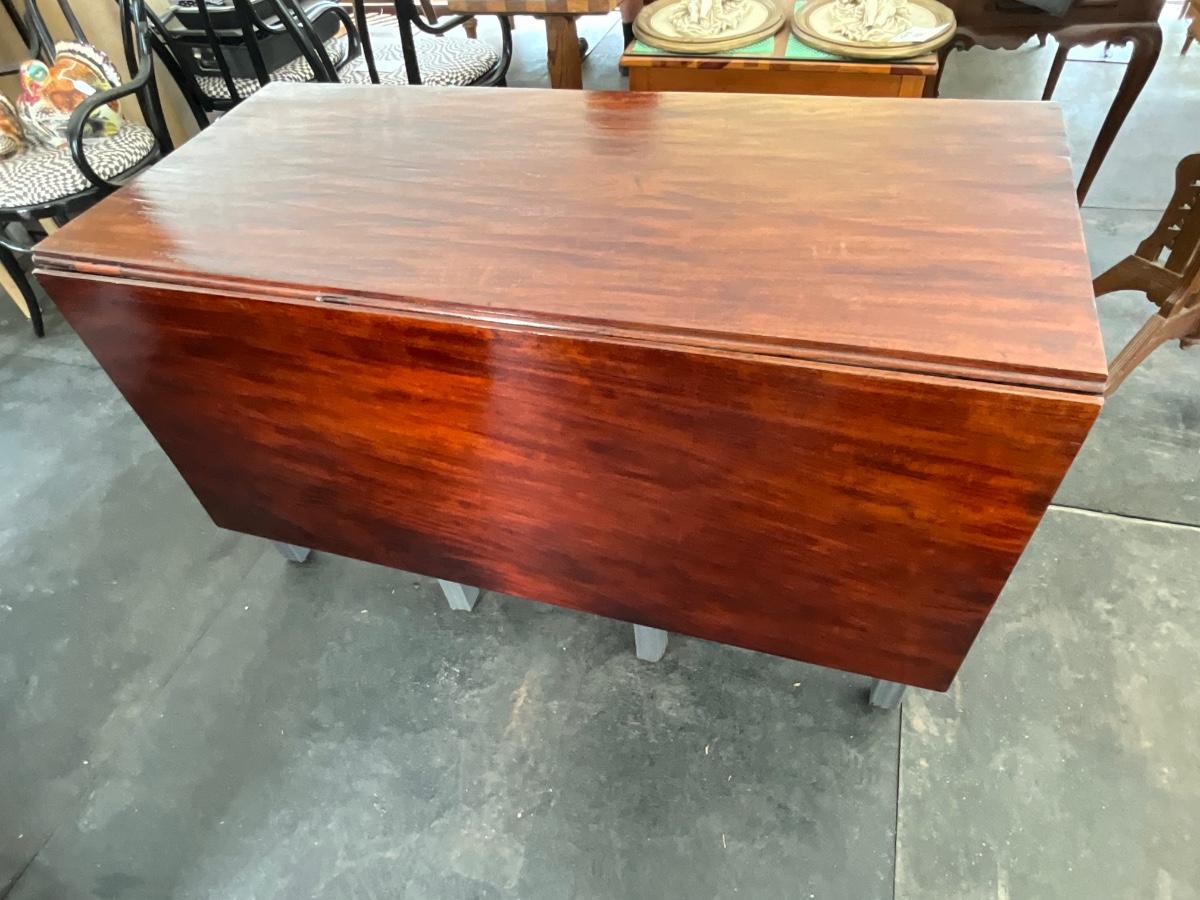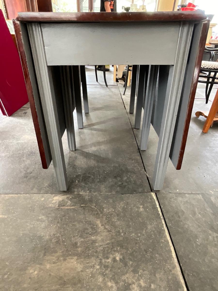 Vintage Drop-Leaf Table, Gate Legs, Top Stained with Heavy Gloss Finish, Base/Legs Painted Gray